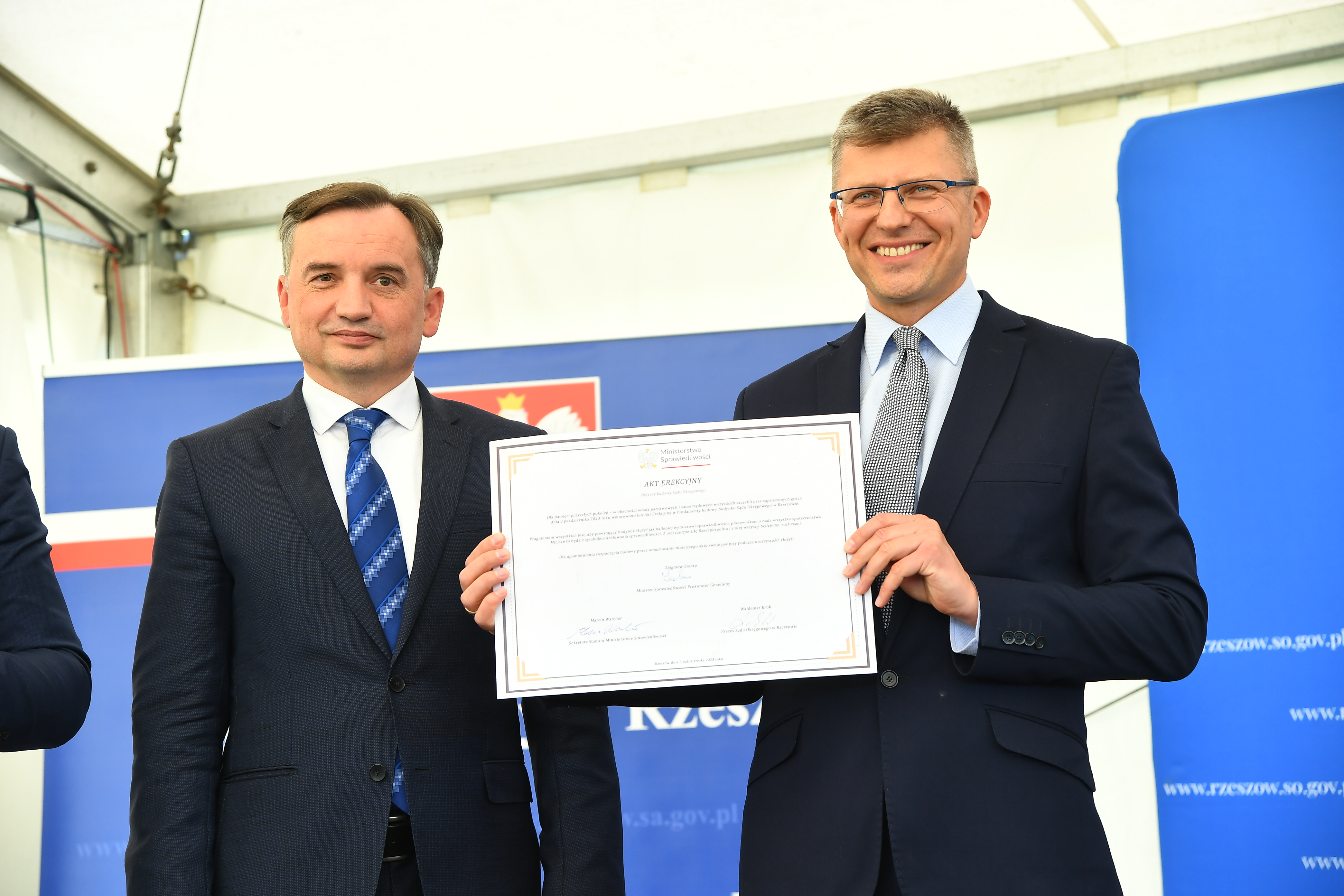 Minister Zbigniew Ziobro na inauguracji budowy nowej siedziby Sądu Okręgowego w Rzeszowie