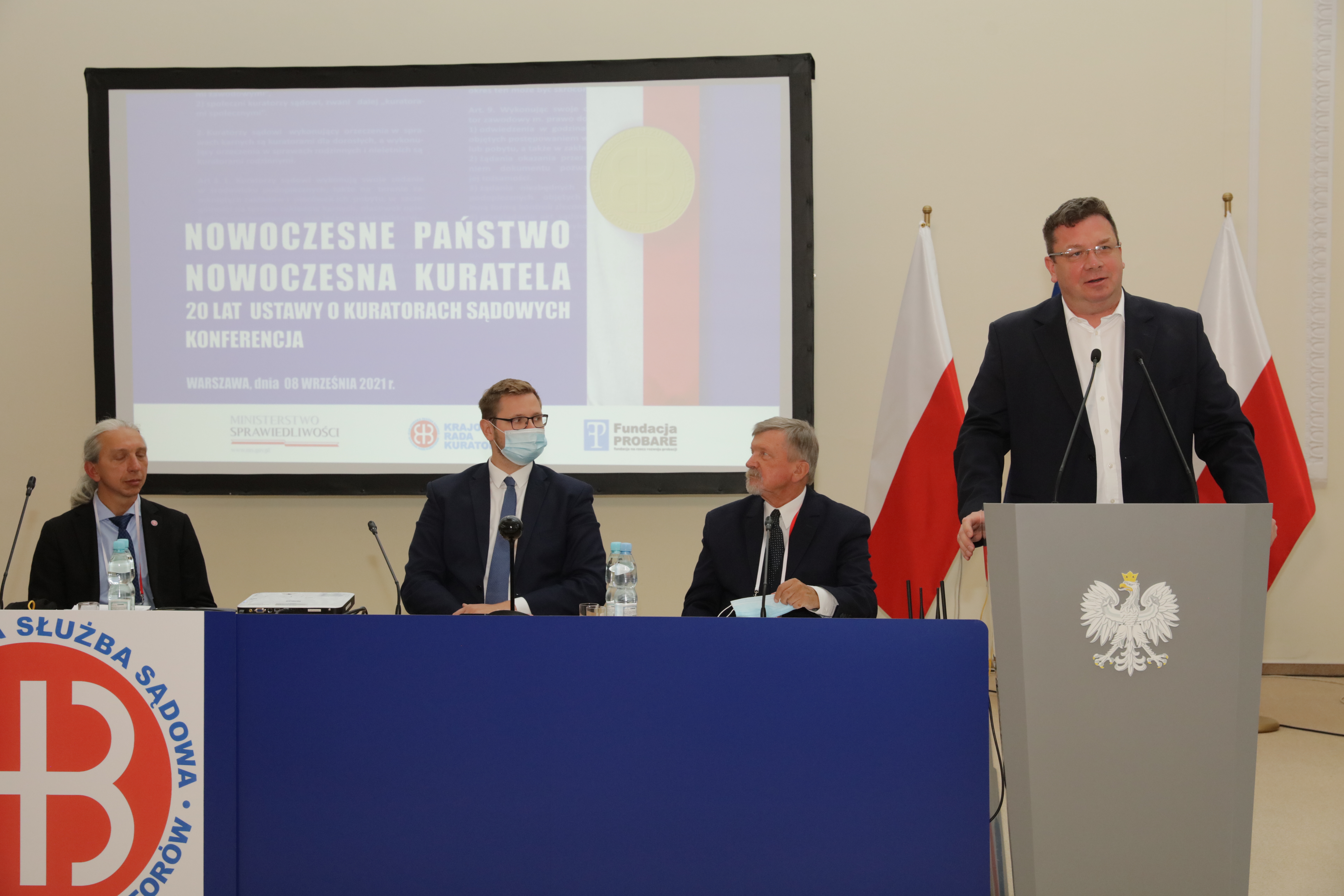 - Dziękuję Państwu za ciężką pracę, codzienny trud i wysiłek wkładany w realizację zadań. Kuratorzy pełnią istotną rolę w wymiarze sprawiedliwości. Dostarczają sądowi ważnych informacji o swoich podopiecznych, pozwalając podjąć odpowiednie decyzje oraz przywracają człowieka społeczeństwu. W Ministerstwie Sprawiedliwości trwają prace nad nowelizacją ustawy o kuratorach sądowych. Mam nadzieję, że wkrótce sfinalizujemy nowelizację przepisów – powiedział wiceminister sprawiedliwości Michał Woś na uroczystej konferencji „Nowoczesne państwo – nowoczesna kuratela. 20 lat ustawy o kuratorach sądowych”, która rozpoczęła się 8 września br. w Auli Centrali NFZ w Warszawie.
