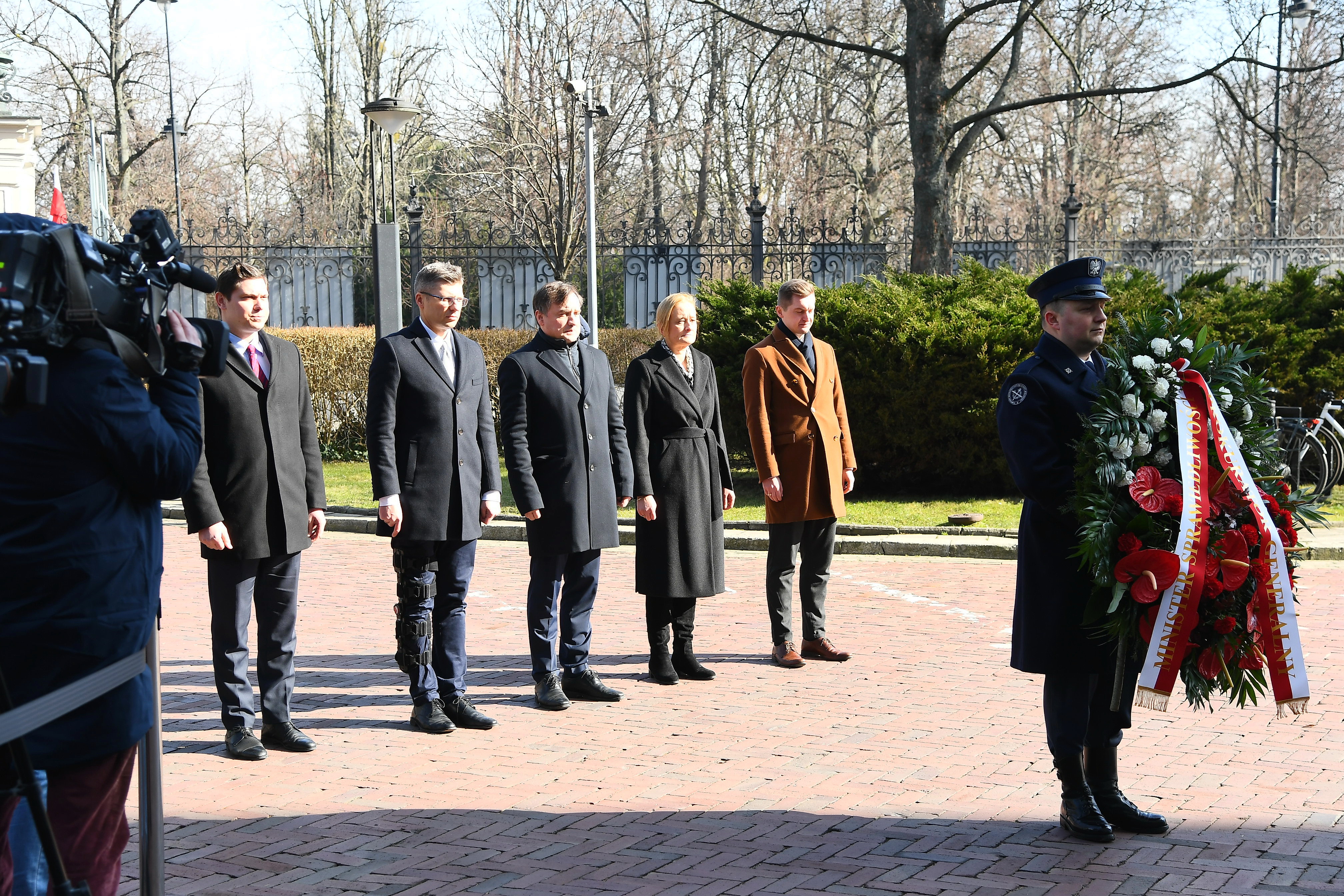 Minister Sprawiedliwości Prokurator Generalny Zbigniew Ziobro wraz z wiceministrami Katarzyną Frydrych, Sebastianem Kaletą i Marcinem Warchołem, złożyli dziś (1 marca br.) wieńce pod tablicą upamiętniającą ofiary komunistycznej bezpieki oraz przy pomniku Jana Rodowicza „Anody” na dziedzińcu Ministerstwa Sprawiedliwości.