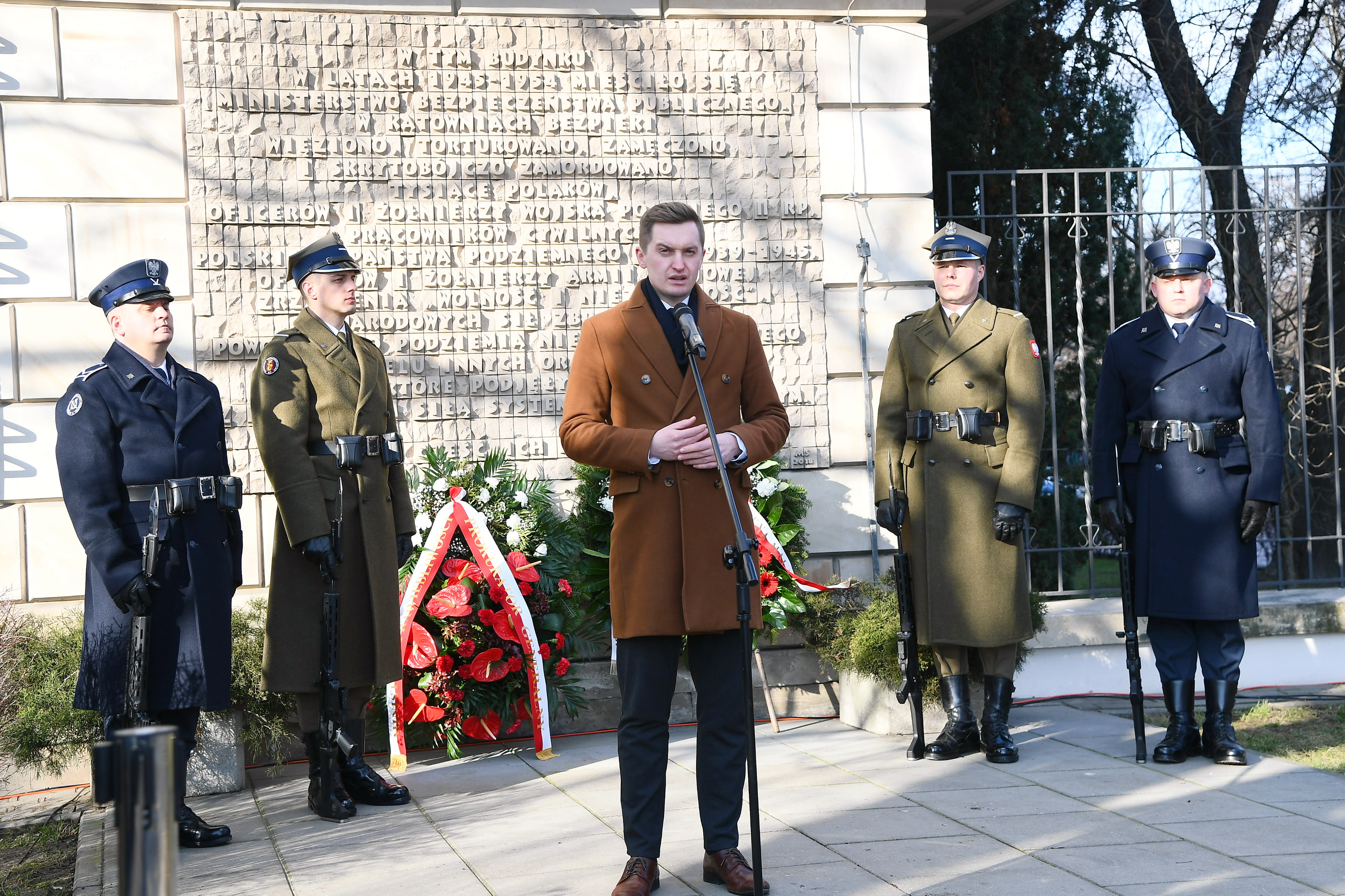 – Jakie przesłanie niesie dzisiaj ofiara i poświęcenie tych, którzy cierpieli w kazamatach budynku znajdującego się za moimi plecami i w innych miejscach kaźni? Tamci bohaterowie zostawili świadectwo tym, którzy mieli przyjść po nich. Zostawili nam zadanie budowania wspólnoty, kultywowania pamięci o przodkach oraz poświęcenia dla dobra wspólnego, dla Polski. Musimy pielęgnować miłość do Ojczyzny, bo tylko w ten sposób oddamy hołd bohaterom – mówił podczas późniejszej ceremonii przed siedzibą Ministerstwa Sprawiedliwości wiceminister Sebastian Kaleta.