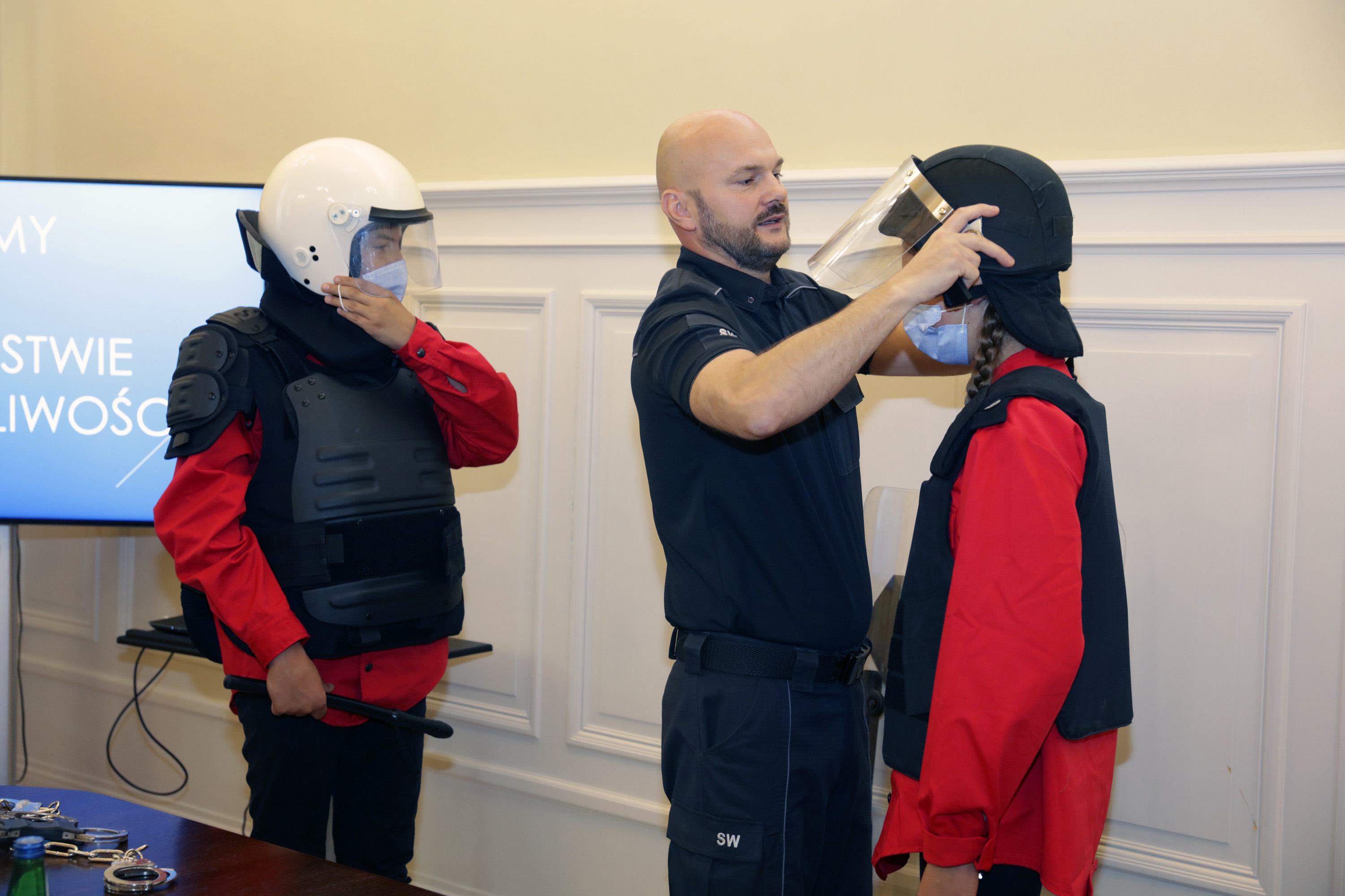 Spotkanie z ministrem Michałem Wosiem poprzedziła prelekcja podpułkownika Straży Więziennej Bartłomieja Turbiarza. Młodzież mogła posłuchać wykładu na temat pracy funkcjonariuszy Służby Więziennej i przymierzyć używane przez nich stroje. Nie zabrakło pamiątkowych zdjęć i pytań do ministra Michała Wosia.