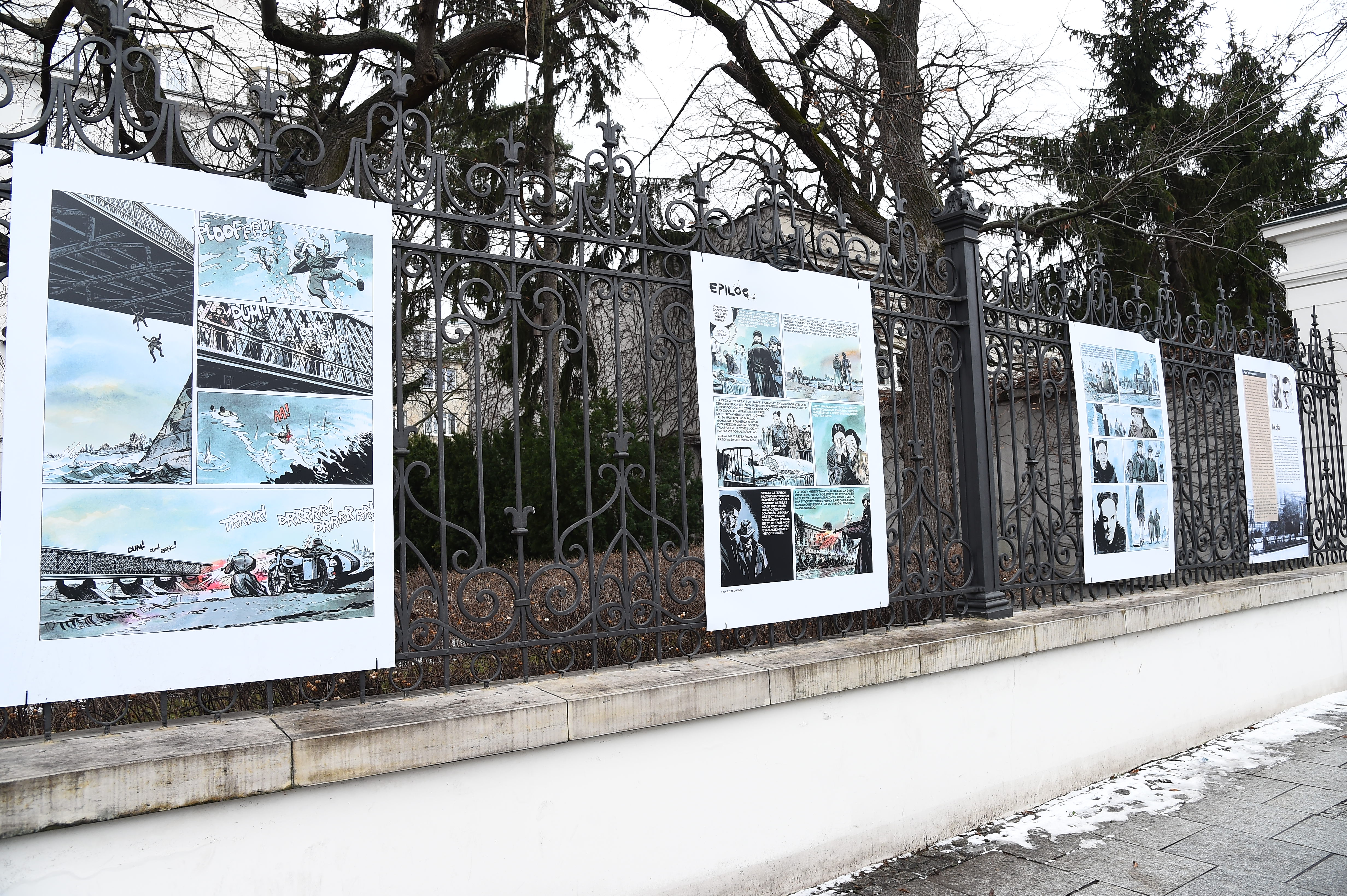 Właśnie wybrane strony z komiksu, poświęconego zamachowi na Kutscherę, składają się na wystawę przygotowaną we współpracy z IPN, którą można oglądać na ogrodzeniu przed siedzibą Ministerstwa Sprawiedliwości w Alejach Ujazdowskich w Warszawie.