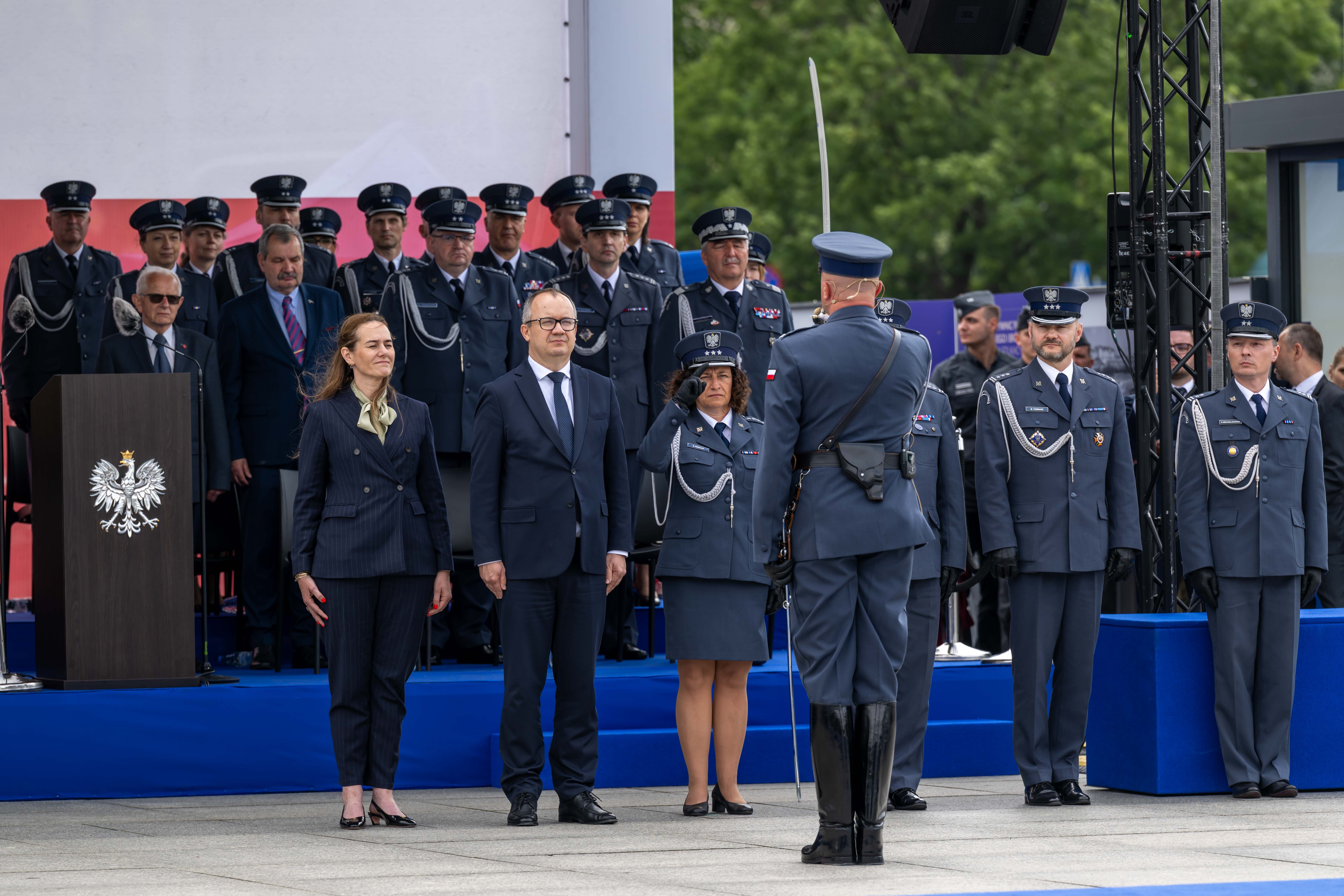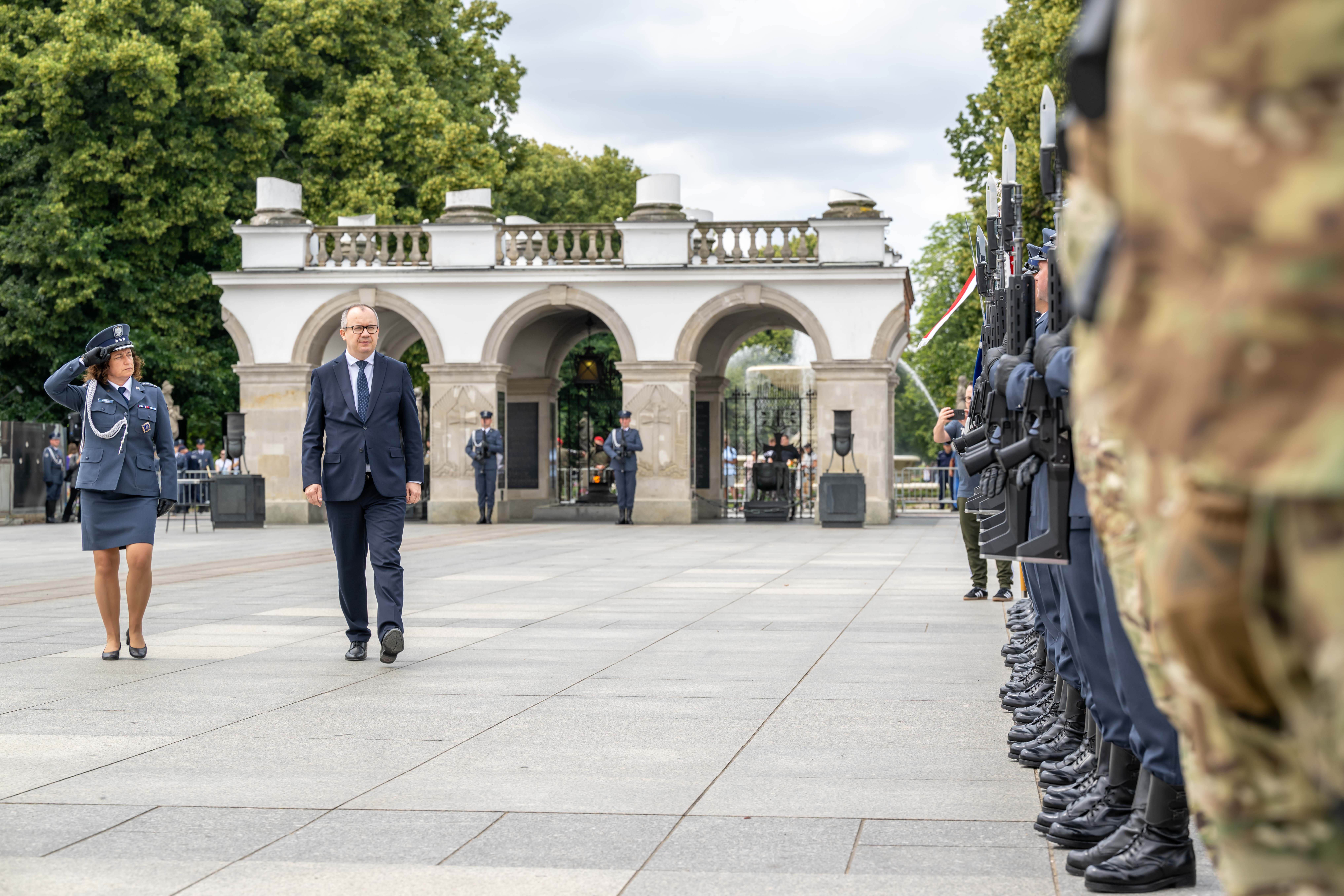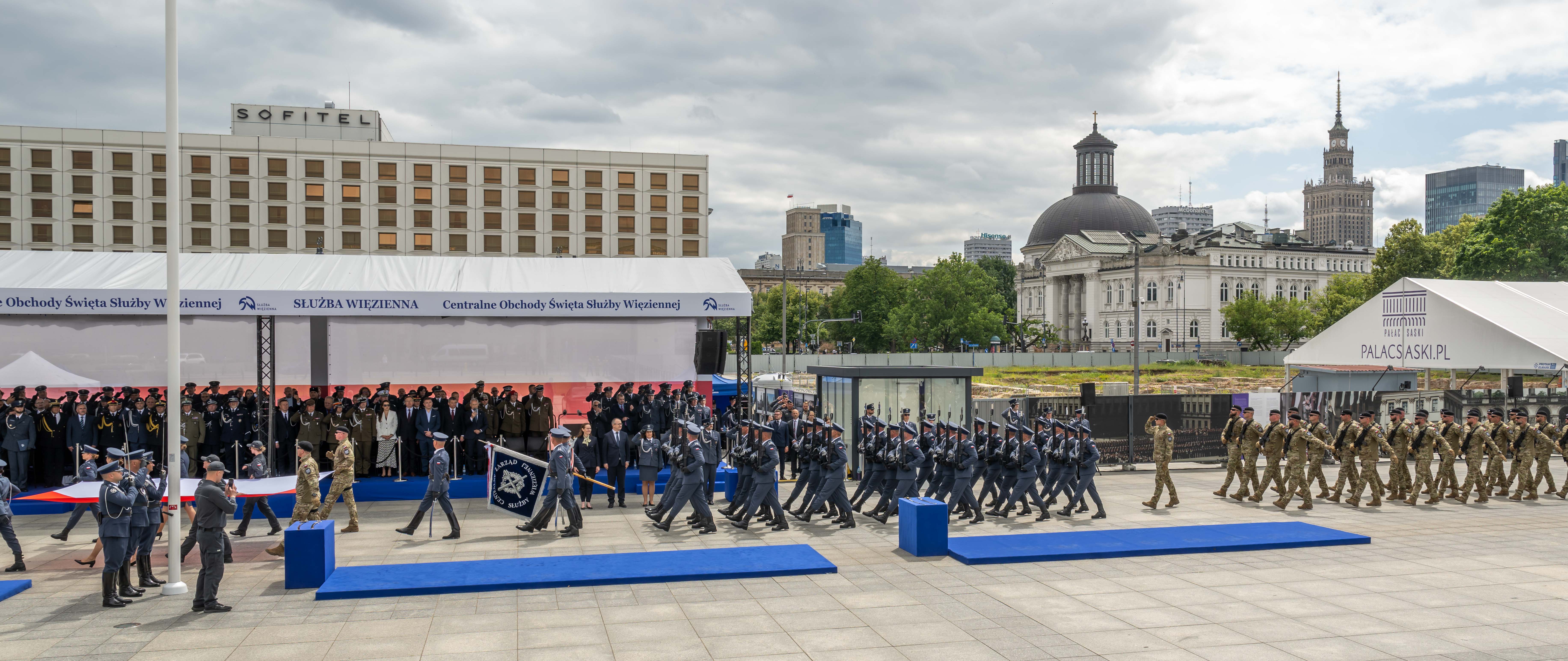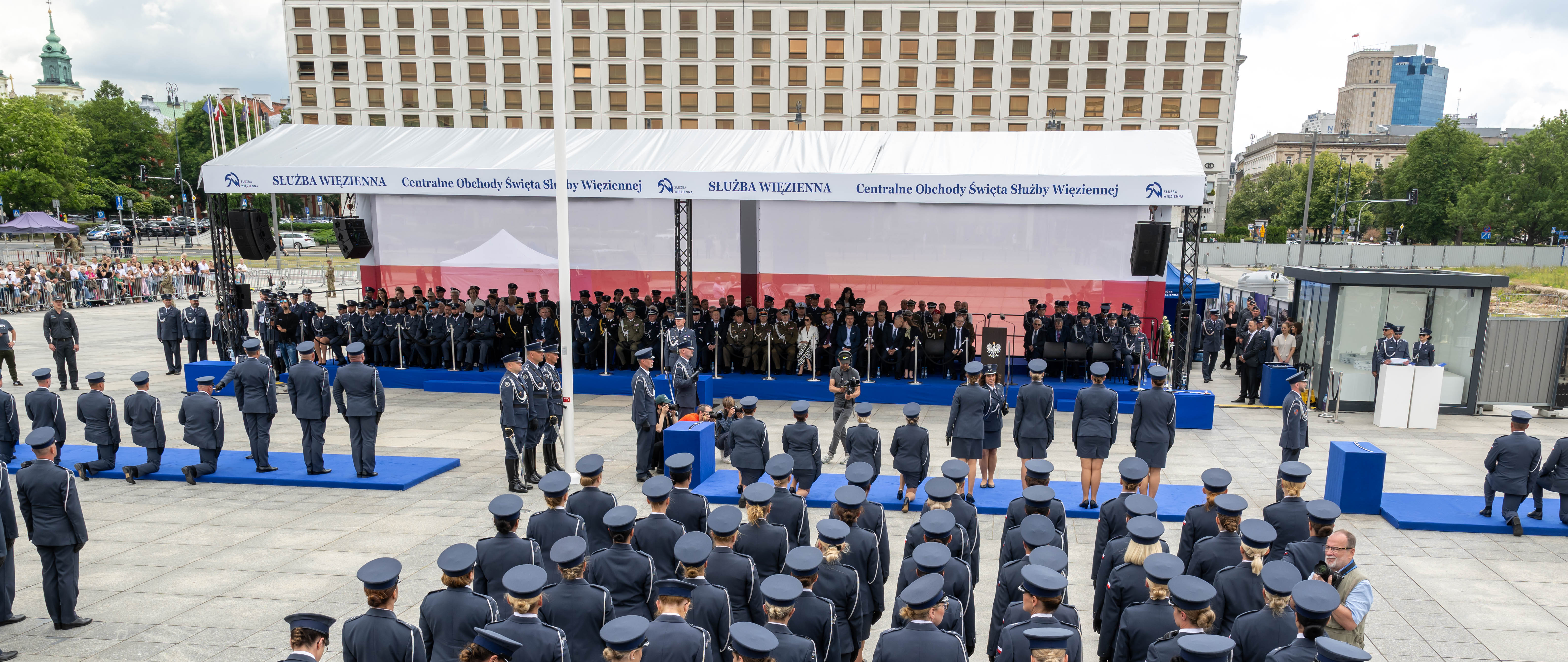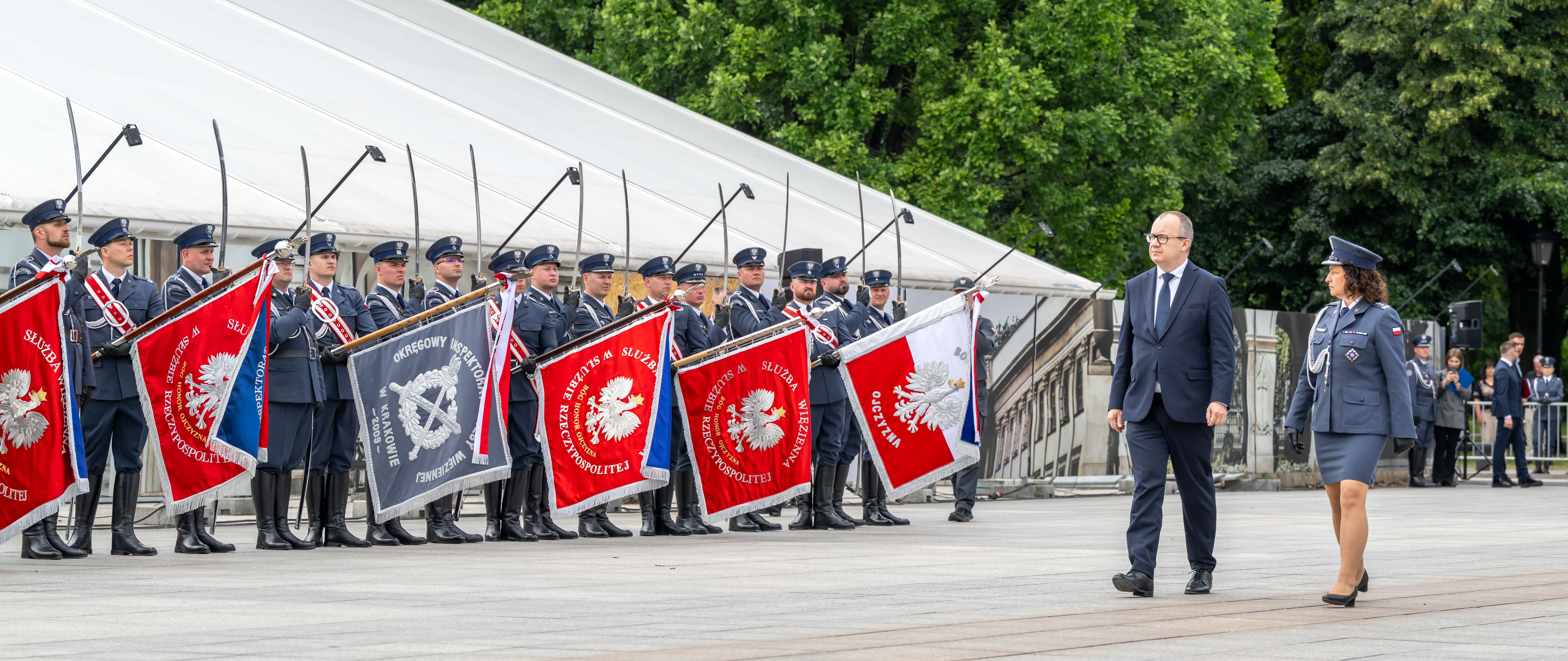 Na Placu Piłsudskiego w Warszawie odbyły się Centralne Obchody Święta Służby Więziennej z udziałem Ministra Sprawiedliwości Adama Bodnara oraz Wiceministry Sprawiedliwości Marii Ejchart.