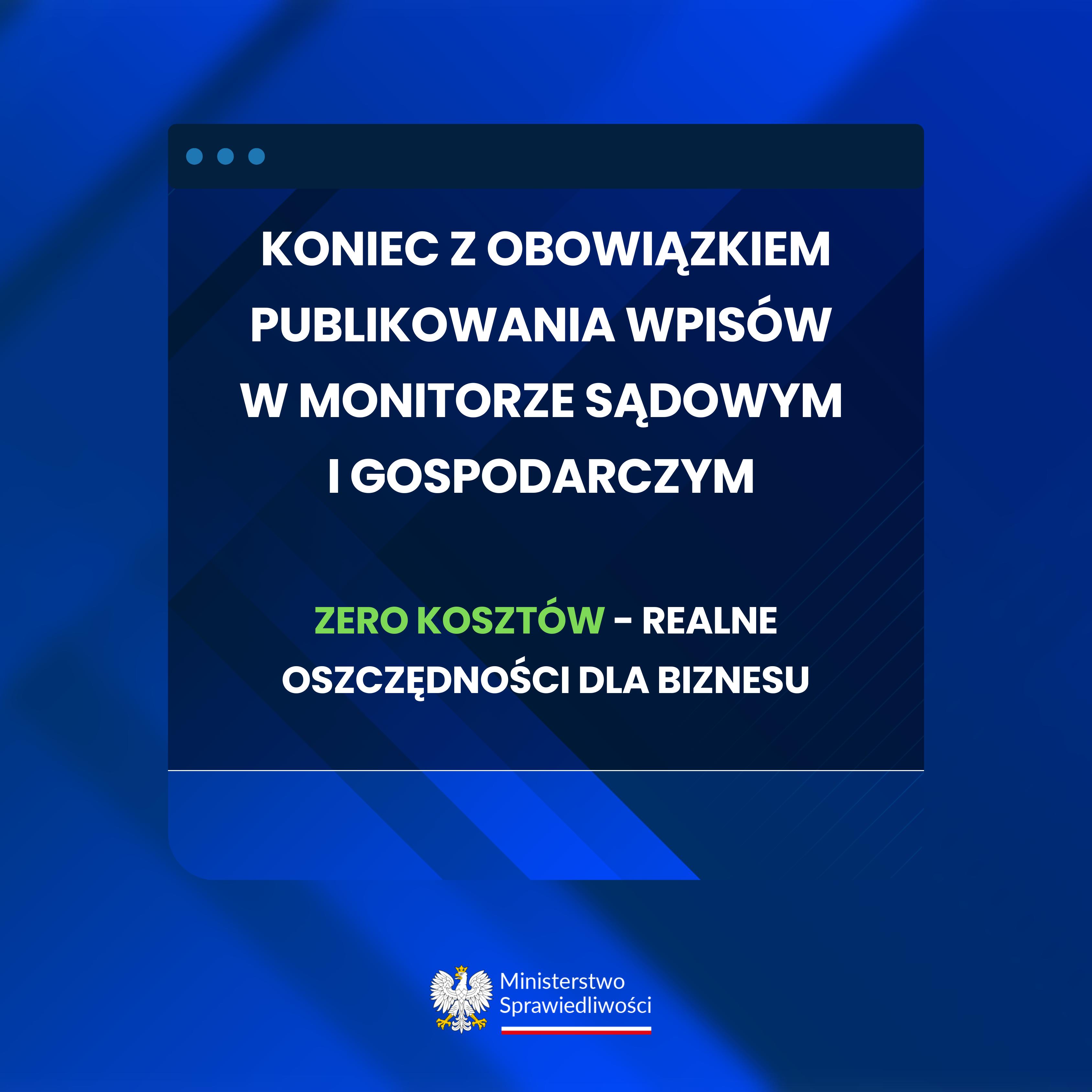 - Przedsiębiorcy nie będą już musieli ponosić kosztów publikacji w Monitorze Sądowym i Gospodarczym wpisów w Krajowym Rejestrze Sądowym (KRS) – to realna oszczędność i mniej biurokratycznych obowiązków.