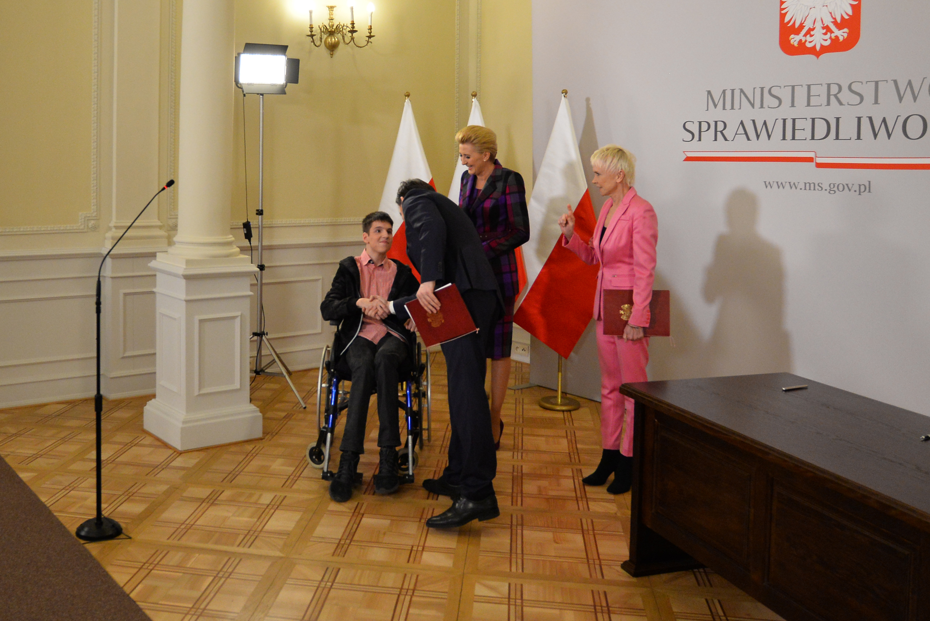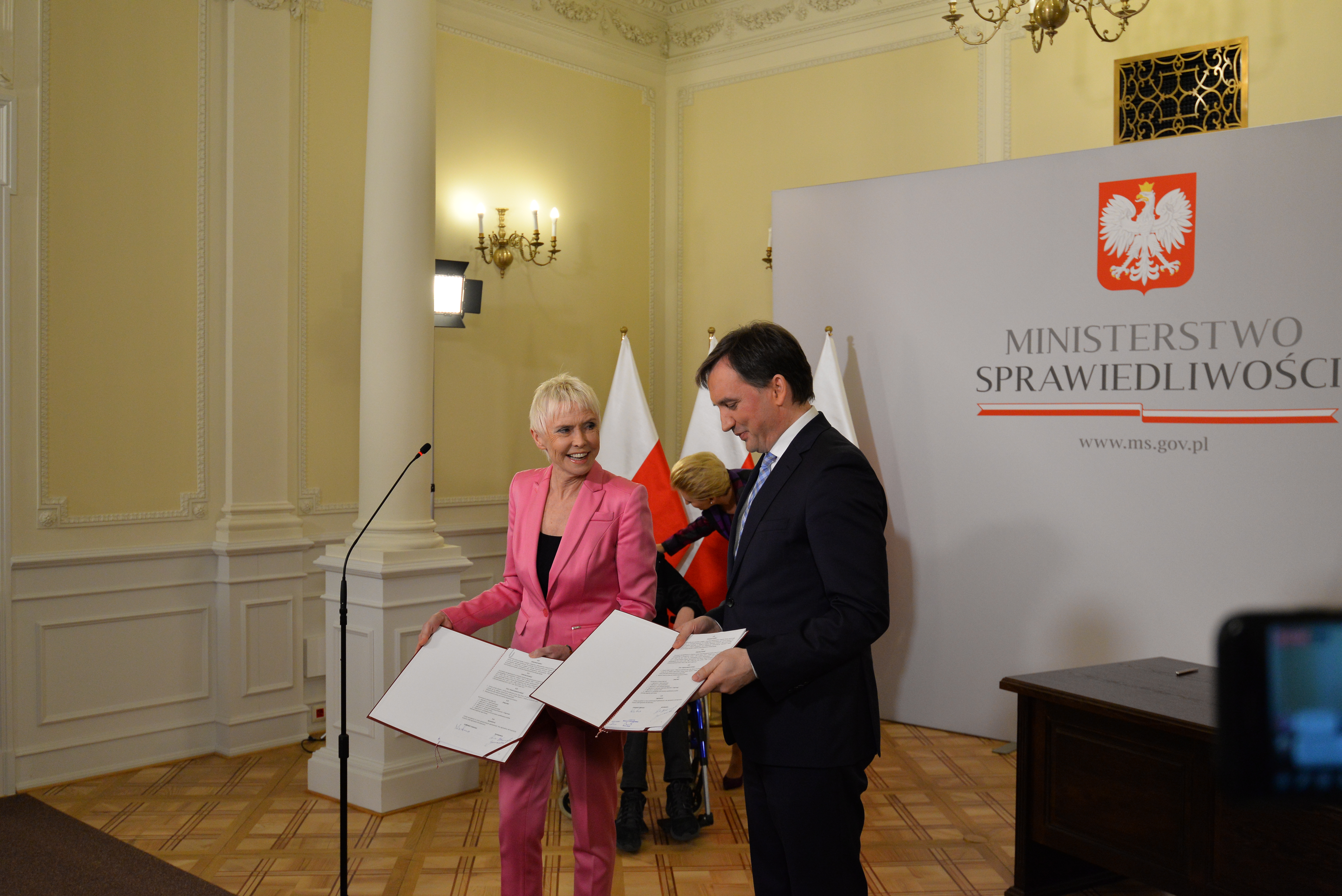 Minister Sprawiedliwości Prokurator Generalny Zbigniew Ziobro i Prezes Fundacji „Akogo?” Ewa Błaszczyk podpisali dziś (20 marca 2019 r.) umowę na wybudowanie i wyposażenie kliniki „Budzik” dla dorosłych w Warszawie. W uroczystości wzięła udział Pani Prezydentowa Agata Kornhauser-Duda, która objęła honorowy patronat nad przedsięwzięciem. Wśród gości był również 16-letni Krzysztof Fogel, wybudzony w „Budziku” dla dzieci po kilku miesiącach śpiączki.