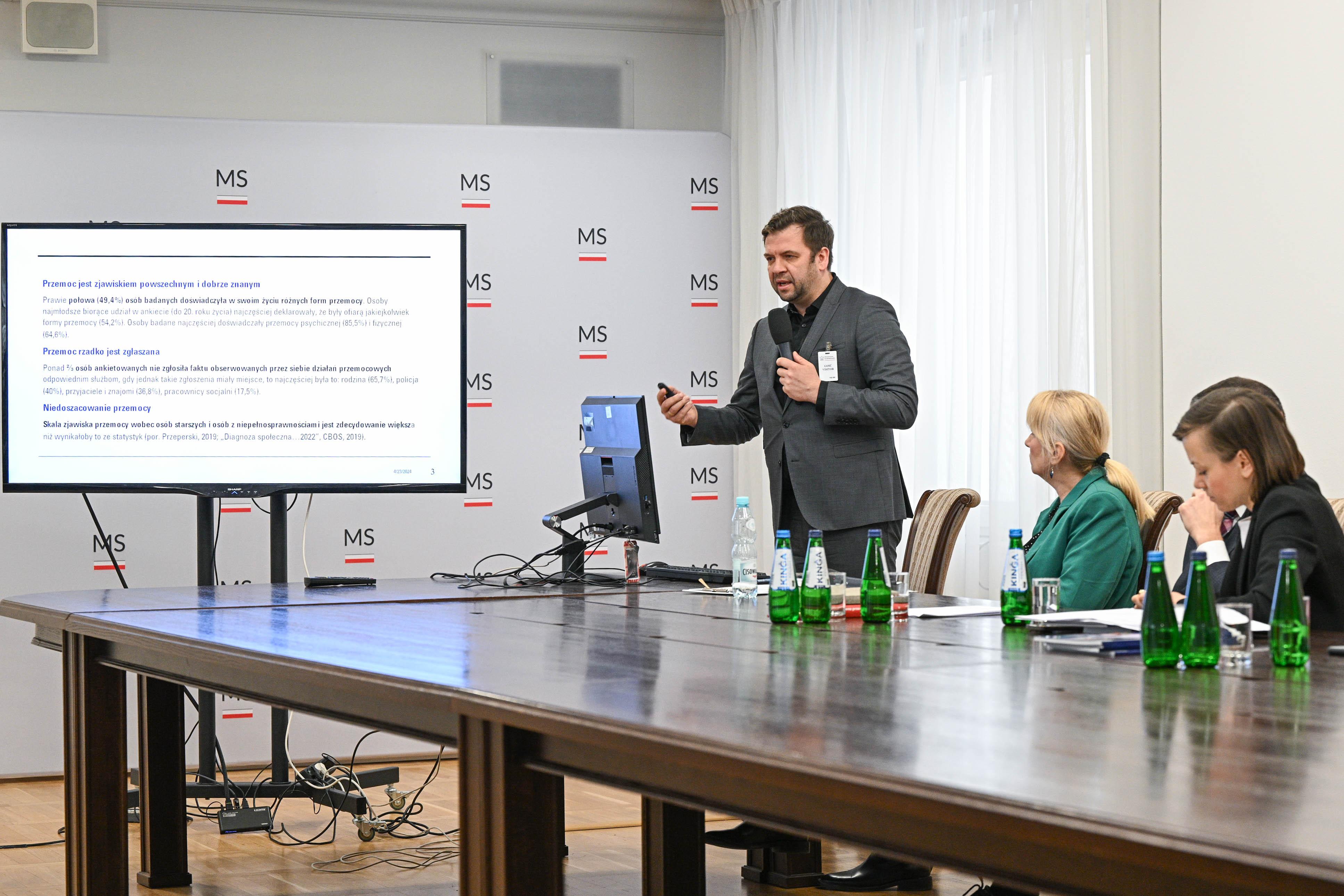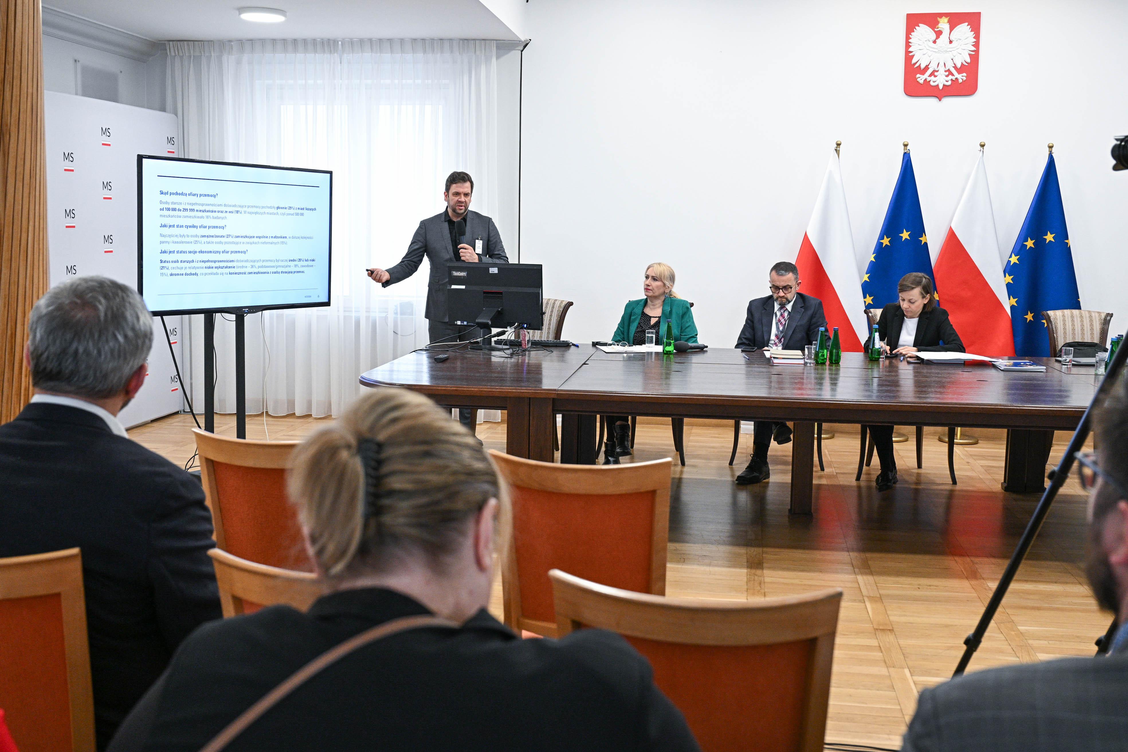 Uczestnicy dzisiejszego seminarium podsumowali działania podjęte podczas realizacji projektu, omówili przeprowadzone szkolenia oraz przedstawili Model profilaktyki przeciwdziałania przemocy wobec osób starszych i niepełnosprawnych zagrożonych i doznających przemocy oraz dla ich rodzin. Wśród prelegentów znaleźli się między innymi profesor Uniwersytetu Łódzkiego dr hab. Piotr Chomczyński, dr Jarosław Przeperski oraz Paulina Gutek z Miejskiego Ośrodka Pomocy Społecznej w Krakowie, który był jednym z beneficjentów projektu. W seminarium uczestniczyli ponadto przedstawiciele Ministerstwa Funduszy i Polityki Regionalnej, Ministerstwa Rodziny, Pracy i Polityki Społecznej oraz Departamentu Polityki Senioralnej Kancelarii Prezesa Rady Ministrów.