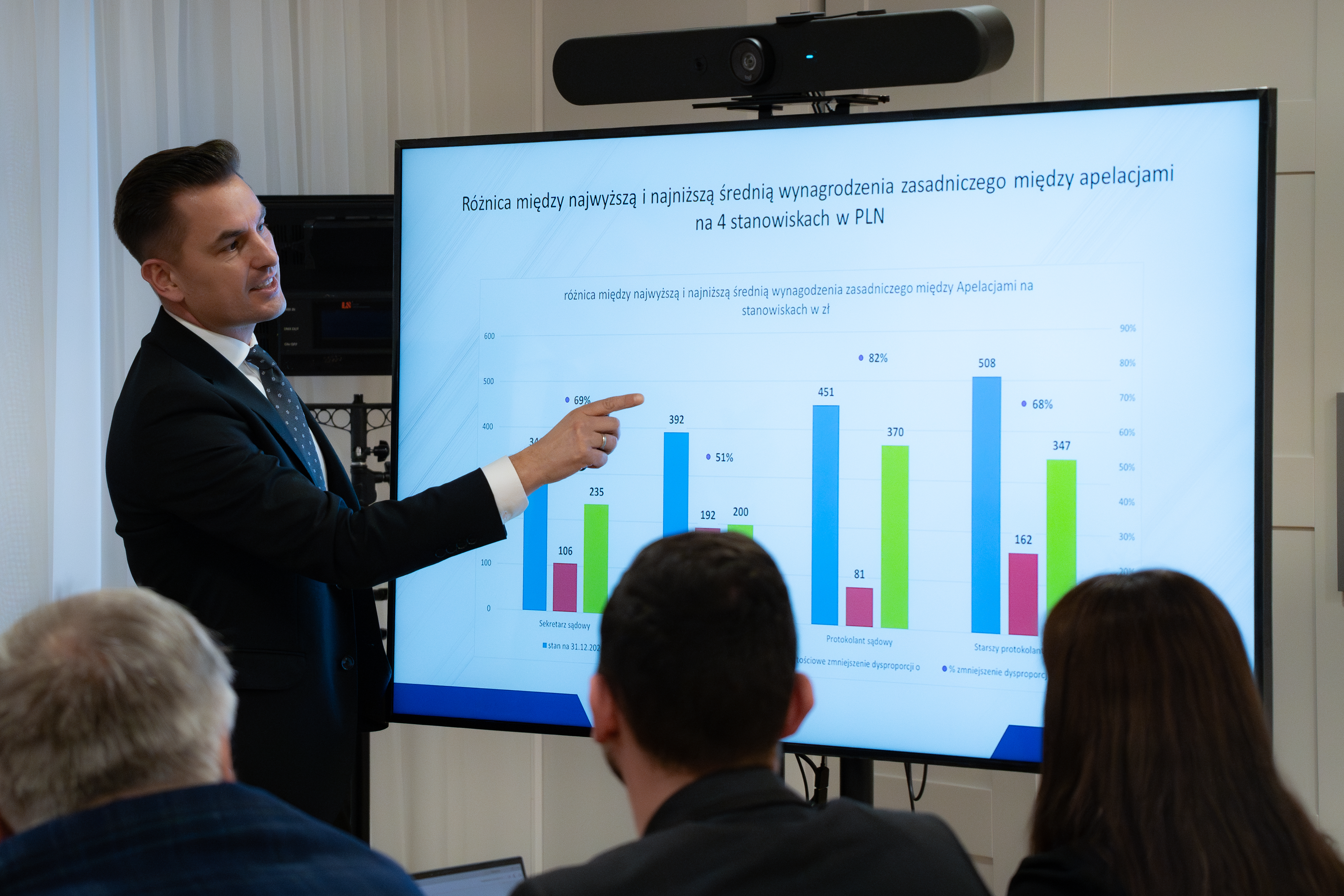 – Naszym priorytetem jest to, by nikt w sądzie nie zarabiał mniej niż 5000 złotych. Dlatego odrywamy najniższe stawki od płacy minimalnej – nie wyobrażamy sobie sytuacji, w której pracownik sądownictwa ma wynagrodzenie na poziomie ustawowego minimum – mówił wiceminister Arkadiusz Myrcha na spotkaniu z przedstawicielami związków zawodowych pracowników wymiaru sprawiedliwości.