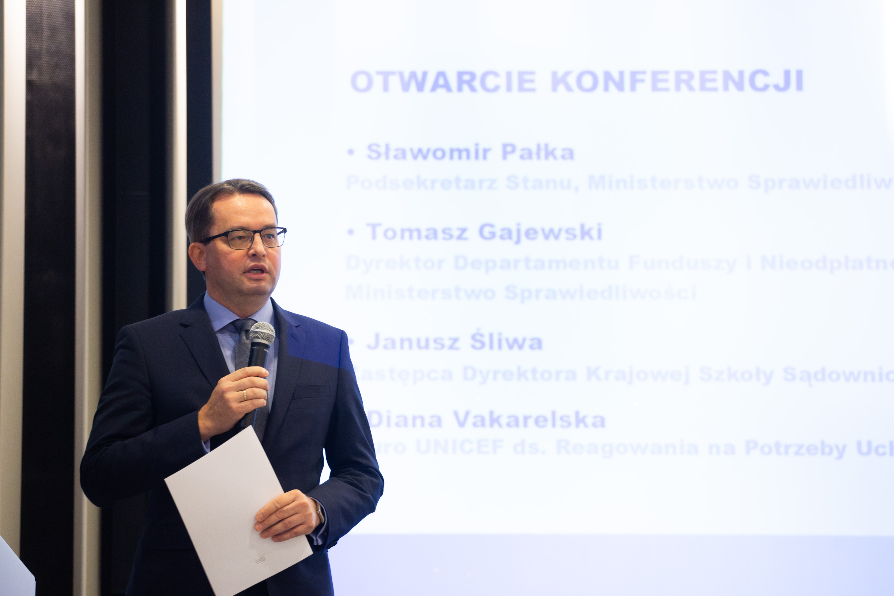 Dzisiejsze spotkanie jest możliwe dzięki wspólnym priorytetom Ministerstwa Sprawiedliwości i UNICEF – priorytetom, które łączą nas wokół jednego celu: ochrony praw dziecka, niezależnie od jego pochodzenia, sytuacji rodzinnej czy życiowych doświadczeń. Już od trzech lat współpracujemy w tym niezwykle ważnym obszarze, podejmując działania, które realnie wzmacniają system ochrony najmłodszych. Dzisiejsza konferencja, podczas której podsumowujemy dotychczasowe osiągnięcia, nie jest zakończeniem naszej wspólnej drogi – to raczej przecinek, moment refleksji i inspiracji do dalszej pracy. Współpraca między MS a UNICEF to przykład, jak łączenie doświadczeń instytucji publicznych i organizacji międzynarodowych może przynosić konkretne, trwałe efekty w imię dobra dziecka – powiedział podczas otwarcia Wiceminister Sprawiedliwości Sławomir Pałka.