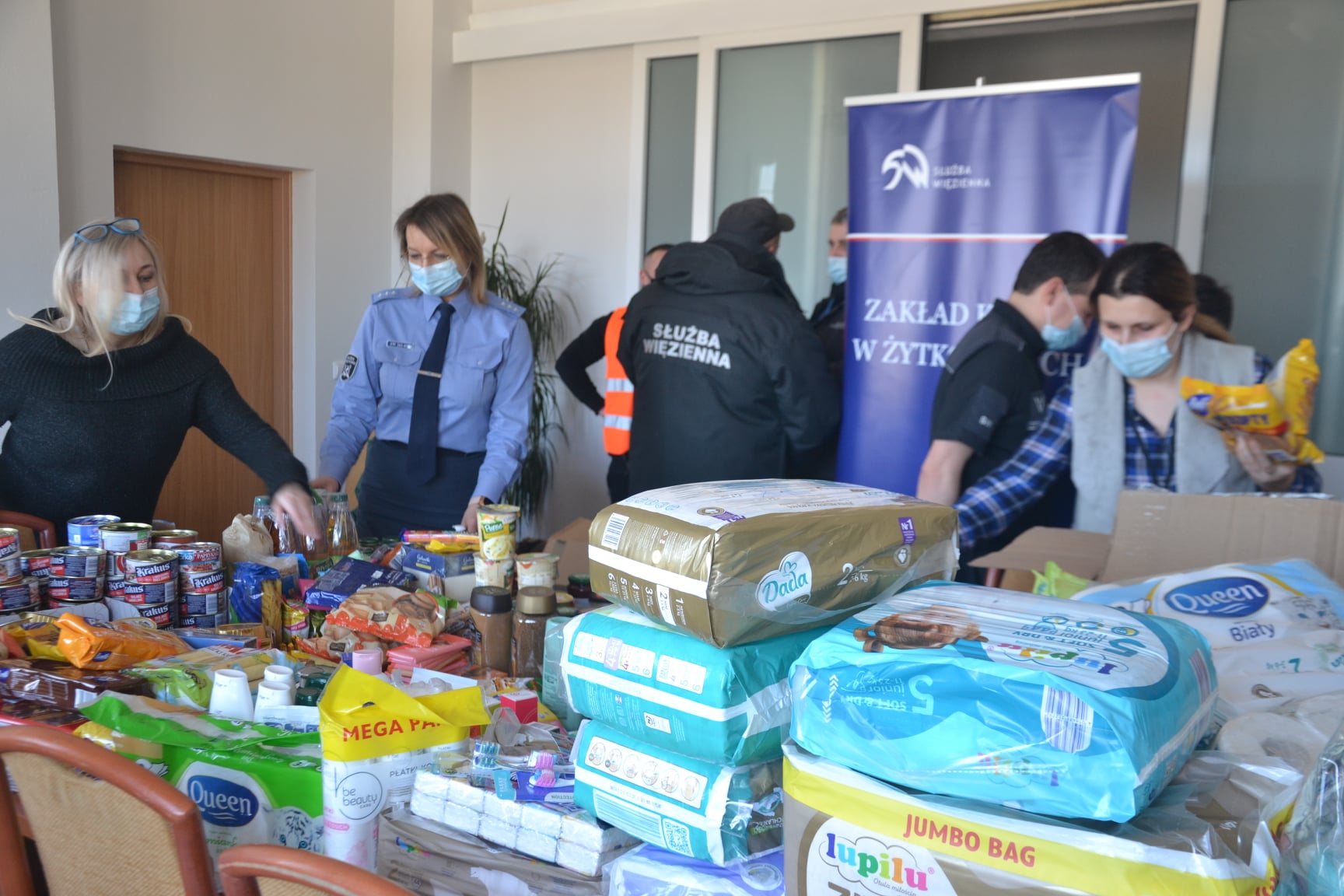 Z każdą godziną przybywa pomysłów i ludzi włączających się w różne formy pomocy Ukrainie. Funkcjonariusze Służby Więziennej współpracują z urzędami wojewódzkimi i lokalnymi ośrodkami pomocowymi. Gromadzą żywność długoterminową, m.in. konserwy, olej, cukier, mąkę, kasze, ryż. A także kosmetyki, środki higieny osobistej, chemię gospodarczą, kubki, talerze, sztućce jednorazowe, koce, śpiwory, poduszki, baterie, ładowarki do telefonów oraz artykuły dla dzieci: żywność, środki higieniczne i zabawki.