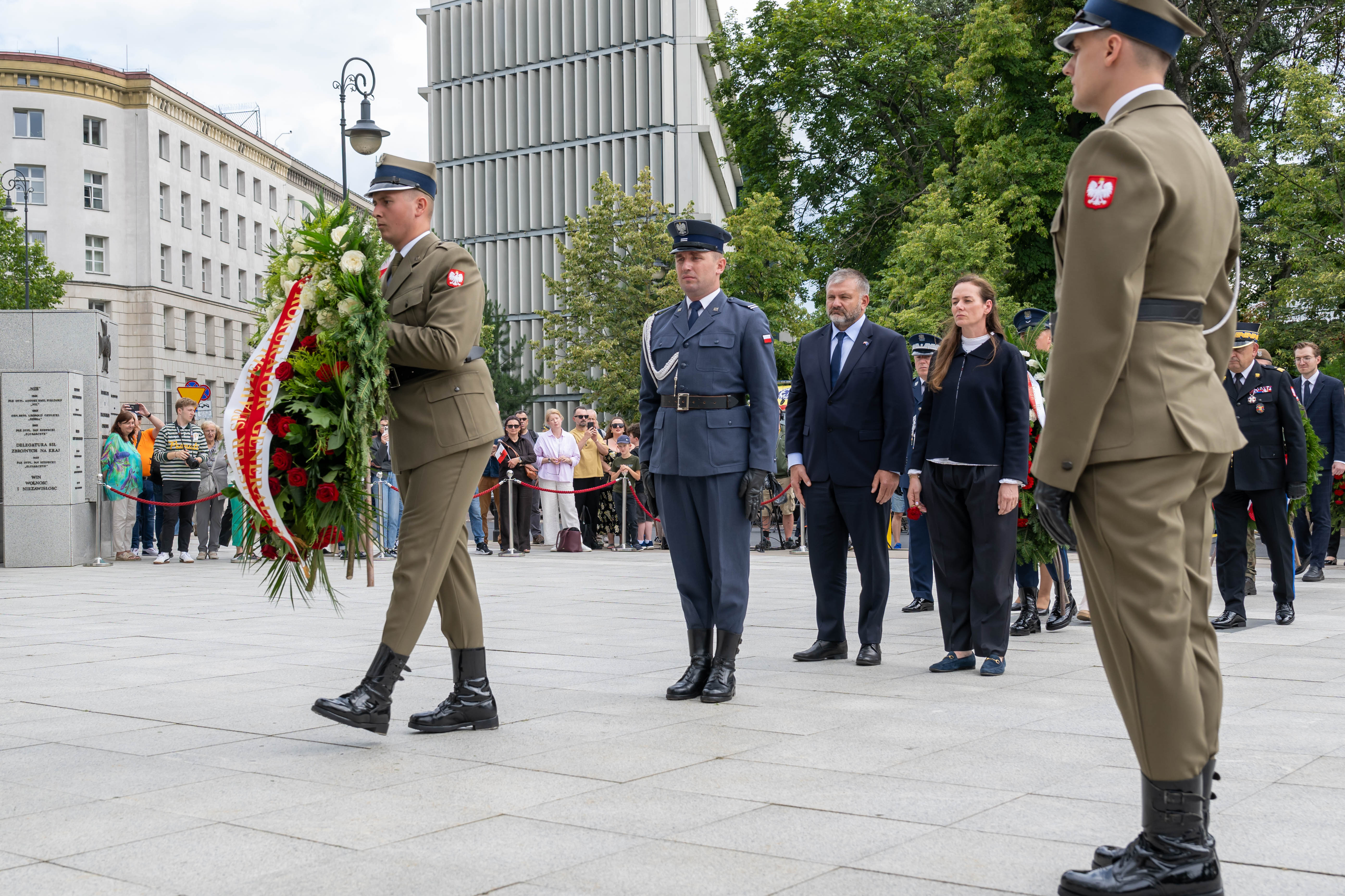 Minister Sprawiedliwości Waldemar Żurek i wiceminister Maria Ejchart złożyli wieniec pod Pomnikiem Polskiego Państwa Podziemnego i Armii Krajowej, który znajduje się w pobliżu Sejmu RP.