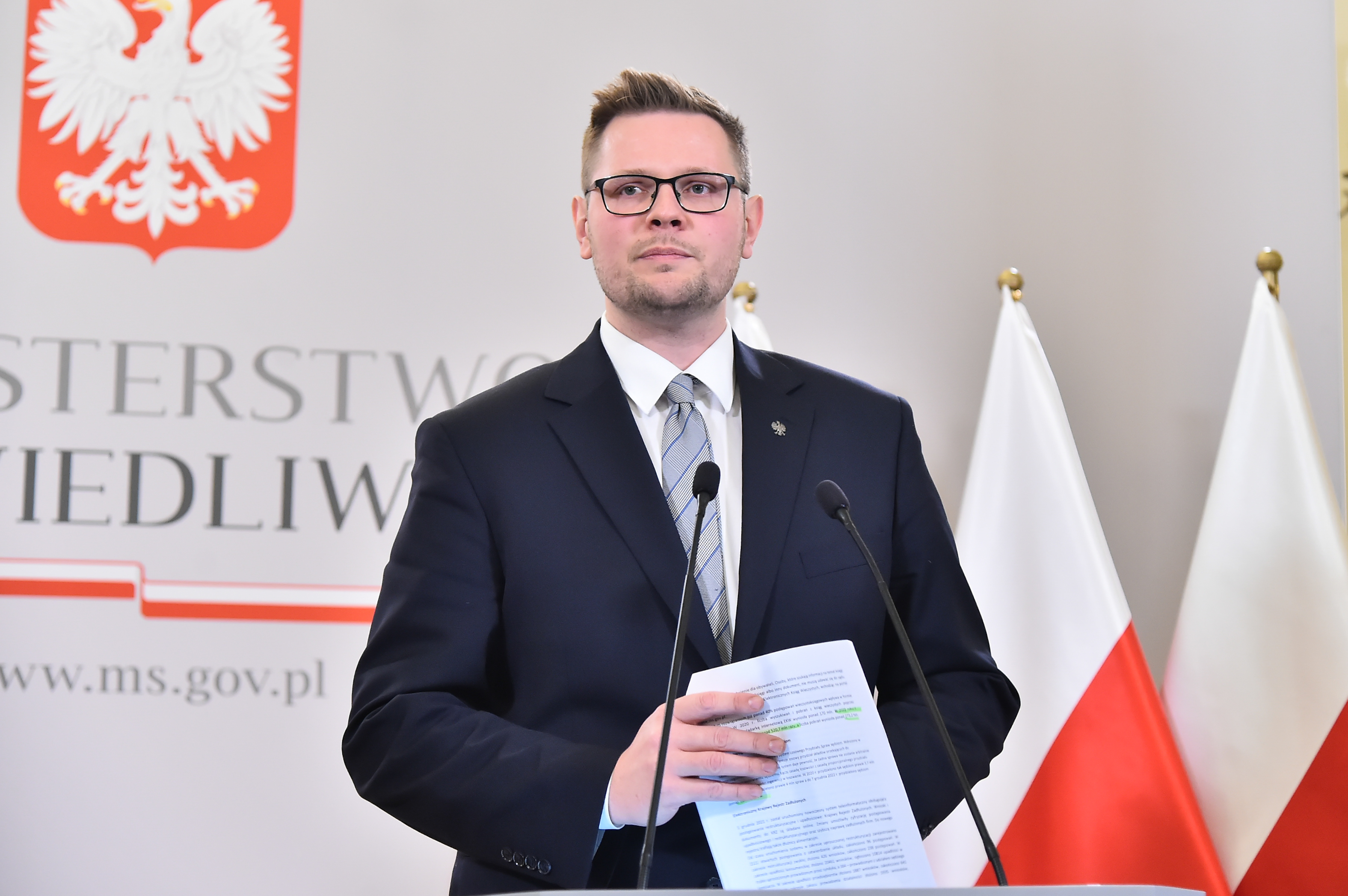 - Ogromna zmiana to także System Losowego Przydziału Spraw, dzięki któremu nie ma mowy o celowym wyznaczaniu sędziego do jakiejś konkretnej sprawy czy elektroniczny Krajowy Rejestr Zadłużonych, uruchomiony w 2021 roku – mówił wiceminister sprawiedliwości Sebastian Kaleta podczas konferencji.