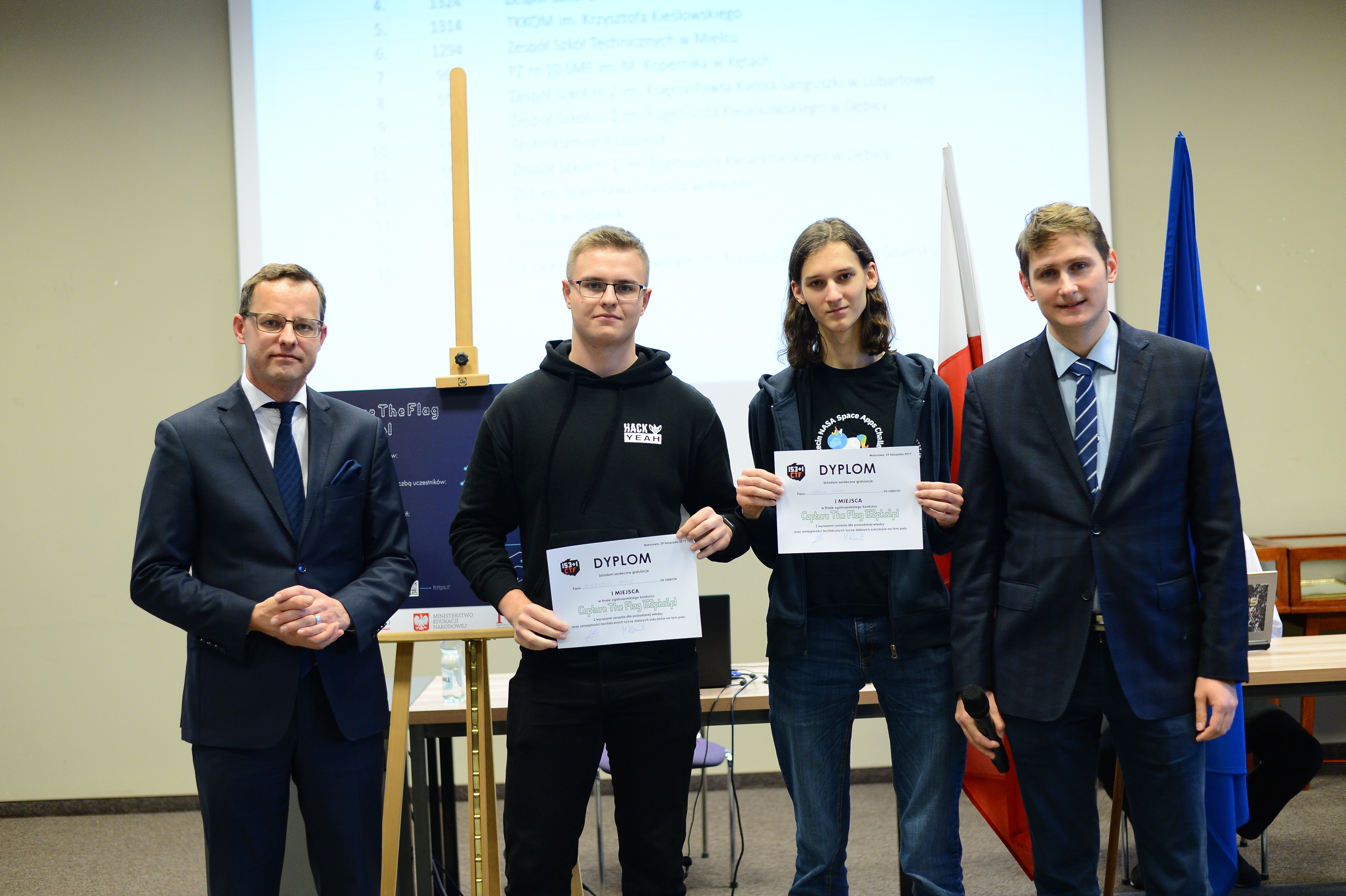 I miejsce - Miłosz Skaza i Jan Rosa - zespół pod opieką Dawida Bąka z Technikum Informatycznego Szczecińskiego Collegium Informatycznego. Zwycięzcy otrzymali – obok pamiątkowych dyplomów - po 2000 zł;