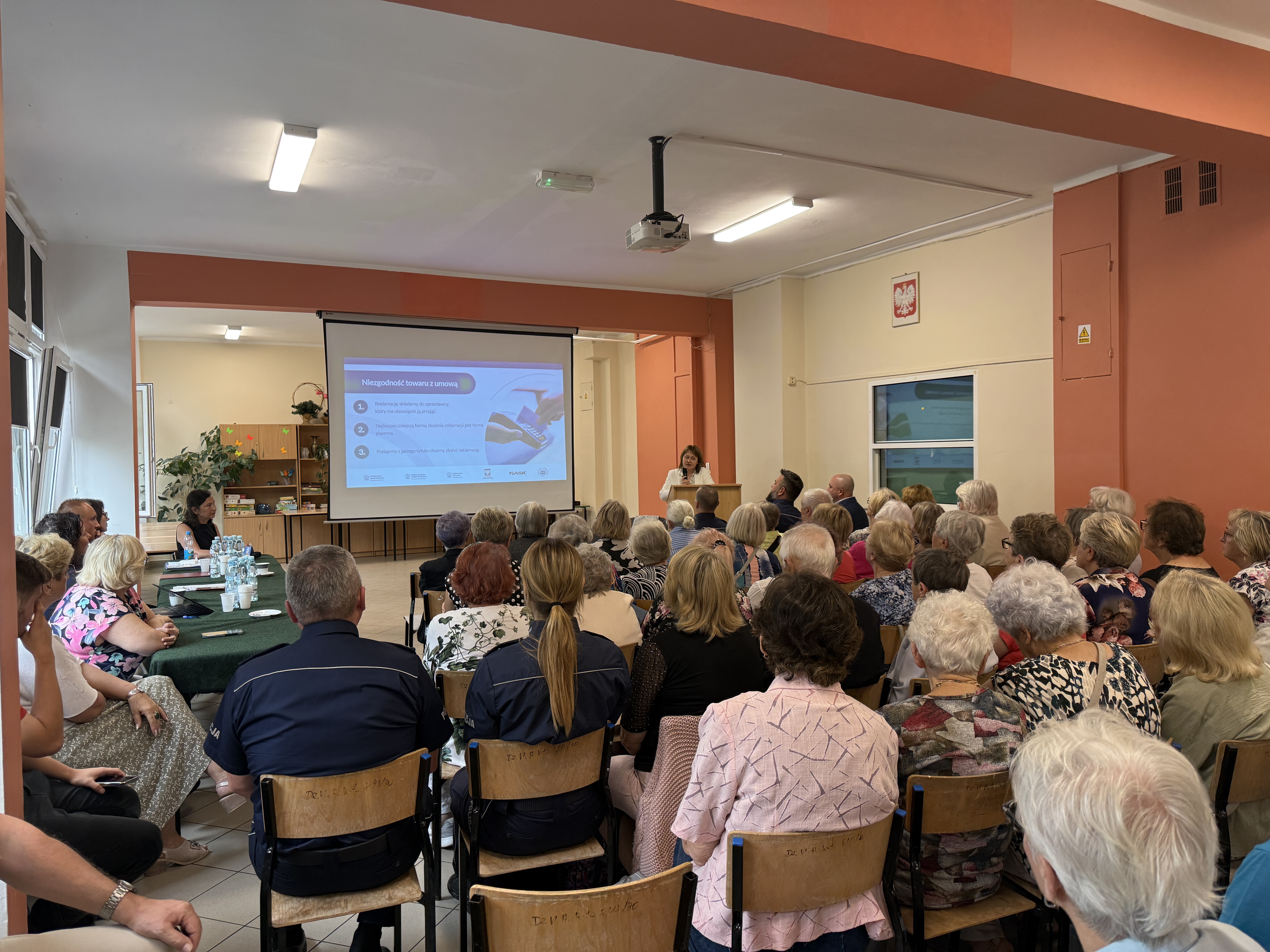 Seniorzy aktywnie uczestniczyli w prelekcjach, dzieląc się swoimi doświadczeniami oraz zadając liczne pytania dotyczące przysługujących im praw.