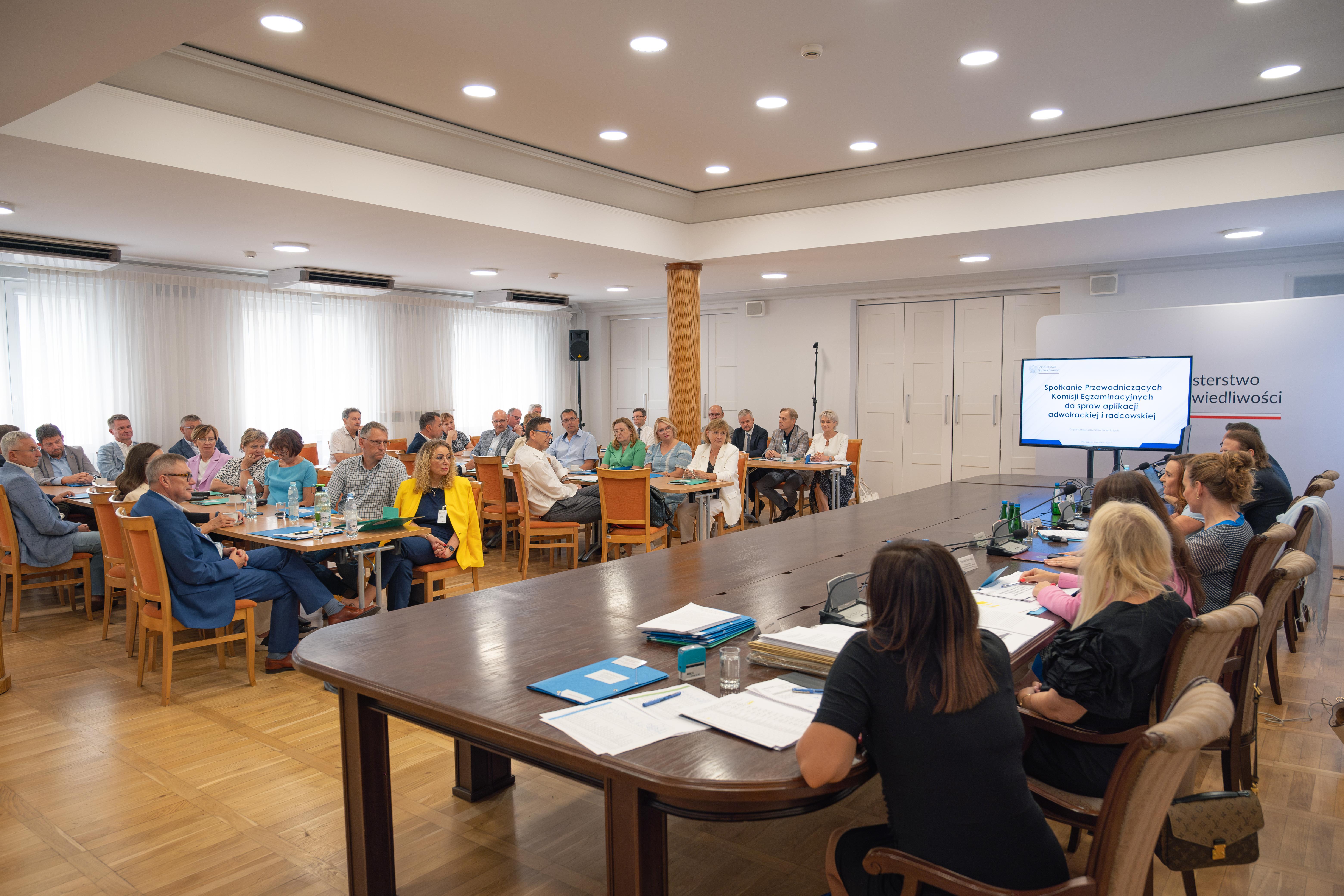 W spotkaniu (05.09 2024 r.) uczestniczyli przedstawiciele ministerialnego Departamentu Zawodów Prawniczych oraz przewodniczący 41 komisji, które przeprowadzą tegoroczne egzaminy wstępne na aplikację adwokacką i radcowską. Omówiono kwestie prawne oraz techniczne związane z ich organizacją.