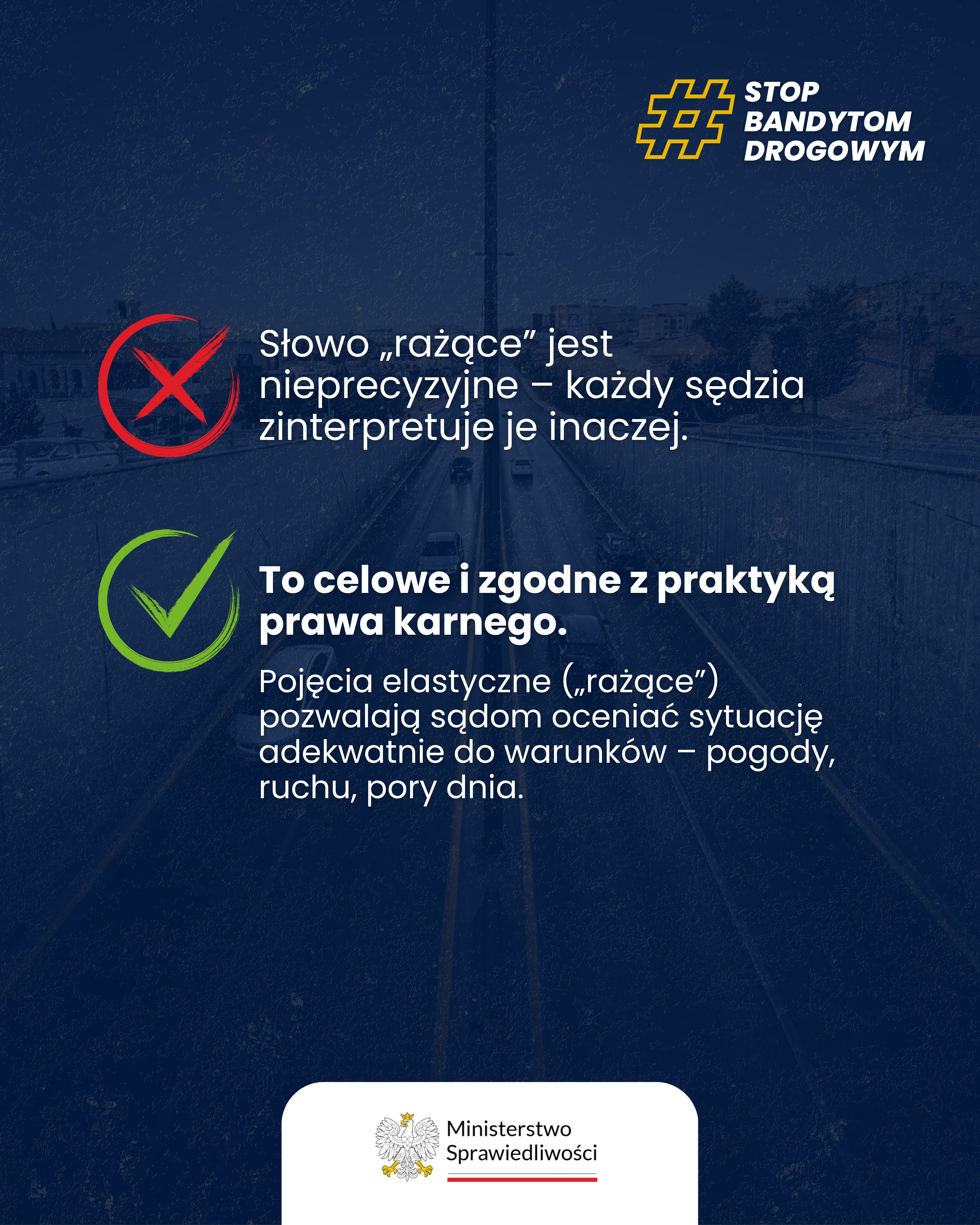 Ministerstwo zwraca uwagę, że prawo karne – podobnie jak inne dziedziny prawa – posługuje się terminami niedookreślonymi, co umożliwia sądom elastyczne i sprawiedliwe stosowanie przepisów w konkretnych okolicznościach.