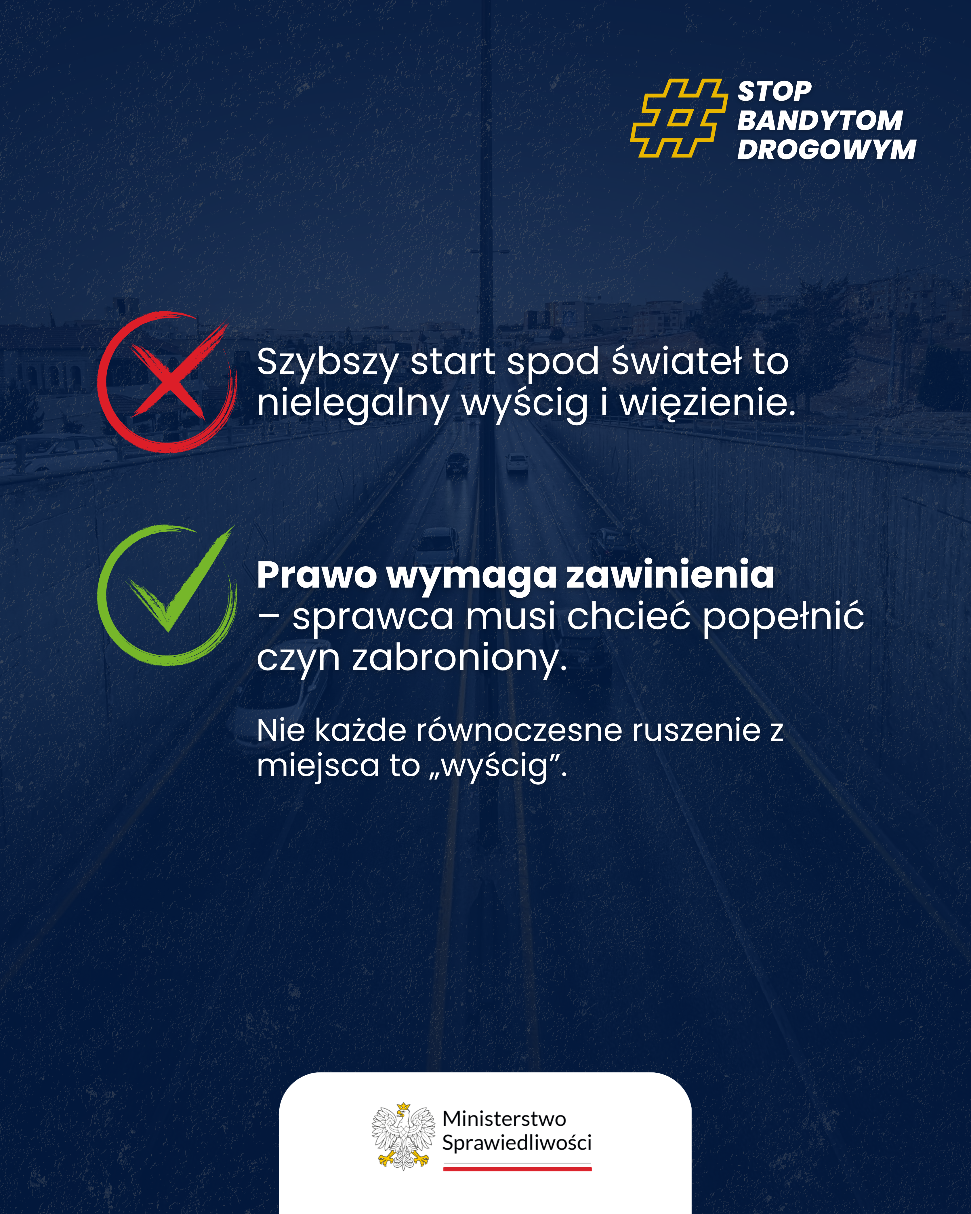 W związku z pojawiającymi się w przestrzeni publicznej nieprecyzyjnymi interpretacjami zmian wprowadzonych do ustawy - Kodeks karny - Ministerstwo Sprawiedliwości informuje, że nowe przepisy nie obejmują karą więzienia zwykłego przekroczenia prędkości, lecz dotyczą jedynie skrajnie niebezpiecznych zachowań na drodze.