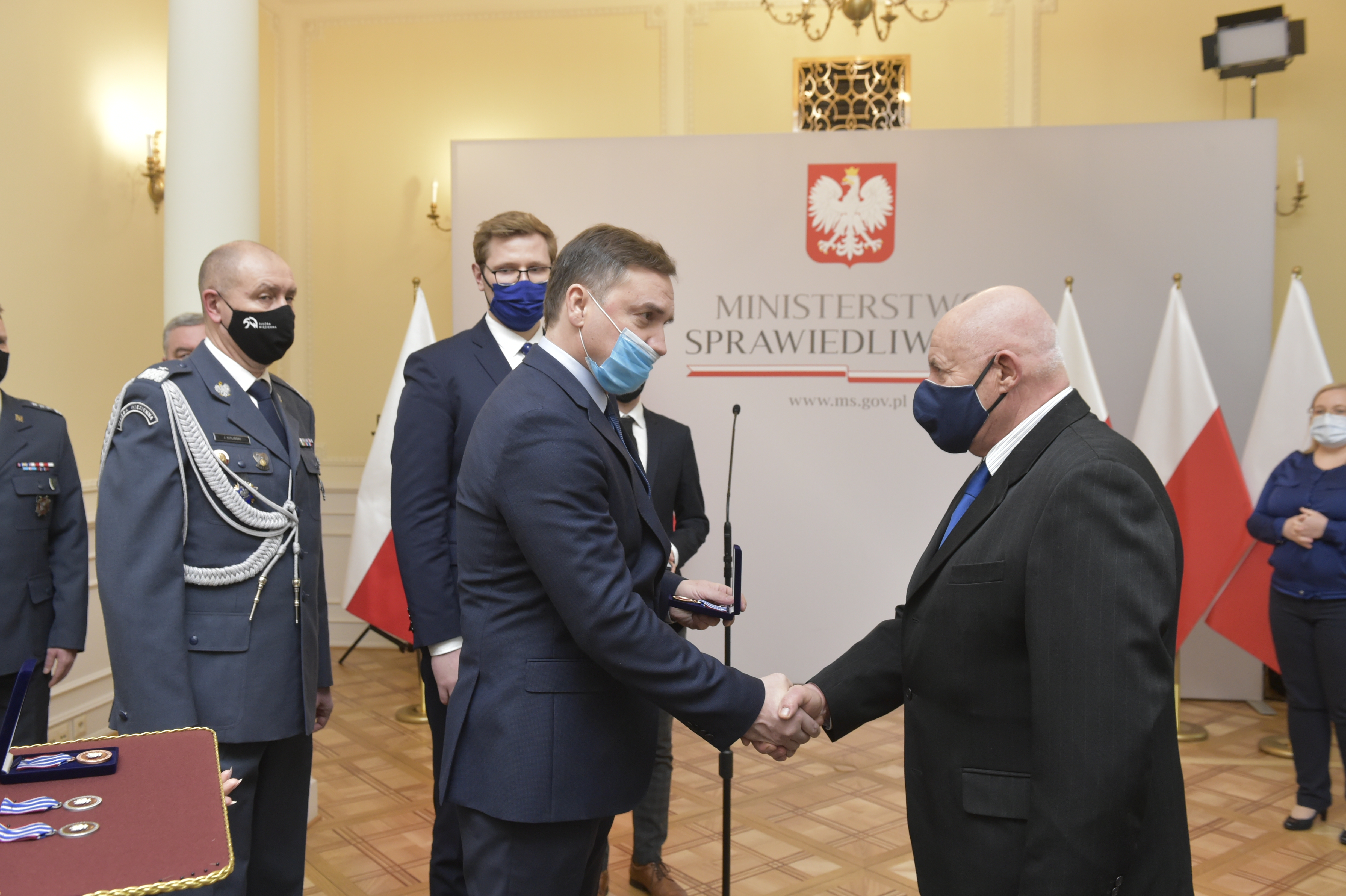 Dalsza część uroczystości miała miejsce w siedzibie Ministerstwa Sprawiedliwości. Minister Zbigniew Ziobro wręczył siedmiu funkcjonariuszom akty nadania wyższego stopnia służbowego, a trzy osoby uhonorował odznakami resortowymi „Za zasługi w pracy penitencjarnej”. Wśród nich był Henryk Rybiński, jeden z najznamienitszych warszawskich rzemieślników i płatnerzy, który złożył na ręce ministra sprawiedliwości replikę szabli wykonanej dla śp. Prezydenta Lecha Kaczyńskiego.