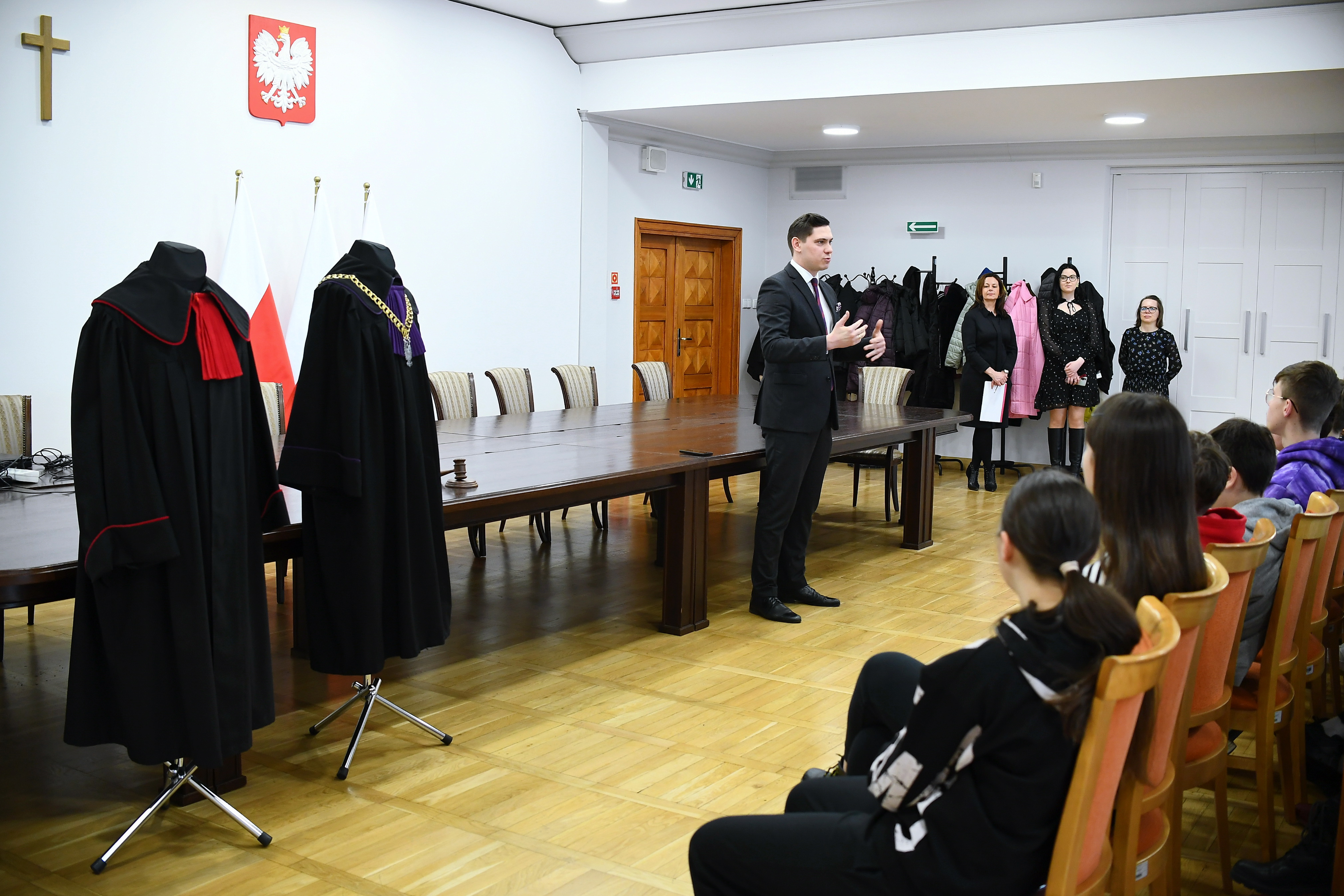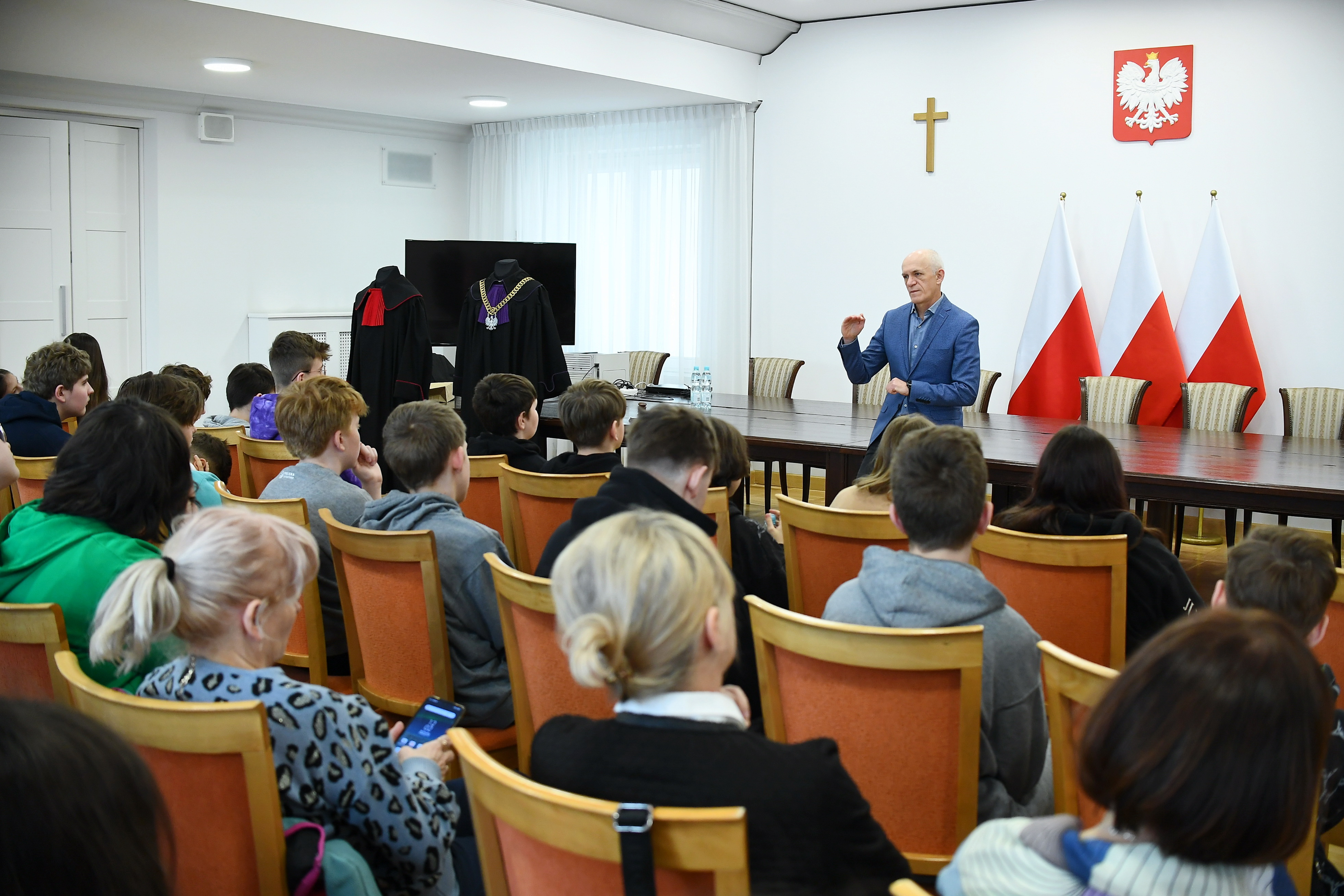 Ministerstwo Sprawiedliwości od lat prowadzi atrakcyjne warsztaty edukacyjno-prawne, adresowane do uczniów starszych klas szkół podstawowych oraz do uczniów szkół średnich. Na dzisiejsze zajęcia „Przygoda z zawodami prawniczymi" przyjechali z Krosna uczniowie klas ósmych Szkoły Podstawowej nr 14 z Oddziałami Sportowymi i Integracyjnymi im. Polskich Olimpijczyków.