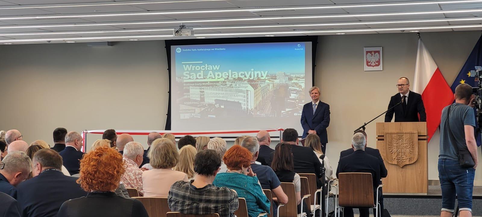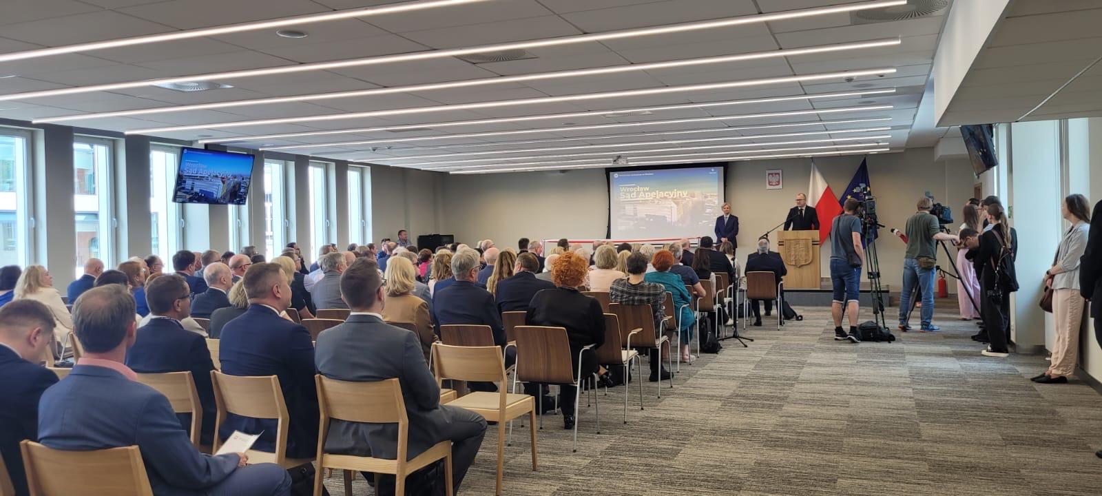 Uroczyste otwarcie nowej siedziby sądu połączono z przedstawieniem przez ministra Adama Bodnara – Prezesa Sądu Apelacyjnego (SA) we Wrocławiu Jacka Gołaczyńskiego – Zgromadzeniu Ogólnemu Sędziów SA.