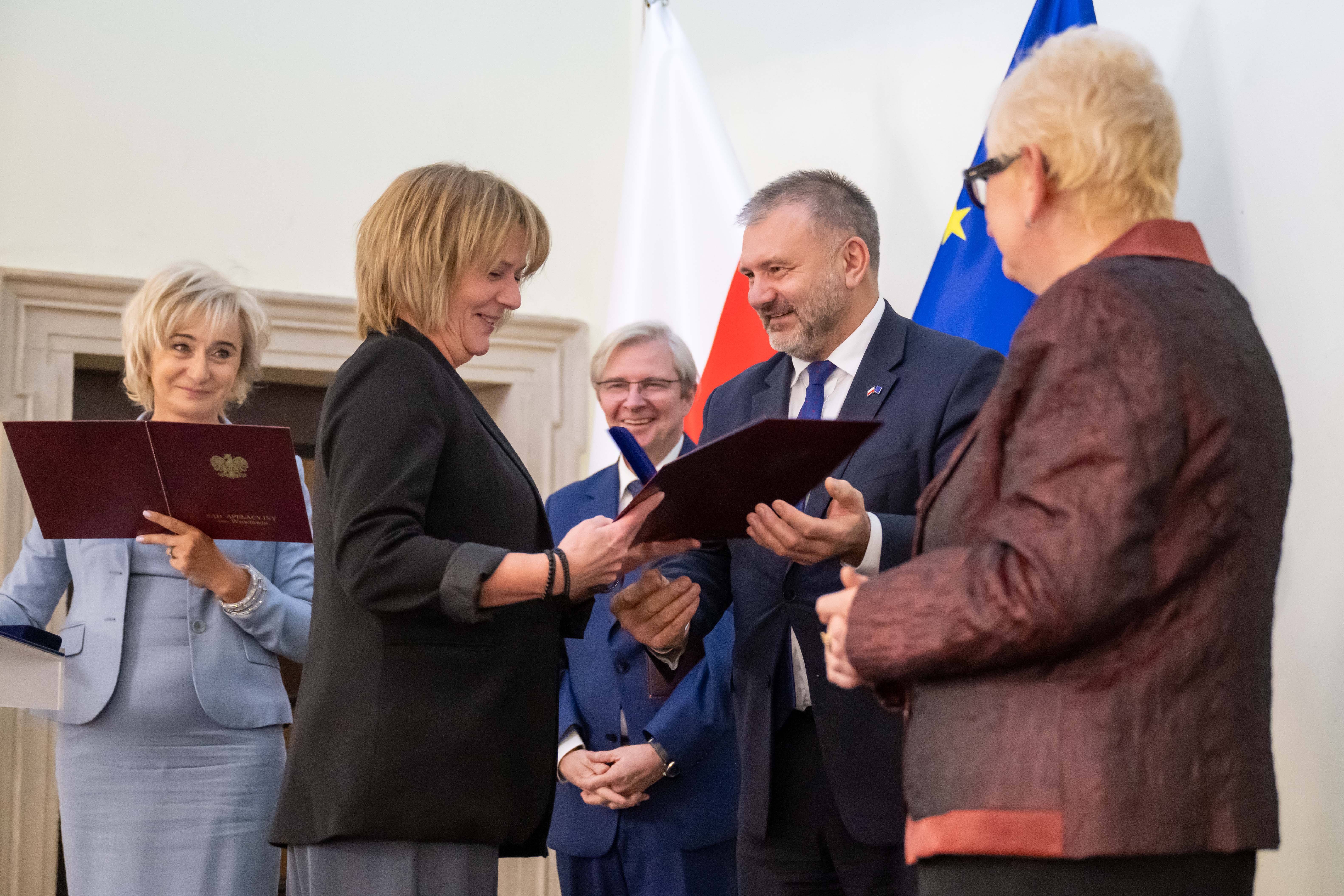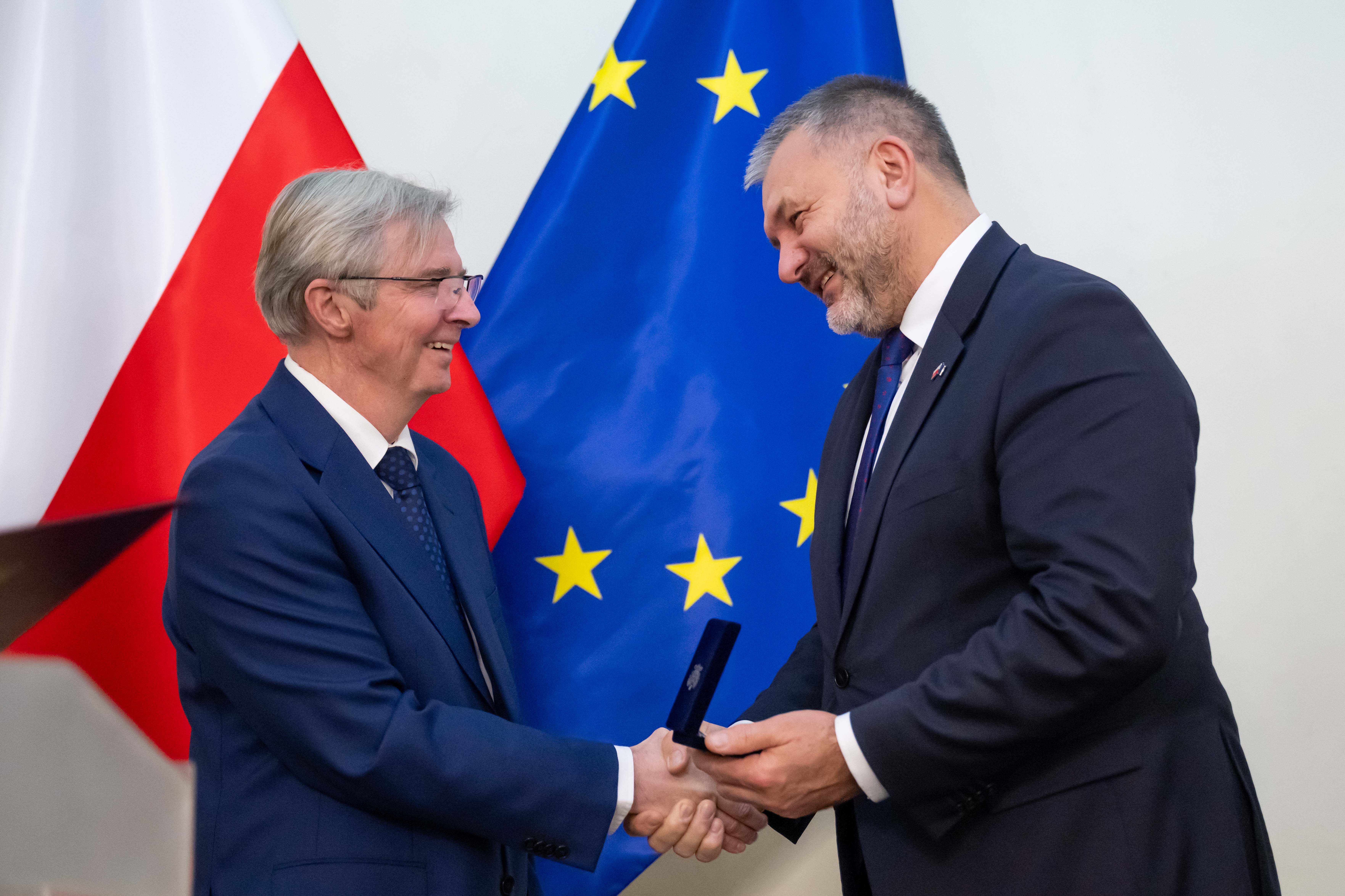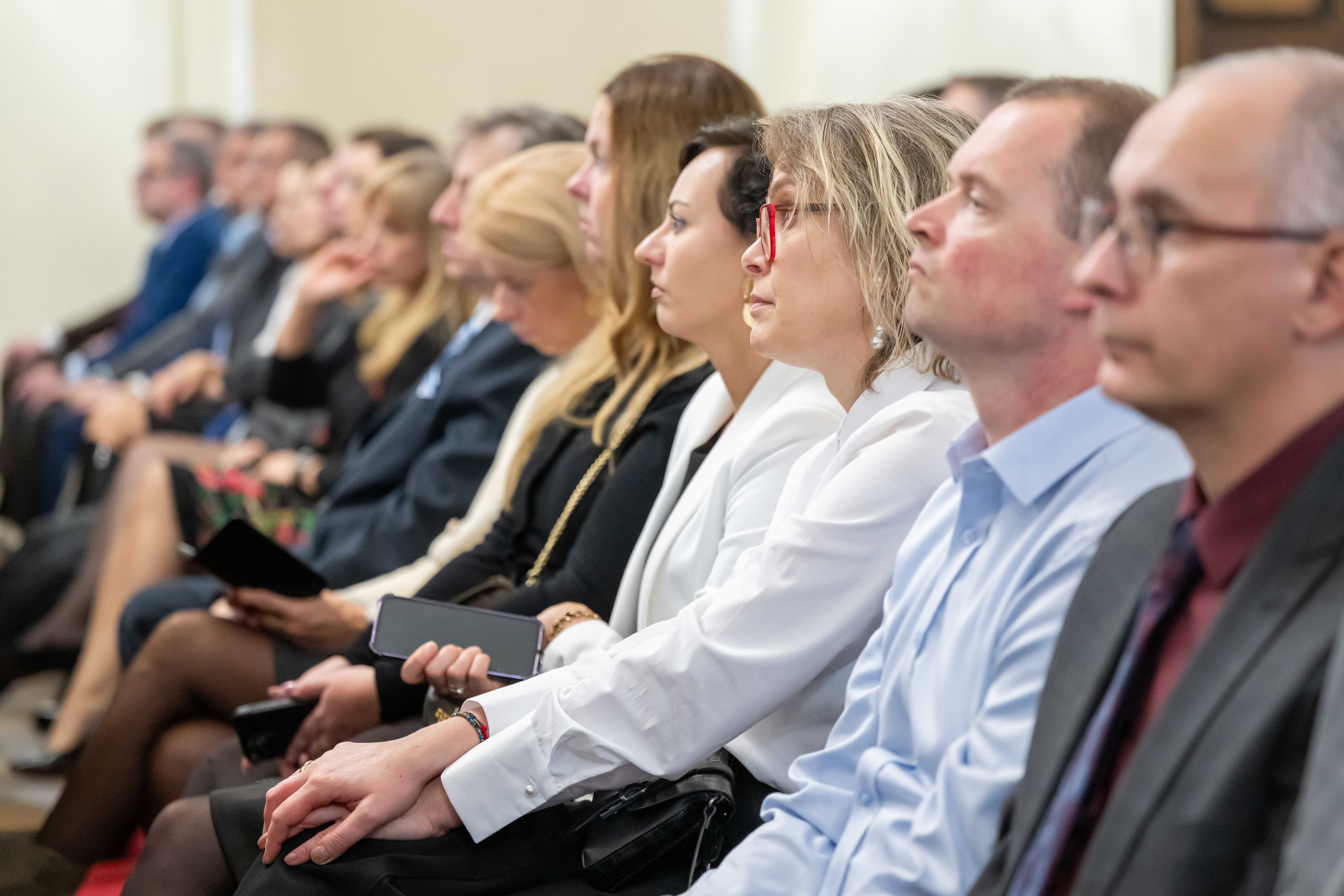 Podczas uroczystości Minister Waldemar Żurek wręczył także Odznaki Honorowe za Zasługi dla Wymiaru Sprawiedliwości oraz srebrne medale pamiątkowe - Lex Veritas Justitia.