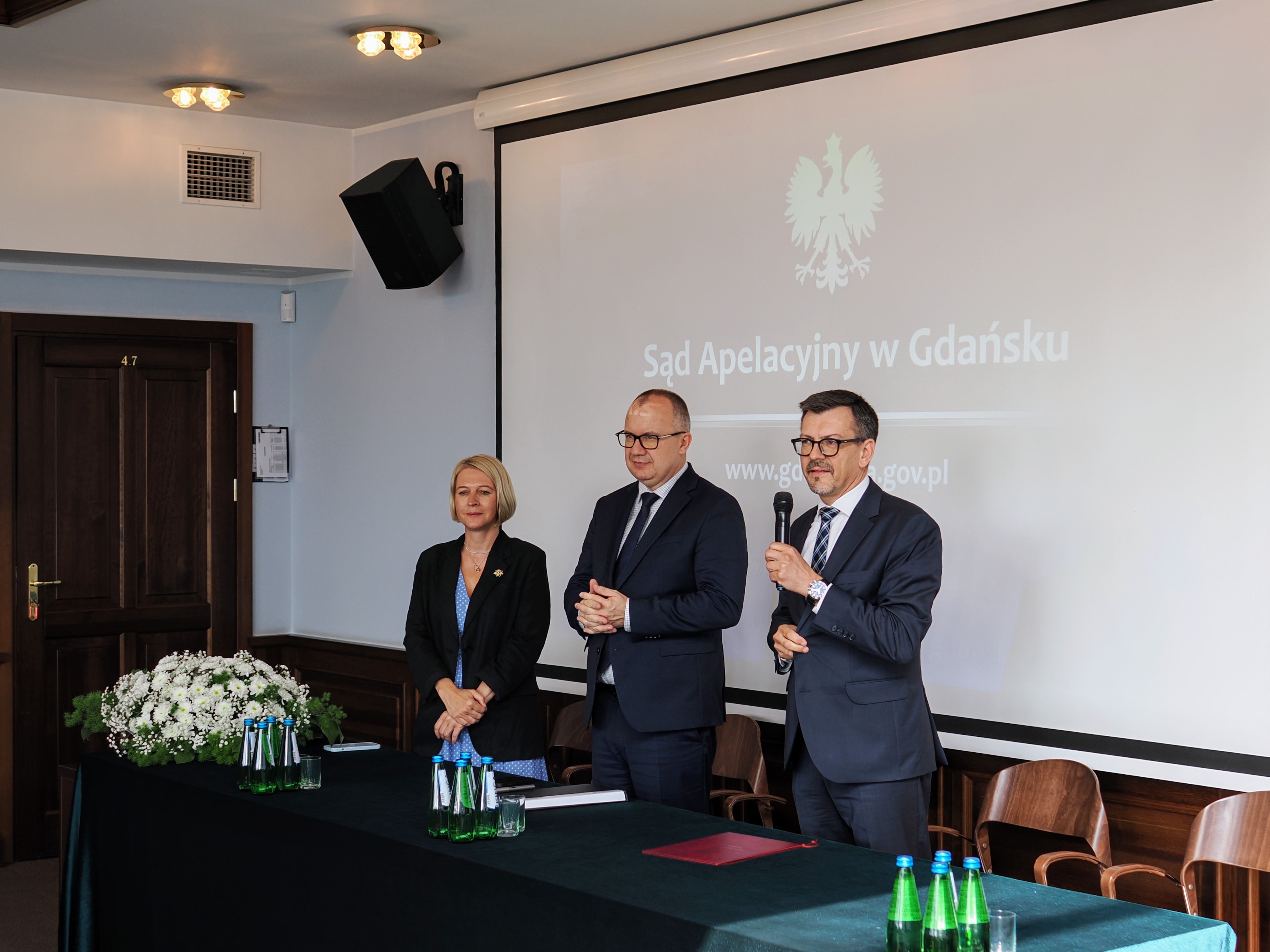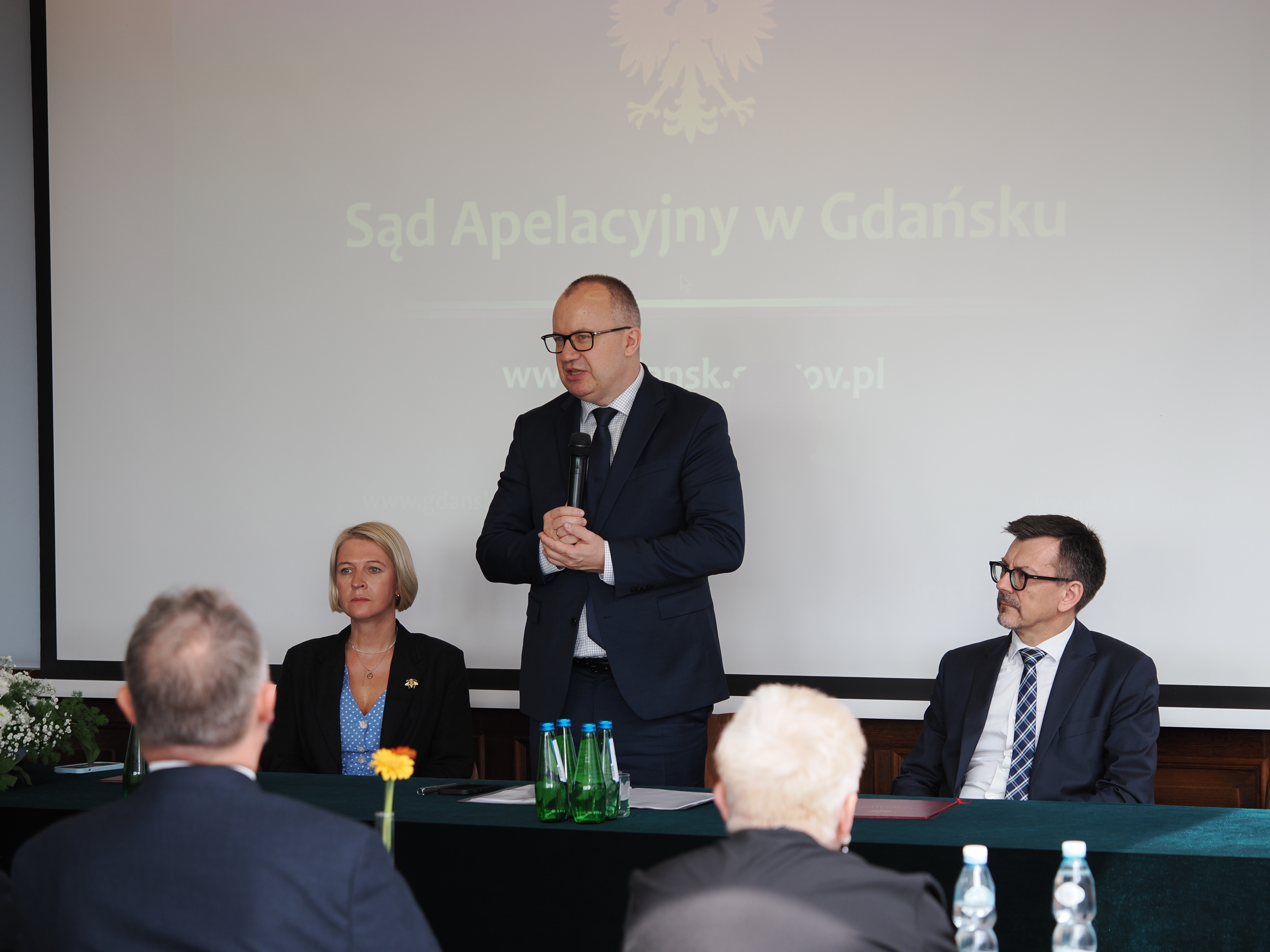 W Sądzie Apelacyjnym w Gdańsku odbyło się uroczyste Zgromadzenie Ogólne Sędziów, podczas którego Minister Sprawiedliwości Adam Bodnar oficjalnie przedstawił nowego Prezesa Sądu Apelacyjnego, sędziego Sławomira Steinborna. W uroczystości (9 lipca br.) udział wzięła Dyrektorka Departamentu Kadr i Organizacji Sądów Powszechnych i Wojskowych Marta Kożuchowska-Warywoda.