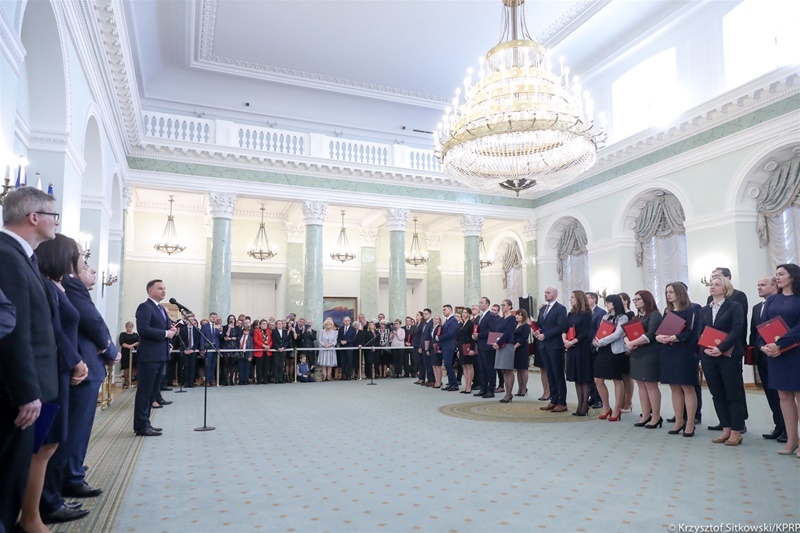 Prezydent Rzeczypospolitej Polskiej Andrzej Duda wręczył w czwartek (8 listopada) akty powołania do pełnienia urzędu na stanowisku sędziego. Nowo powołani sędziowie złożyli wobec Prezydenta RP ślubowanie. W uroczystości wziął udział Podsekretarz Stanu w Ministerstwie Sprawiedliwości Łukasz Piebiak ze współpracownikami.