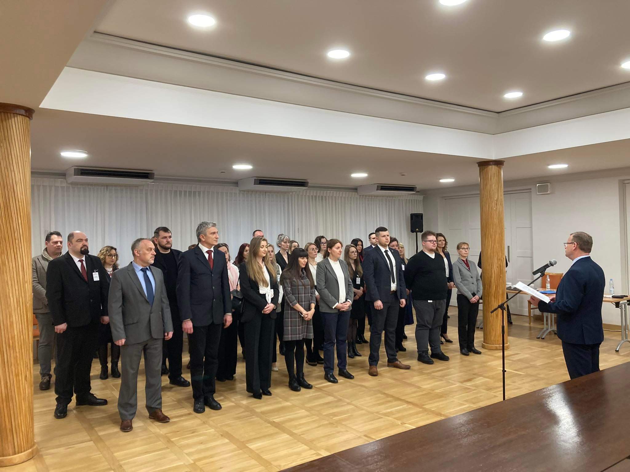 Wiceminister Katarzyna Frydrych pogratulowała nowo zaprzysiężonym tłumaczom, przypominając, jak odpowiedzialną i cenną pracę wykonują na rzecz wymiaru sprawiedliwości. Zwróciła uwagę nie tylko na ich doskonałą znajomość języka obcego, ale także umiejętność interpretacji prawa oraz wiedzę na temat systemów prawnych różnych państw.