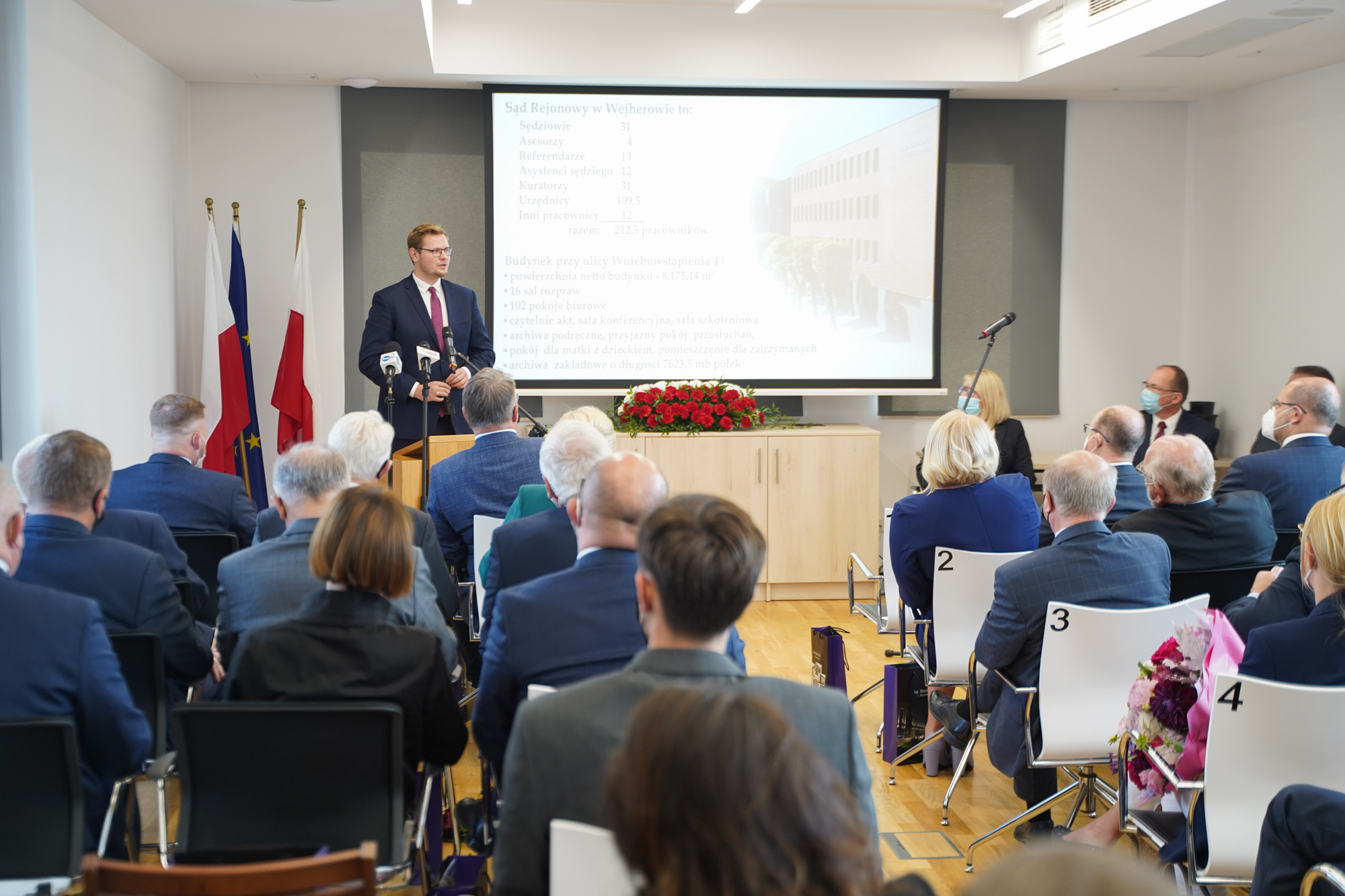 Wiceminister Michał Woś na uroczystym otwarciu nowego gmachu Sądu Rejonowego w Wejherowie