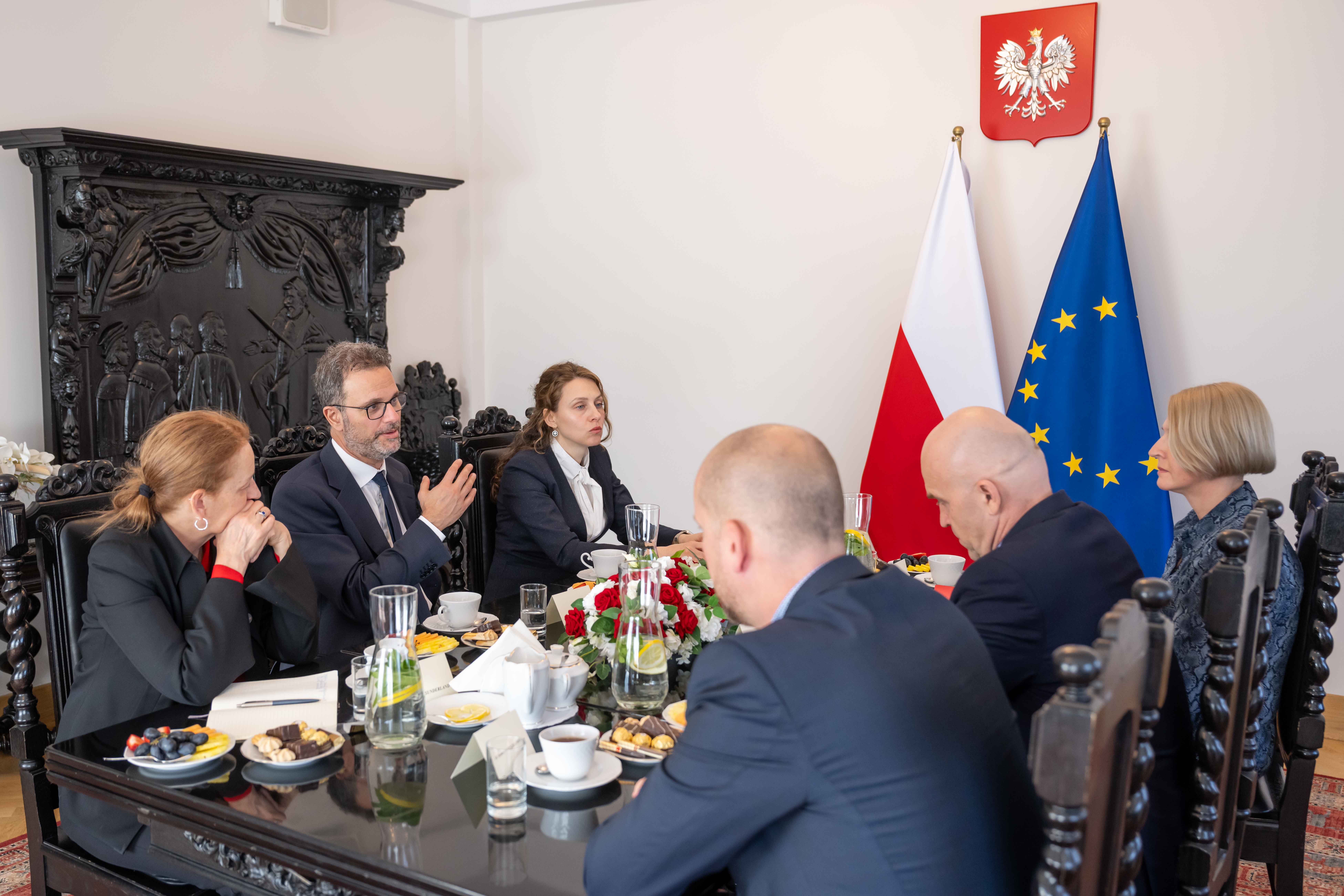 Podczas spotkania wiceministra Mazura z Federico Borello, pełniącym obowiązki dyrektora wykonawczego i dyrektora ds. programów w Human Rights Watch uczestnicy dyskutowali m.in. o roli jaką Polska pełni w ramach prezydencji w Radzie UE, podkreślając zobowiązanie do stania na straży praworządności w Unii Europejskiej i wspierania demokratycznych standardów w państwach członkowskich.
