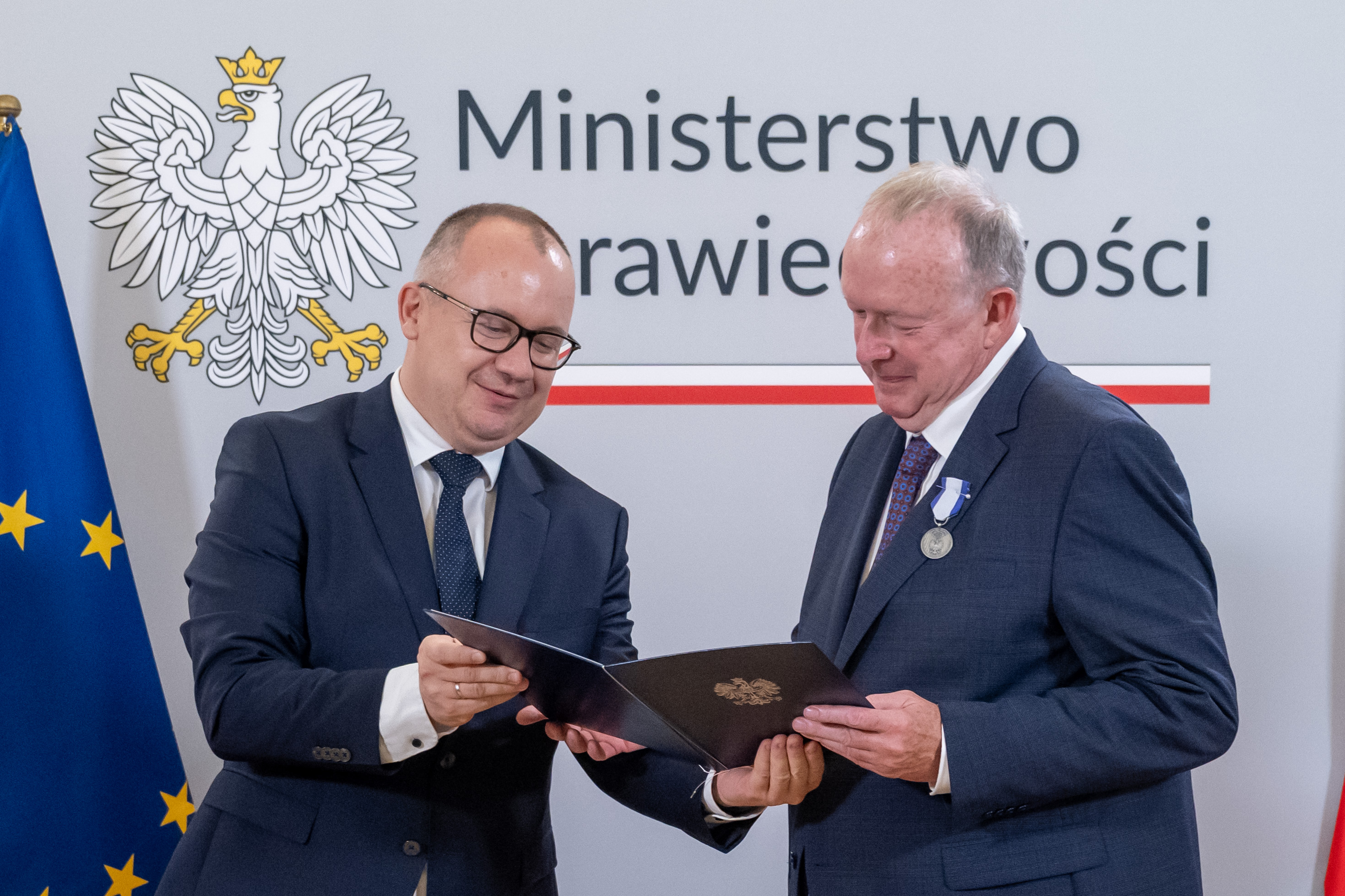 Minister Sprawiedliwości Adam Bodnar wręczył Prezesowi Wolters Kluwer Polska Włodzimierzowi Albinowi Odznakę Honorową za Zasługi dla Wymiaru Sprawiedliwości.
