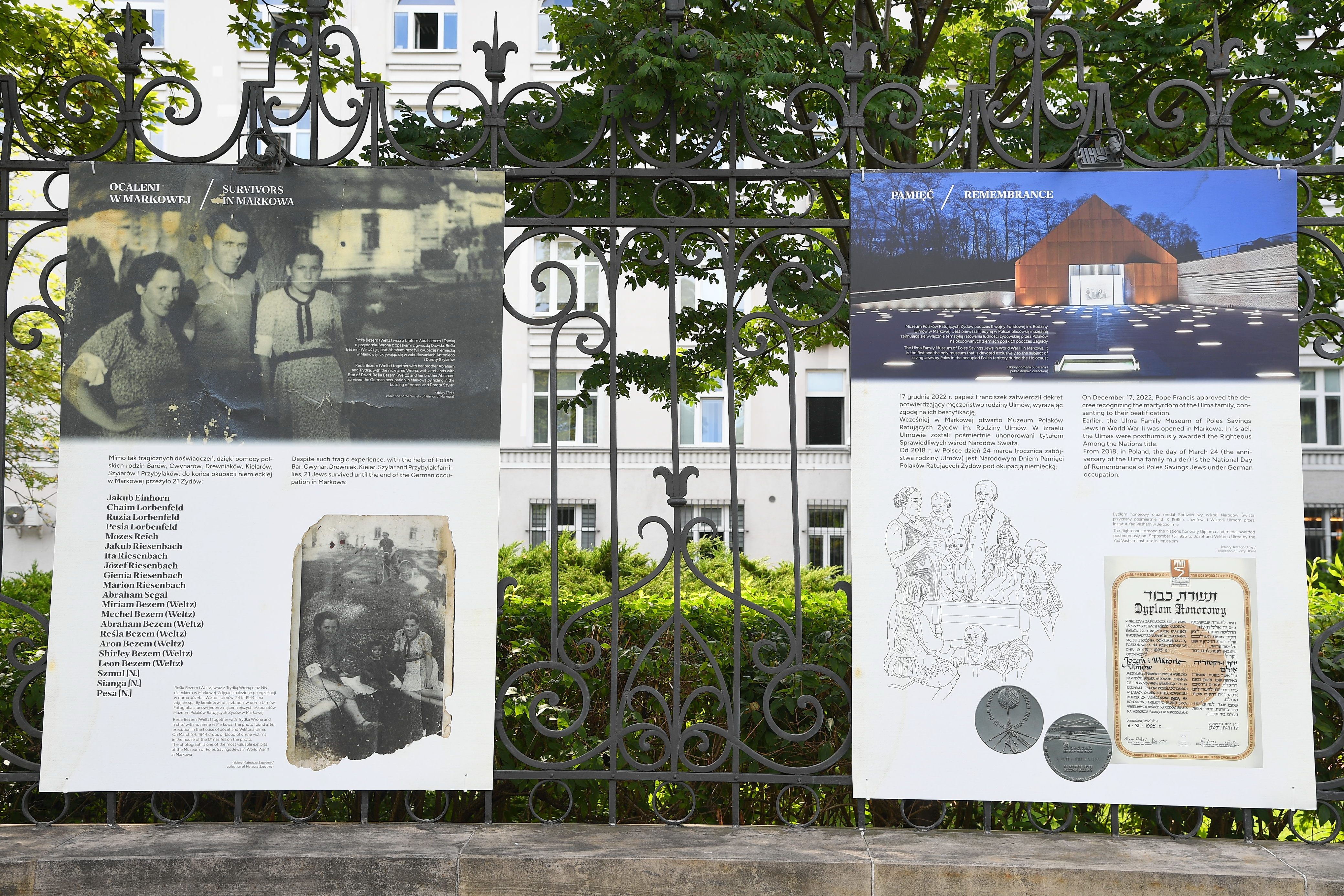 Z okazji zbliżającej się beatyfikacji rodziny Ulmów zamordowanej przez Niemców za ukrywanie Żydów, w hołdzie dla bohaterów z Markowej, prezentujemy poruszającą wystawę „Śmierć za człowieczeństwo. Rodzina Ulmów”. Od 1 września ekspozycję można obejrzeć w galerii plenerowej, przed budynkiem Ministerstwa Sprawiedliwości, przy Al. Ujazdowskich 11 w Warszawie.