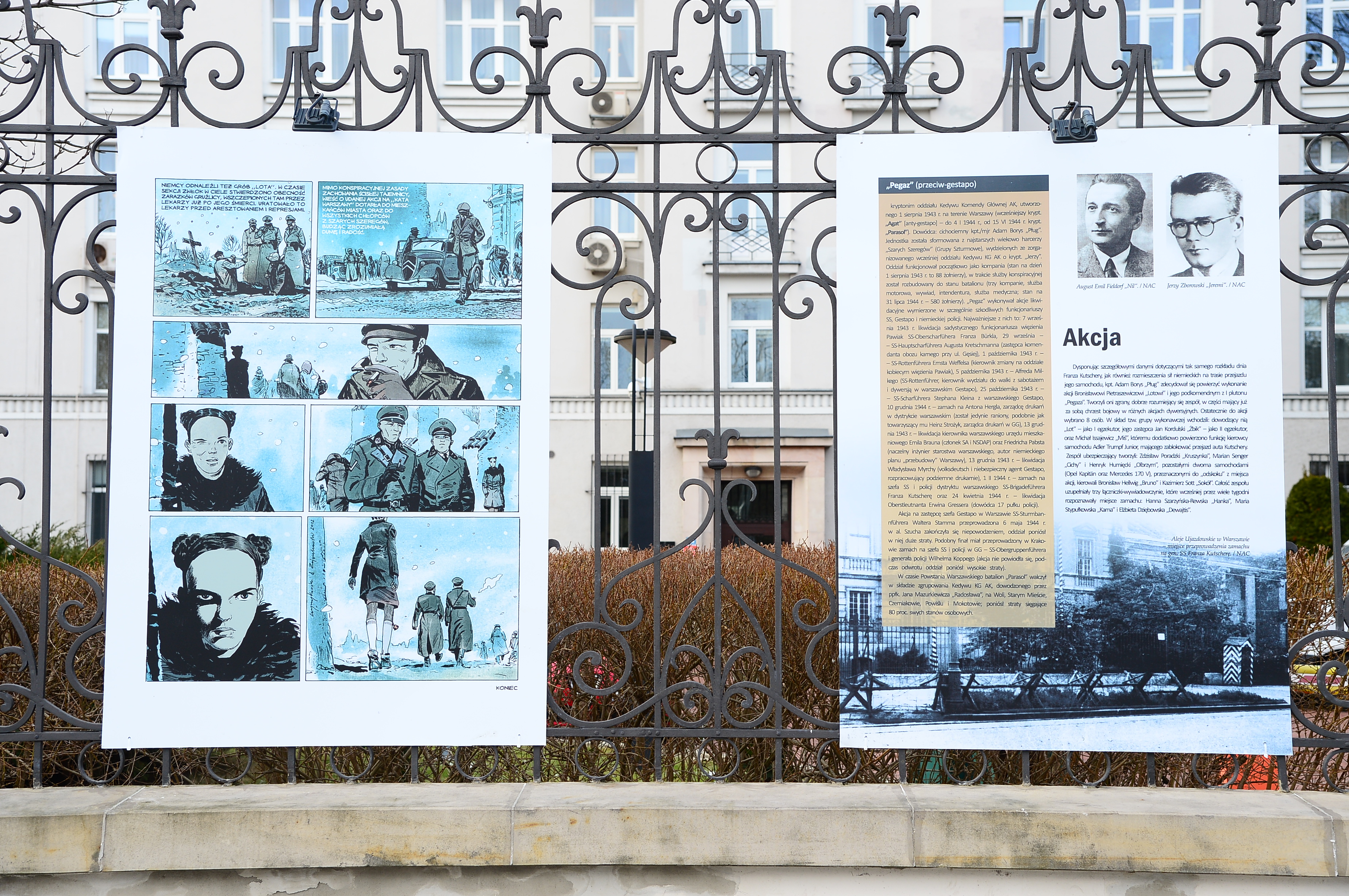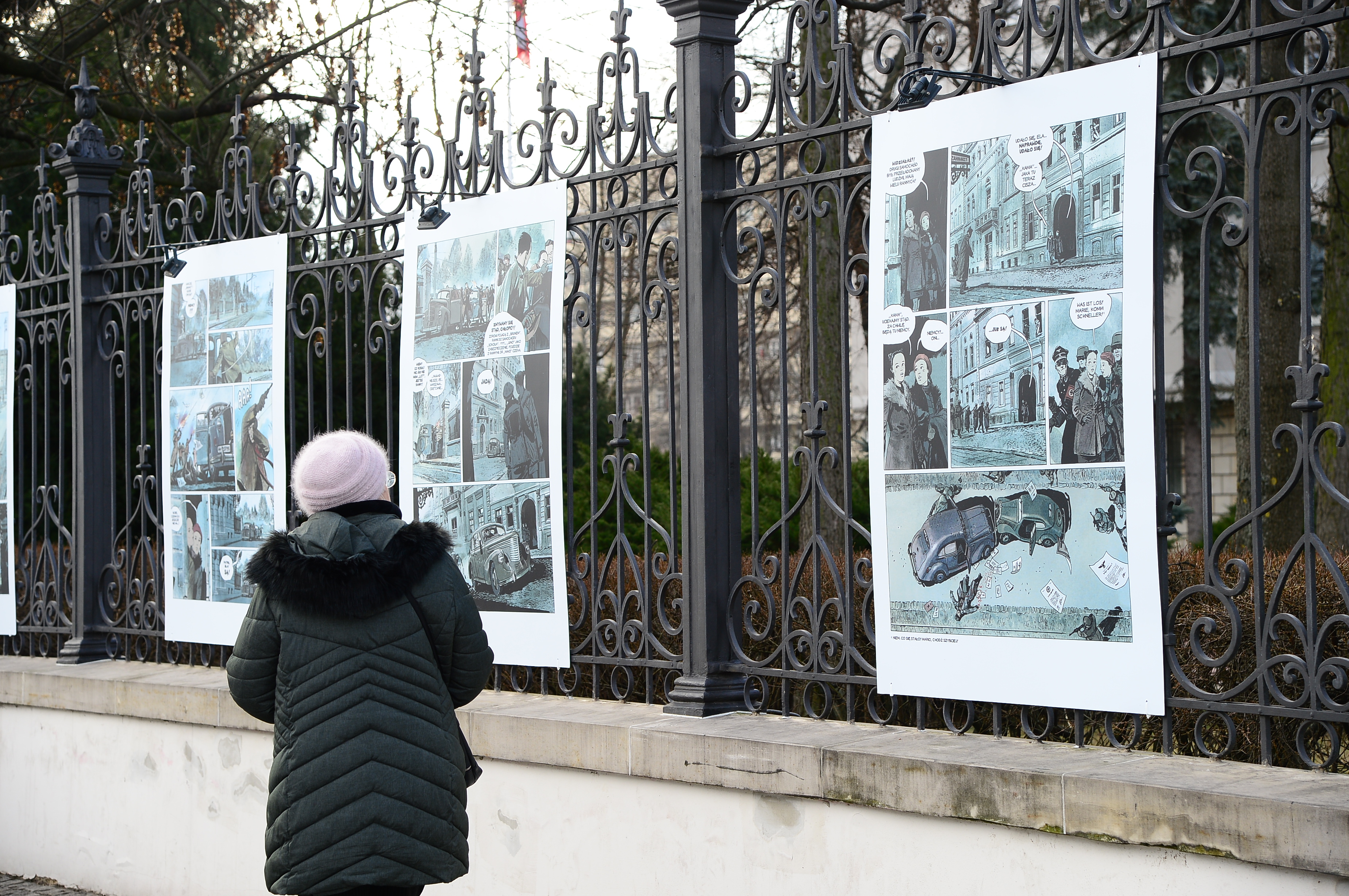 Obrazy z komiksu, które tworzą wystawę, można oglądać w galerii plenerowej Ministerstwa Sprawiedliwości przy Alejach Ujazdowskich 11. Zachęcamy do obejrzenia ekspozycji.