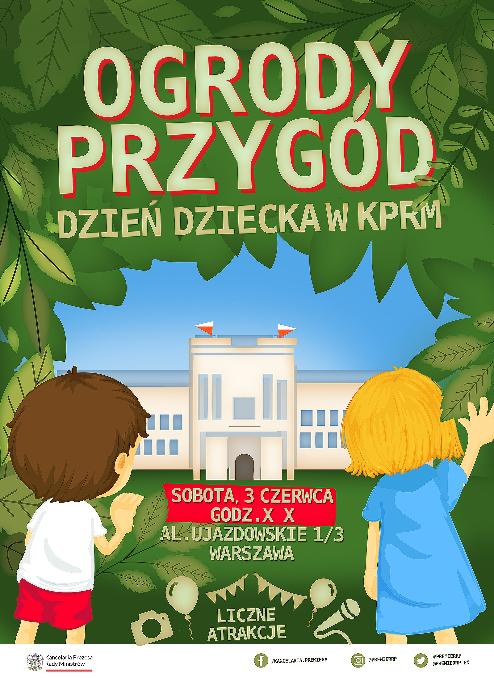 Zapraszamy wszystkich chętnych do wspólnej zabawy w sobotę, 3 czerwca do ogrodów Kancelarii Premiera przy Al. Ujazdowskich 1/3. Będziemy na Was czekać od godz. 10:00 do 16:00.