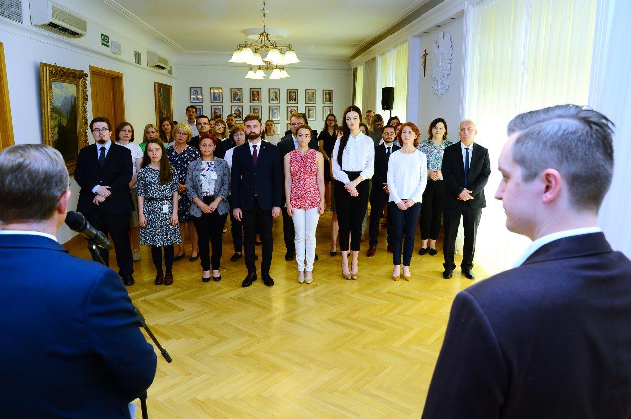 Ślubowanie, złożone zgodnie z ustawą o zawodzie tłumacza przysięgłego, przyjął wiceminister sprawiedliwości Sebastian Kaleta. – Muszą posiadać nie tylko doskonałą znajomość języka obcego, ale również umiejętność interpretacji przepisów prawa i poruszania się między systemami prawnymi różnych państw – ocenił wiceminister Sebastian Kaleta podkreślając rolę tłumaczy w wymiarze sprawiedliwości.