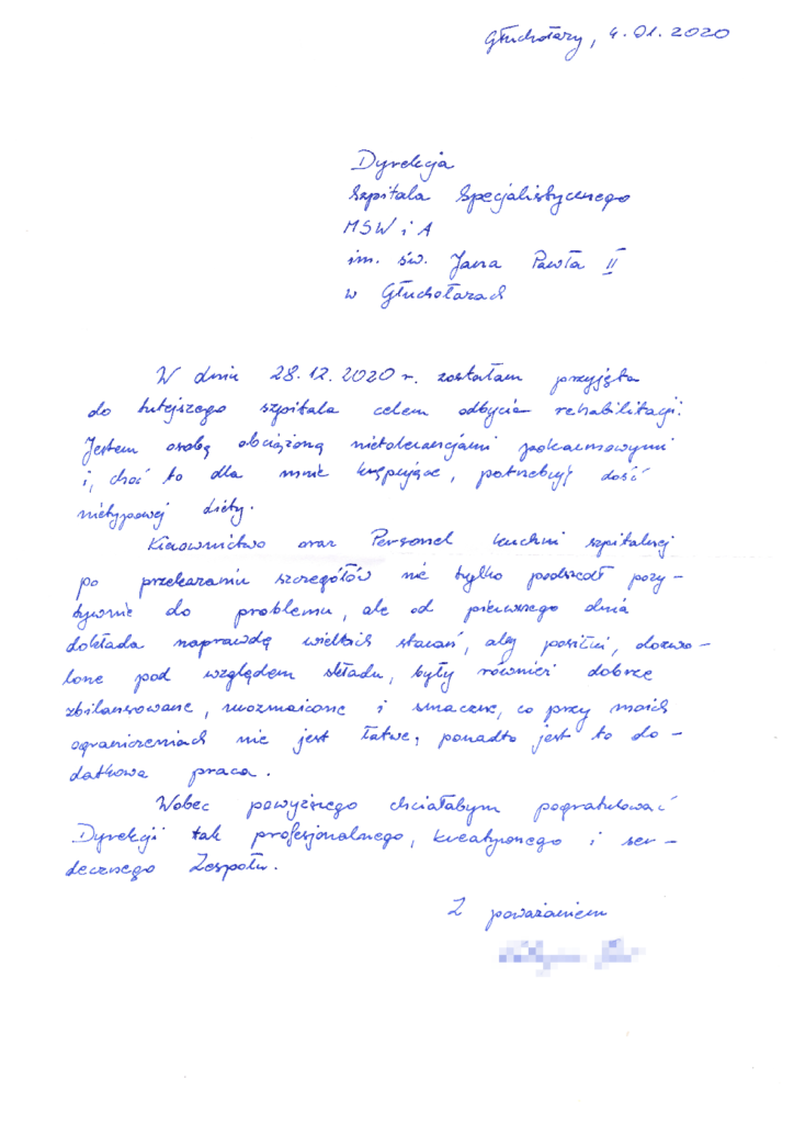 W dniu 4 stycznia otrzymaliśmy pismo z podziękowaniami od Pacjenta.