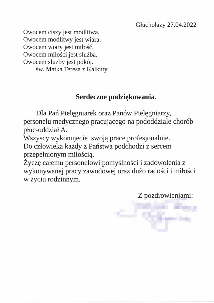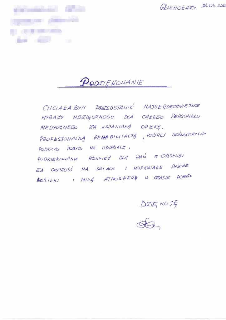 W kwietniu bieżącego roku otrzymaliśmy pisma z podziękowaniami od Pacjentów.