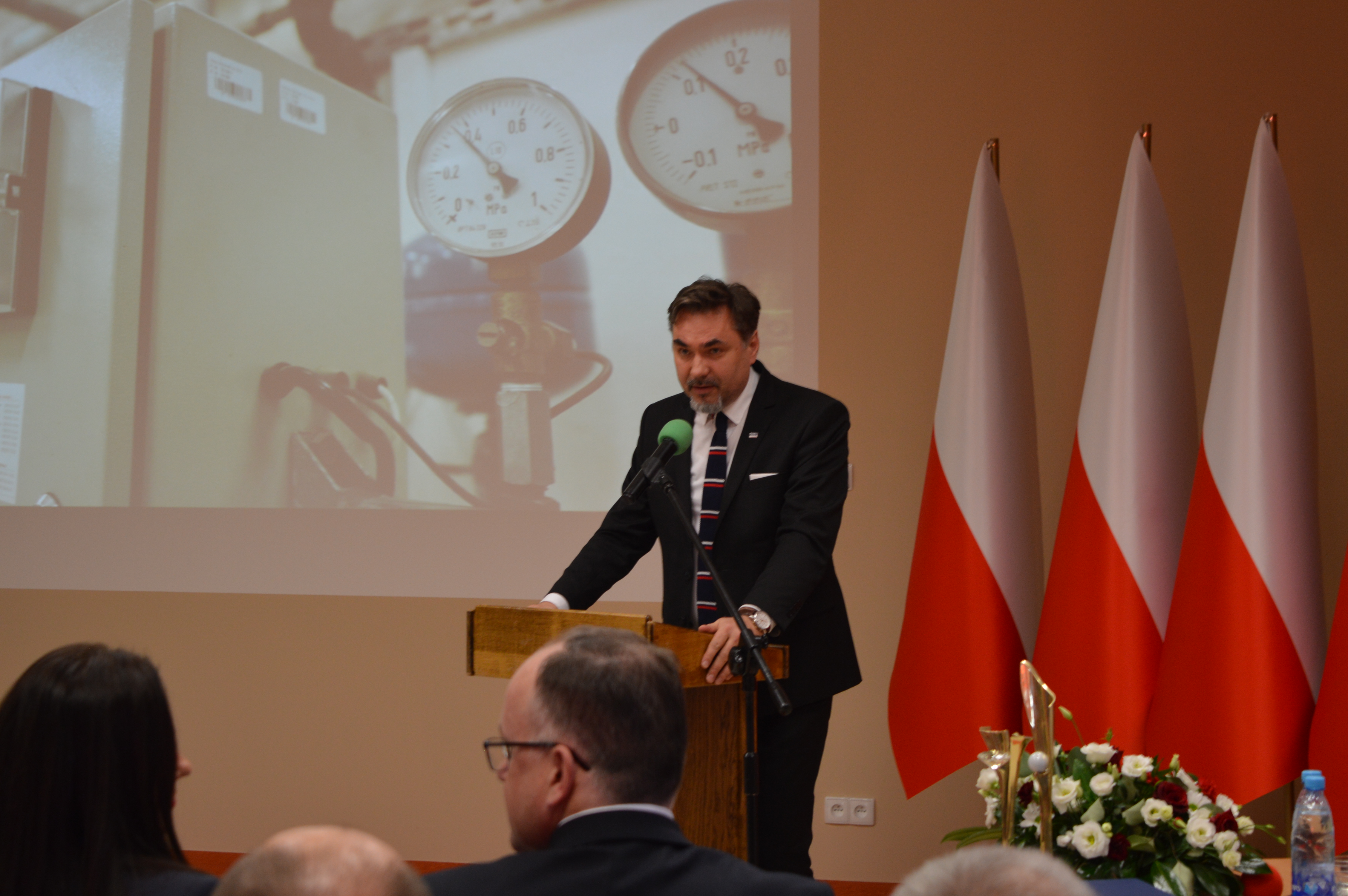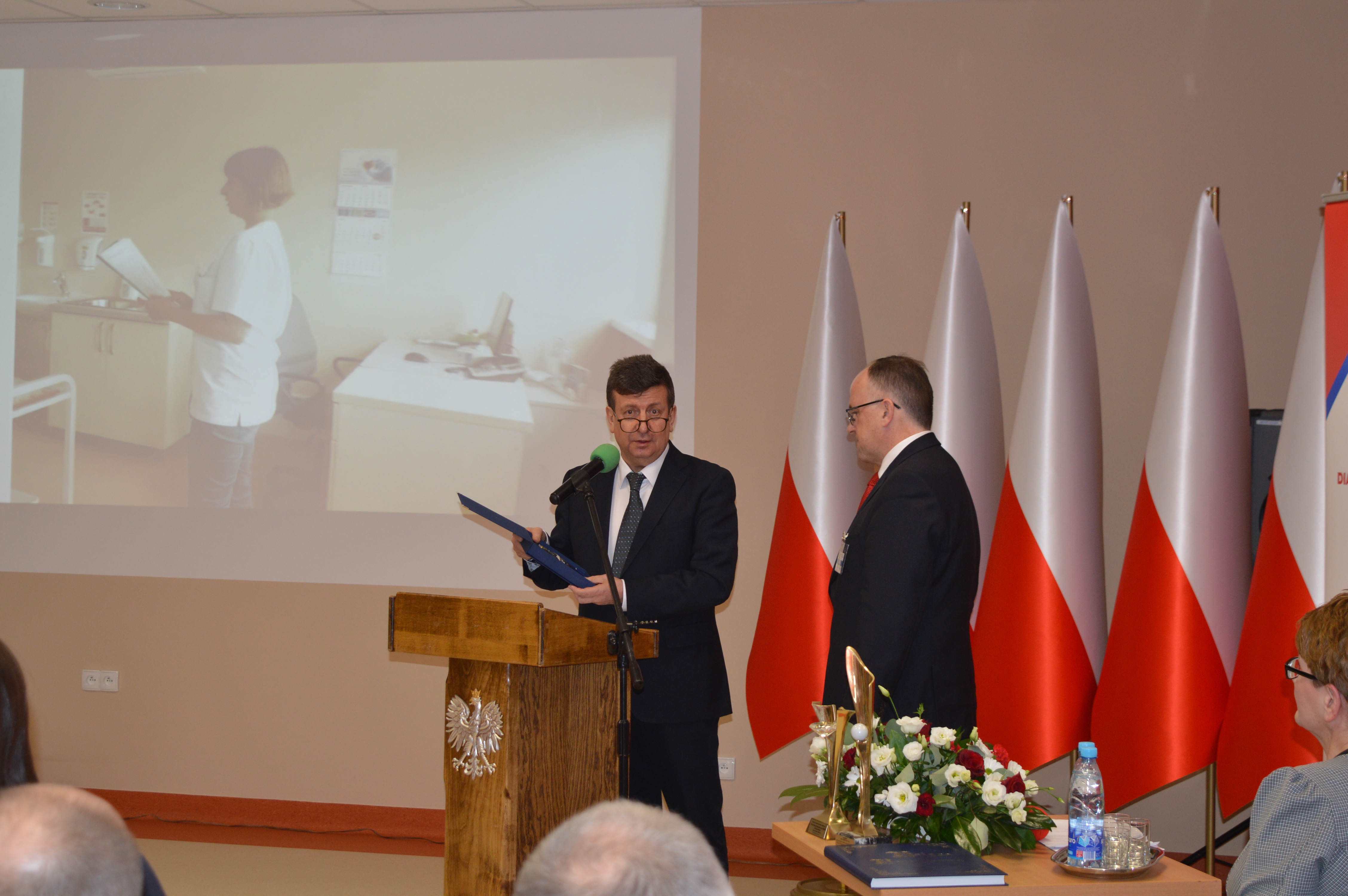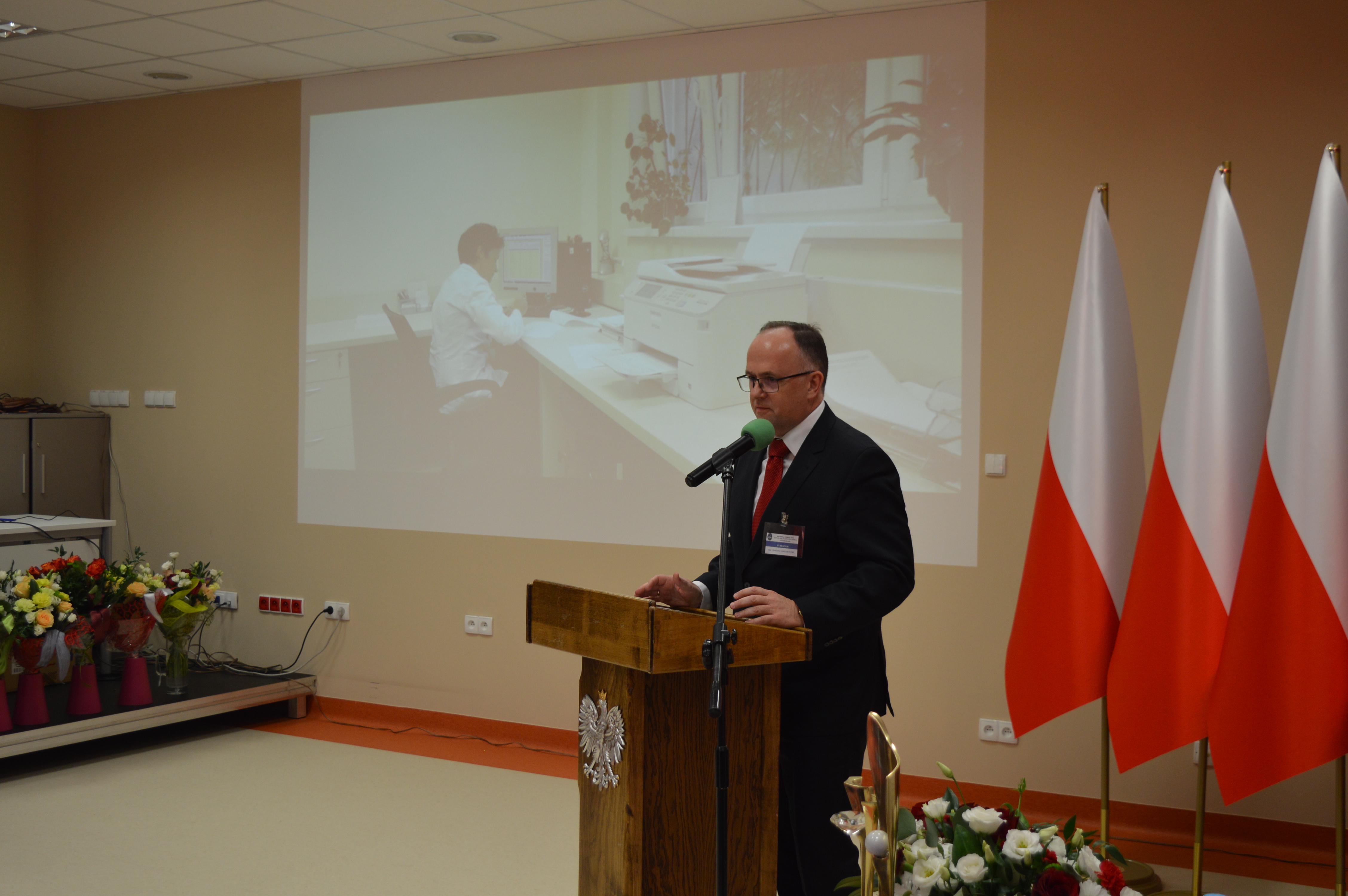 Dyrektor Departamentu Zdrowia w MSWiA Pan dr n. med. Waldemar Wierzba, który odczytał list od Ministra Pana Joachima Brudzińskiego, w którym podziękował za zaproszenie na uroczystość. Pan Minister docenił proces zmian w Szpitalu dzięki dotacjom z ministerstwa na zakup nowoczesnego sprzętu i aparatury, które podnoszą jakość leczenia oraz poprawiają komfort pacjentów leczonych w naszej Placówce. Zwrócił również uwagę, że rozwój szpitala jest możliwy dzięki doświadczeniu i profesjonalizmowi kadry medycznej i administracyjnej, która każdego dnia buduje zaufanie pacjentów do szpitala.