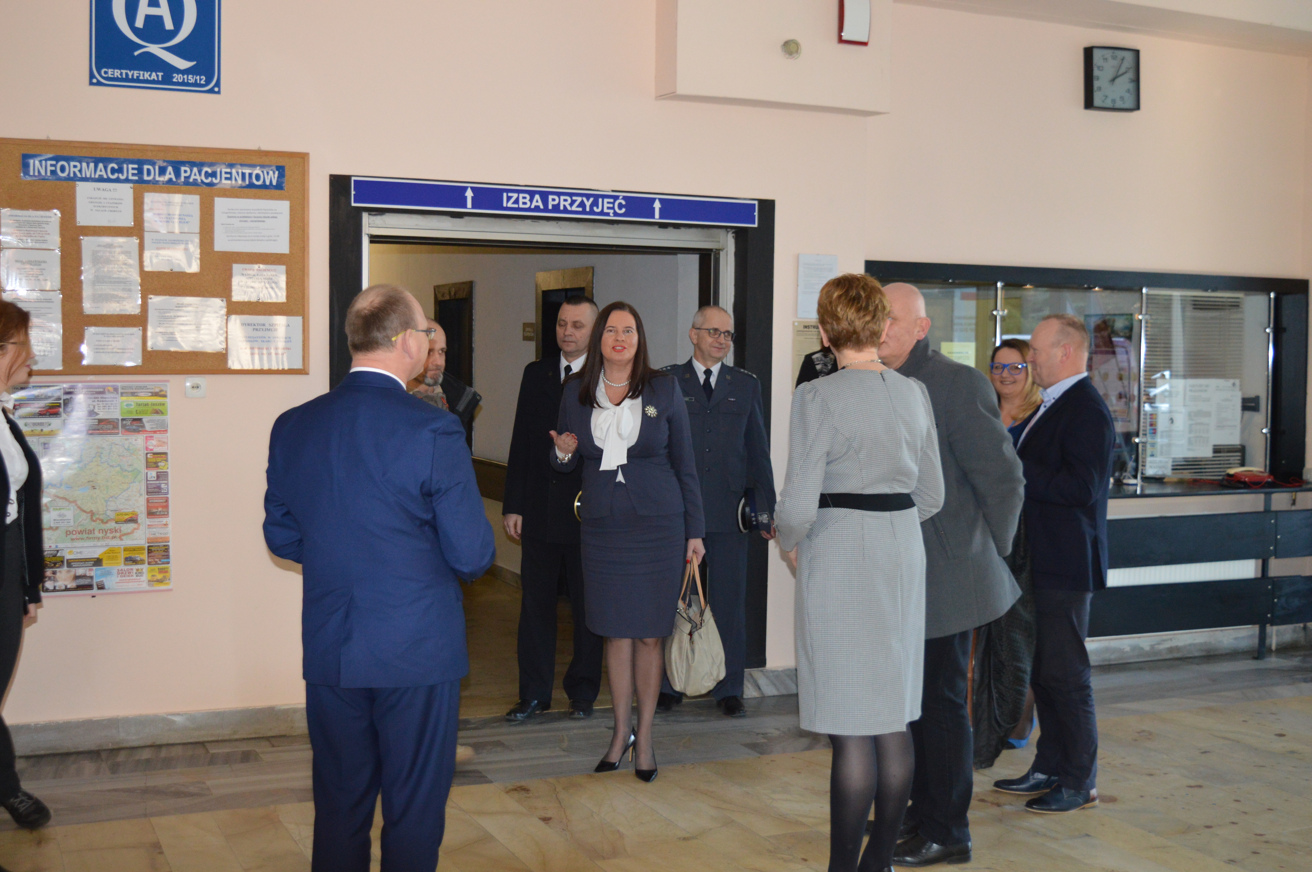 Dyrektor Pan mgr Mariusz Grochowski w prezentacji przedstawił historię placówki oraz proces zmian jakie przechodził szpital na przestrzeni lat, efektywnie wykorzystując dotacje z MSWiA, inwestując w infrastrukturę, w nowoczesny sprzęt i wyposażenie jednostki. Tylko w ostatnich kilku latach Szpital wydał środki z MSWiA w wysokości ponad 4 200 0000 PLN, głównie na zakup nowoczesnego sprzętu i aparatury medycznej. W dalszej części prezentacji Dyrektor ukazał też osiągnięcia jakie zdobył szpital dzięki współpracy naukowej z Politechniką Opolską w zakresie wykorzystania Wirtualnej Rzeczywistości w rehabilitacji pulmonologicznej i kardiologicznej pacjentów szpitala pod kierunkiem Pana prof. Jana Szczegielniaka. Na zakończenie prezentacji Dyrektor Placówki nakreślił plany inwestycyjne, które mają zdynamizować działalność szpitala oraz znacząco podnieść jakość udzielanych świadczeń, a są nimi m.in. Inwestycje w infrastrukturę, które mają się rozpocząć w najbliższym czasie : Przebudowa Oddziału Chorób Płuc i Gruźlicy. Planowany koszt projektu: 8 747 797,88 PLN, środki pochodzą z Programu Operacyjnego Infrastruktura i Środowisko 2014 – 2020. Działanie 9.2. Infrastruktura ponadregionalnych podmiotów leczniczych. Oś priorytetowa IX: wzmocnienie strategicznej infrastruktury ochrony zdrowia.