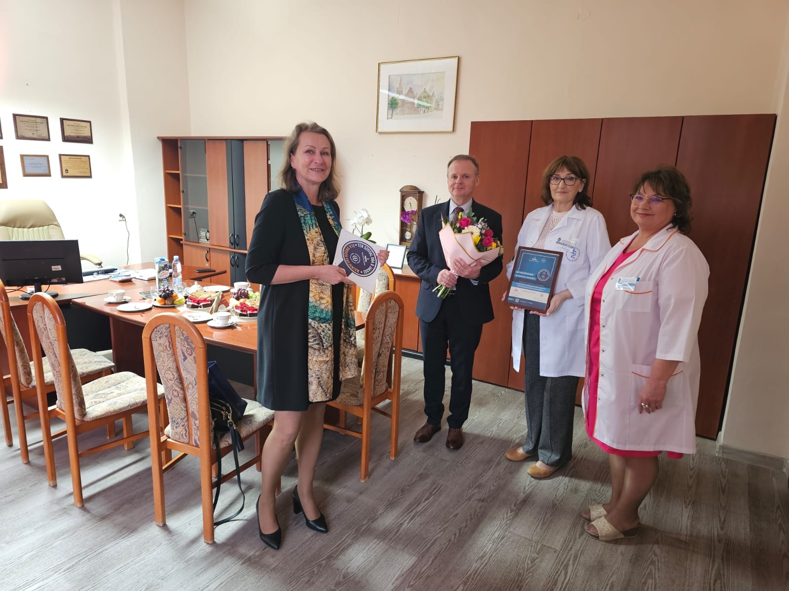W dniu 14.03.2025r. mieliśmy zaszczyt gościć Panią Dyrektor Agnieszkę Pietraszewską-Machetę z Centrum Monitorowania Jakości w Ochronie Zdrowia, która odwiedziła naszą placówkę w celu wręczenia prestiżowego wyróżnienia otrzymanego w projekcie pn. „Wymagaj Jakości”