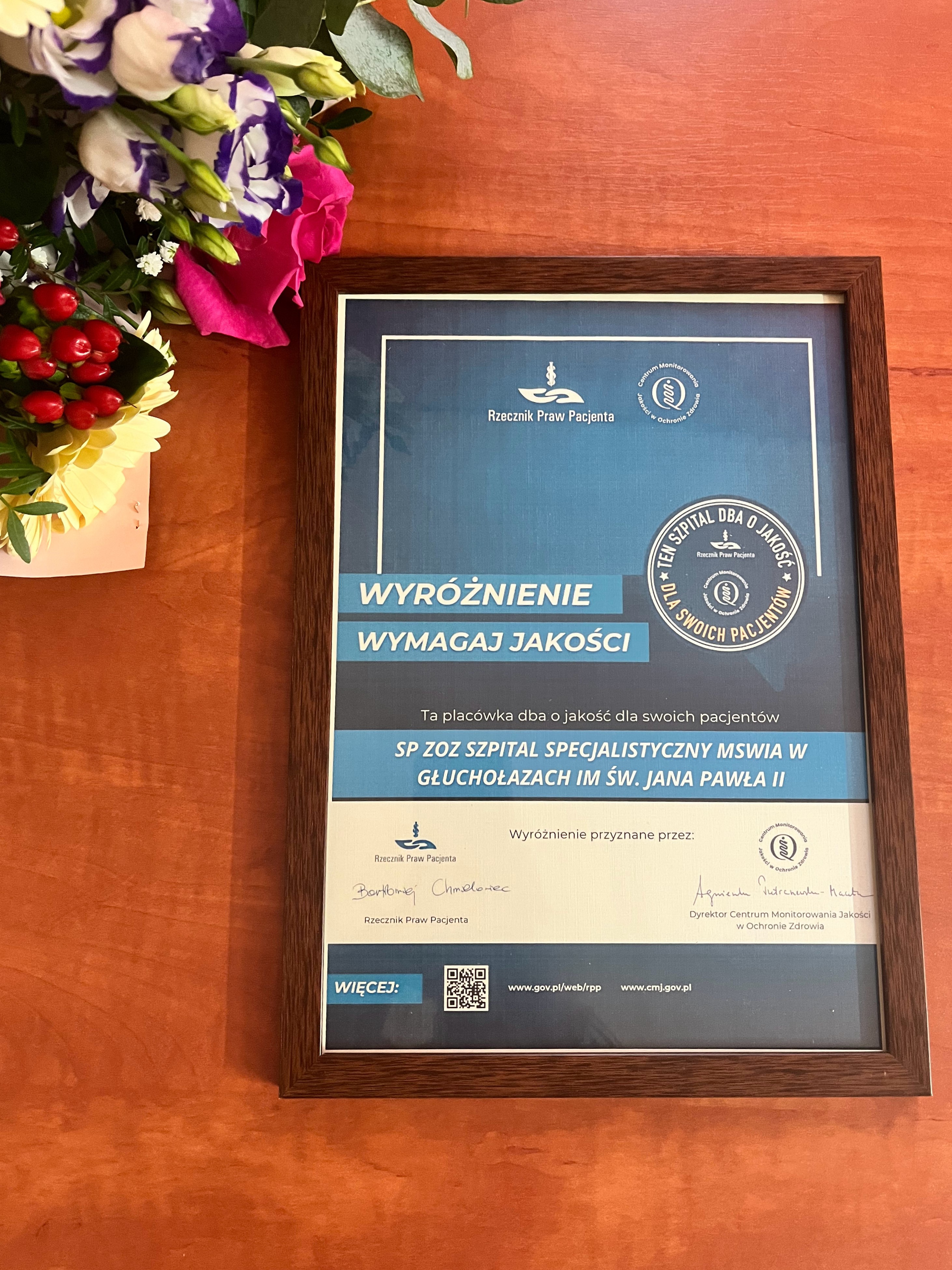 Podczas uroczystości Pani Dyrektor podkreśliła zaangażowanie całego personelu w realizację najwyższych standardów jakości i bezpieczeństwa oraz wyraziła ogromne podziękowania podkreślając, że dzięki codziennemu wysiłkowi, profesjonalizmowi i trosce o pacjenta udało się zdobyć to prestiżowe wyróżnienie.