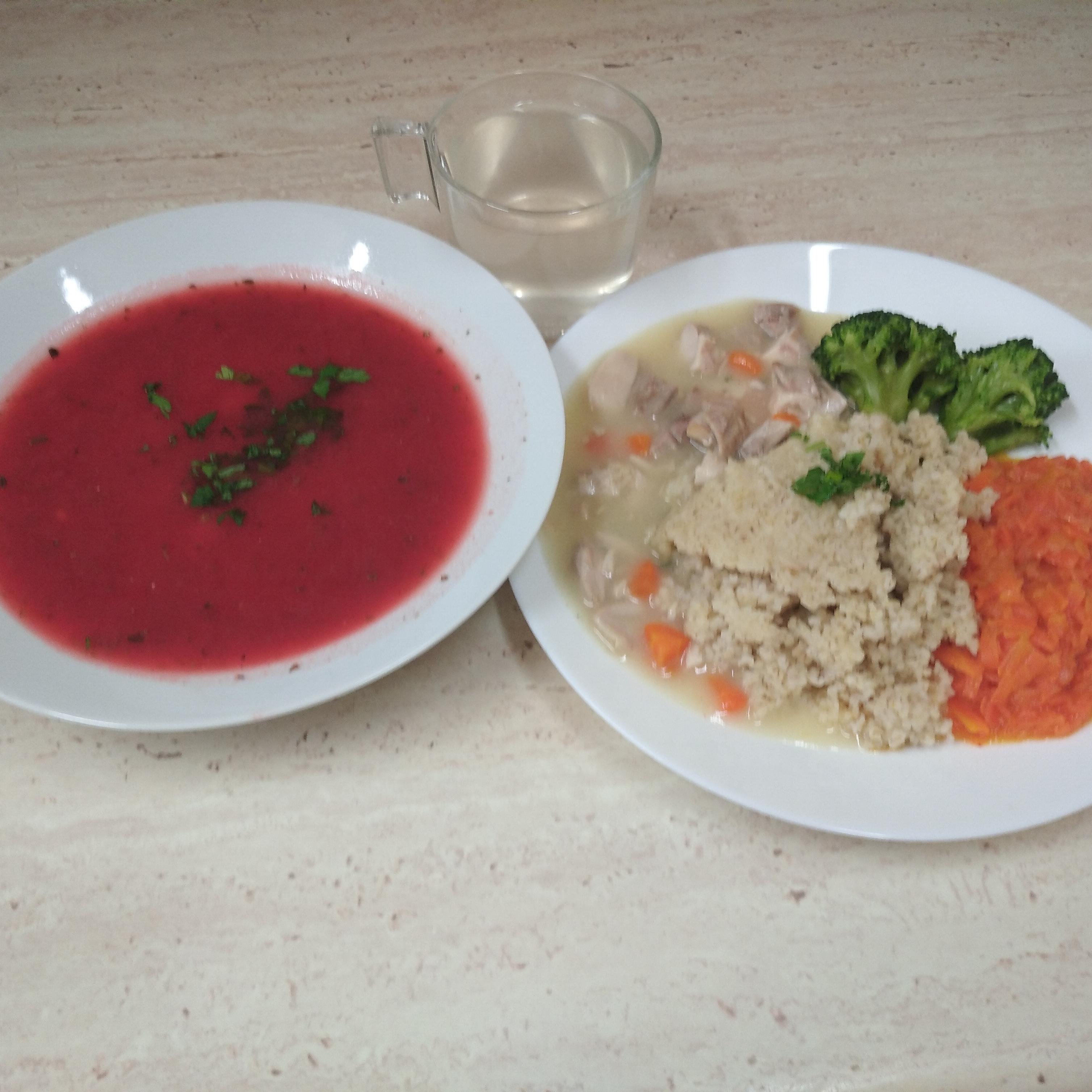 | obiad | rosół z makaronem 400ml(GLU,JAJ), kurczak pieczony 150g, ziemniaki 200g, sałatka z kapusty czerwonej 120g, kompot 200mll | rosół z makaronem 400ml (GLU,JAJ),kurczak gotowany 150g, ziemniaki 200g, buraki 120g, kompot 200ml | rosół z makaronem 400ml(GLU,JAJ) ,kurczak gotowany 150g, ziemniaki 200g, buraki 120g, kompot 200ml | rosół z makaronem 350ml(GLU,JAJ), kurczak gotowany 150g, ziemniaki 200g, sałatka z kapusty czerwonej 100g, buraki 80g, woda 200ml | ||