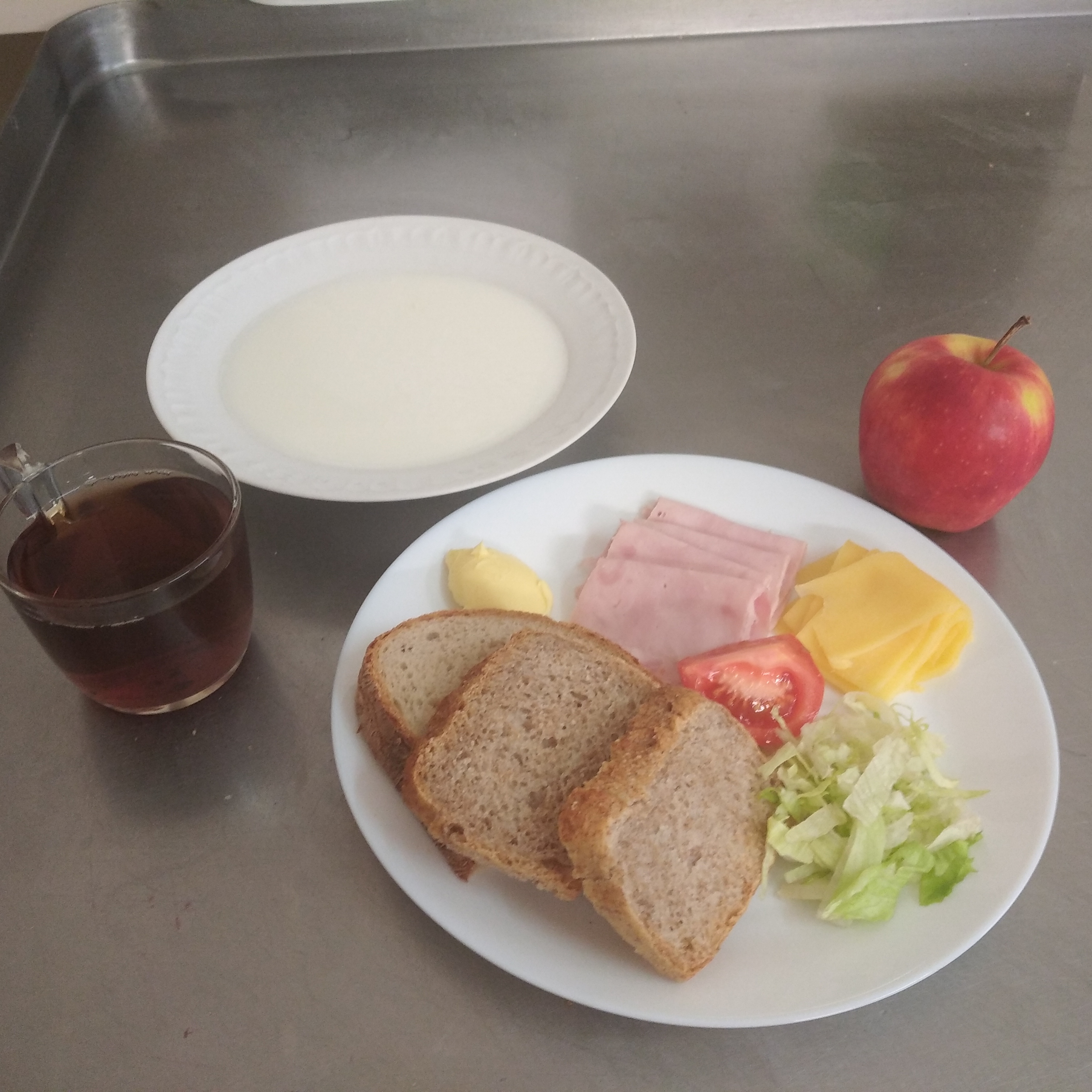 | 9.01.2024 | śniadanie | zupa mleczna z kaszą manną 300ml, chleb/graham 150g, masło 20g, ser żółty 30g, polędwica drobiowa 30g, sałata, ogórek zielony 30g, rzodkiewki 20g, kawa biała 200ml, jabłko | zupa mleczna z kaszą manną 300ml, chleb/bułka 150g, masło 20g, szynkowa z indyka 30g, sałata, polędwica drobiowa 30g,kawa biała , jabłko | zupa mleczna z kaszą manną 300ml, chleb/bułka 150g, masło 20g, sałata,kawa biała 200ml, jajo 50g, pomidor bez skorki 30g, jabłko | chleb graham100g, masło 10g, ser żółty 30g, polędwica drobiowa 30g, sałata, ogórek 30g, rzodkiewki 20g, jogurt naturalny 150ml, kawa biała 200ml, jabłko | |||||