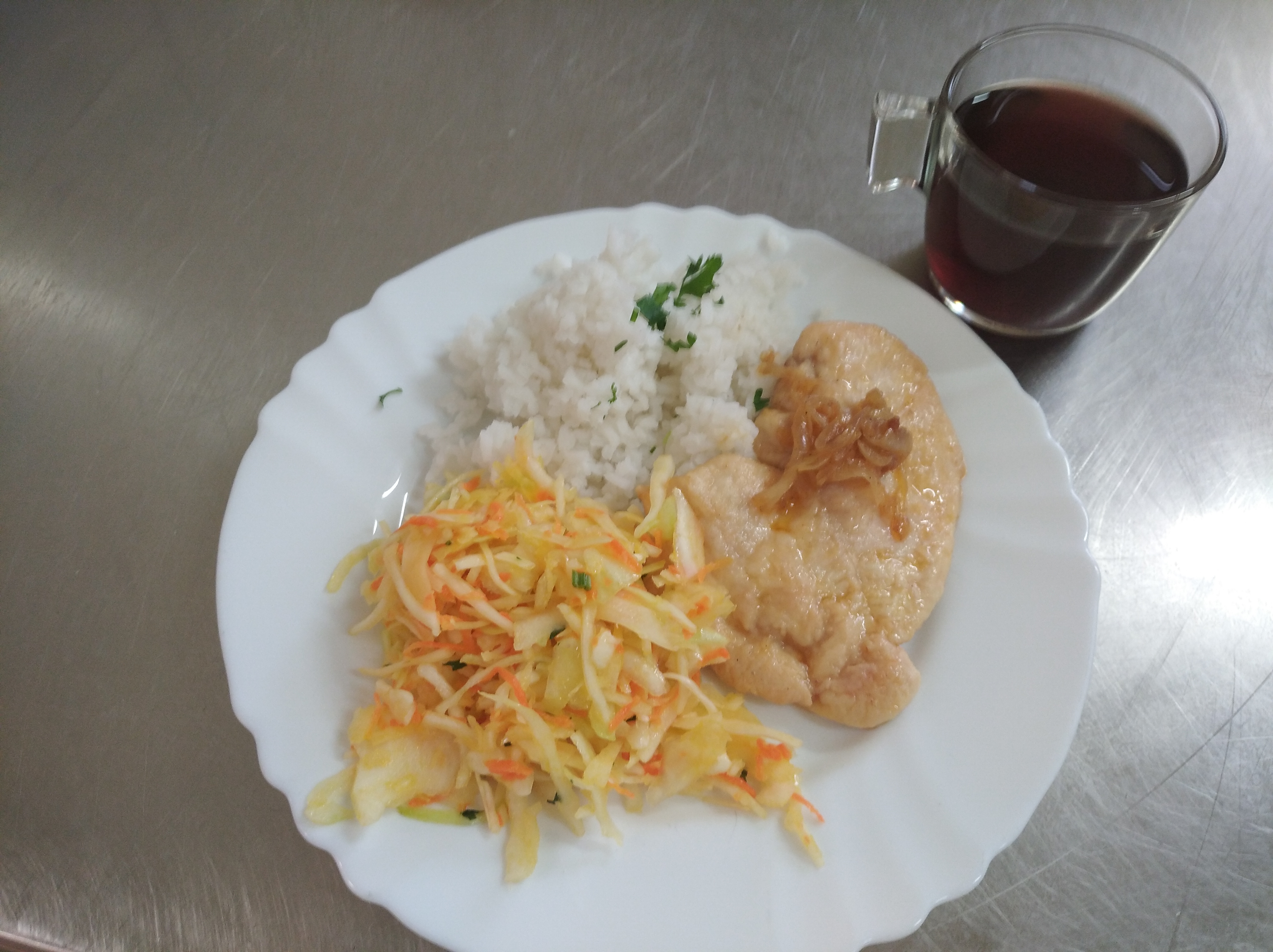 | obiad | zupa szpinakowa 400ml smażony filet z kurczaka 110g z ryżem 200g surówka z białej kapusty 120g, kompot 200ml | zupa szpinakowa 400ml filet z kurczaka gotowany 110g z ryżem 200g marchewka gotowana 120g, kompot 200ml | zupa szpinakowa 400ml filet z kurczaka gotowany 110g z ryżem 200g marchewka gotowana 120g, kompot 200ml | zupa szpinakowa 350ml filet z kurczaka gotowany 110g z ryżem 200g surówka z marchewki 80g kapusta biała 100g, kompot 200ml | ||||||