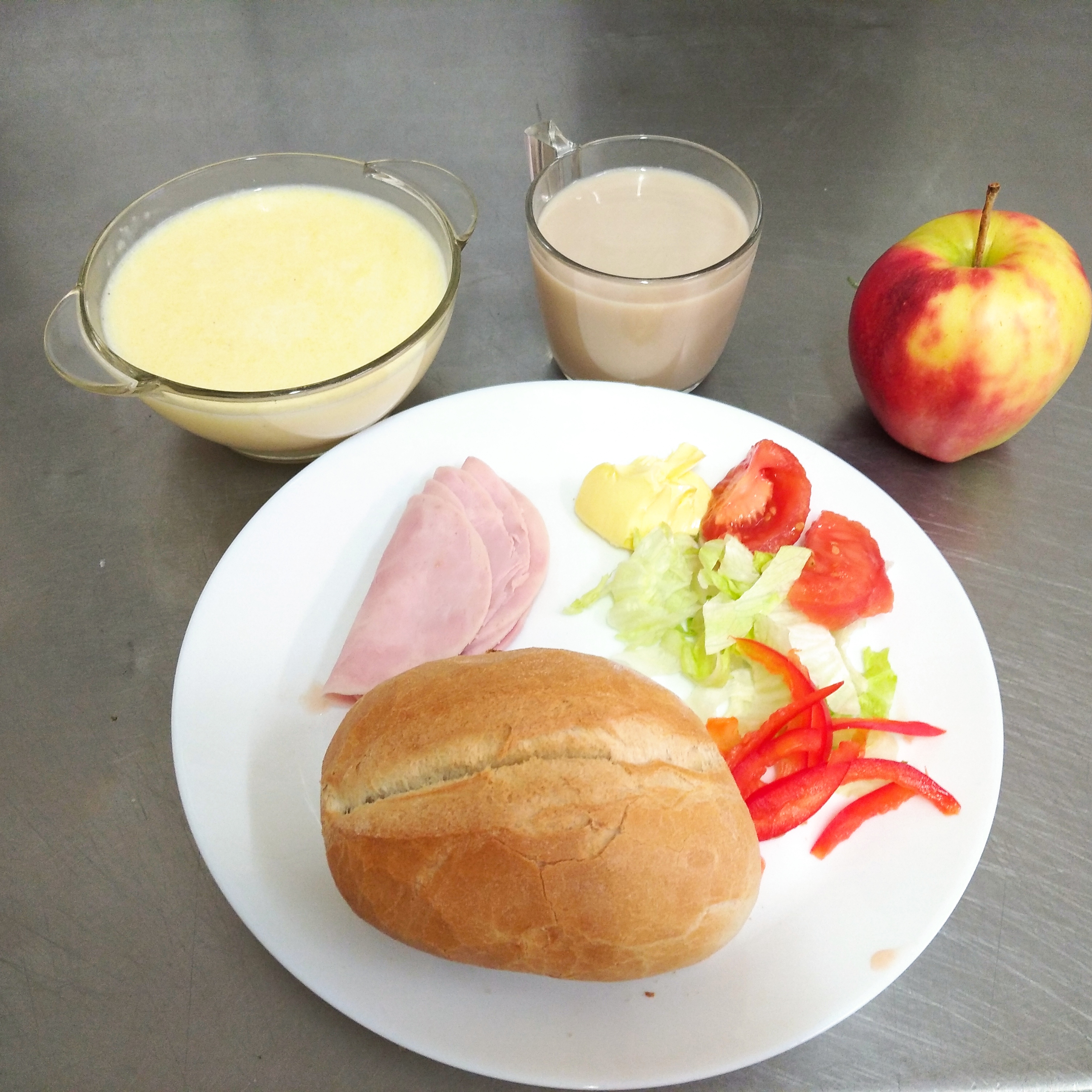 | 10.01.2024 | śniadanie | zupa mleczna z kaszą manną 300ml, chleb/graham150g, masło 20g, pasztet 30g, sałata,ogórek kiszony 60g , szynkowa z indyka 30g, gruszka , kawa biała 200ml | zupa mleczna z kaszą manną 300ml, chleb/bułka 150g, masło 20g, szynkowa z indyka 60g, sałata, pomidor bez skórki, banan, kawa biała 200ml | zupa mleczna z kaszą manną 300ml, chleb/bułka 150g, masło 20g, sałata, pomidor bez skórki, banan, omlet, kawa biała 200ml | chleb graham100g, masło 10g, szynkowa z indyka 60g, sałata, ogórek zielony 30g, papryka 30g, jogurt naturalny 150ml, gruszka , kawa biała 200ml | |||||