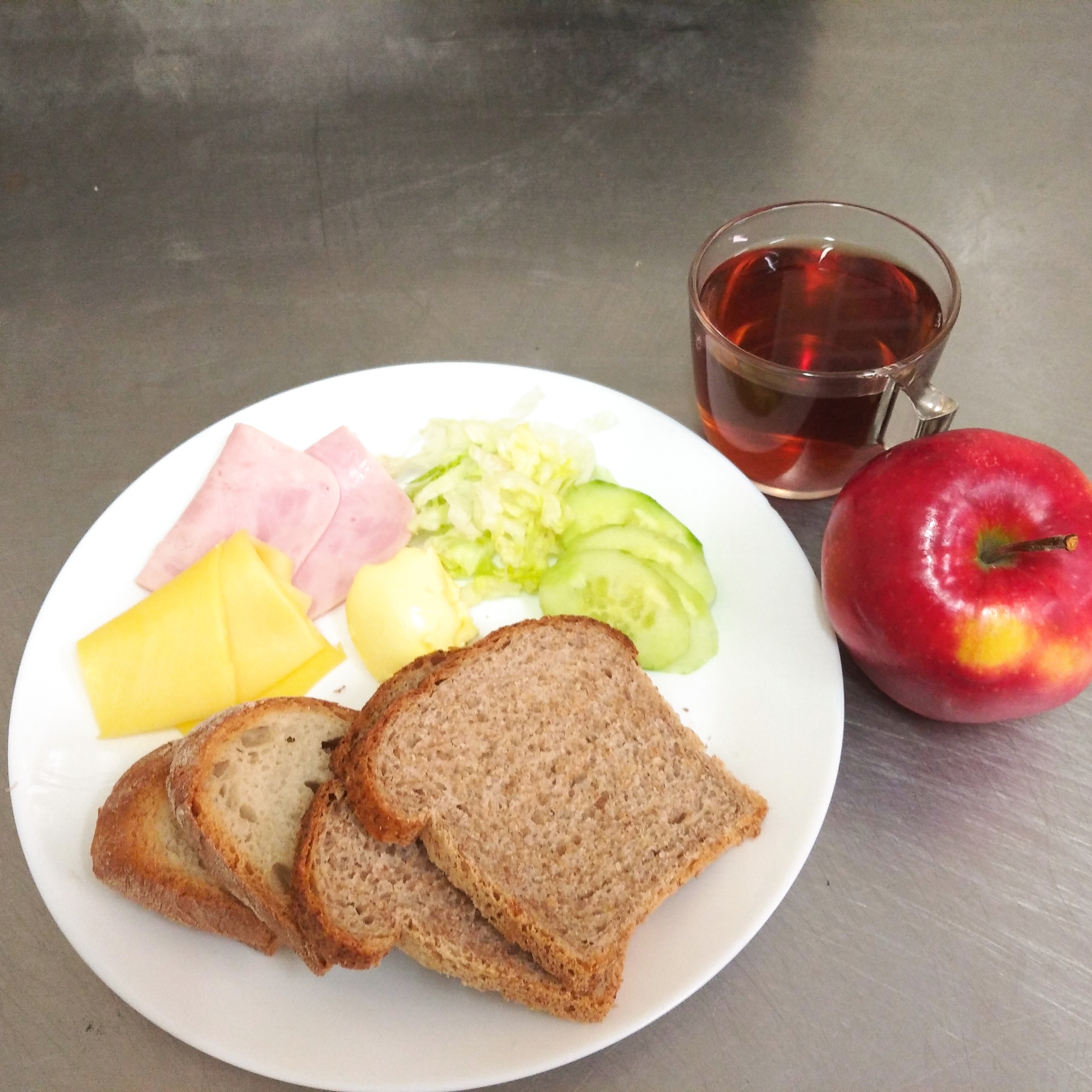 | kolacja | chleb150g, masło 20g, szynkowa z indyka 30g, jajo 25g, sałata, rzodkiewki 20g, herbata 200ml | chleb150g, masło 20g, ser biały z pietruszką 60g, papryka 30g, sałata, herbata 200ml | chleb150g, masło 20g, ser biały z pietruszką 60g, papryka 30g, sałata, herbata 200ml | chleb 100g, masło 10g, herbata 200m, ser biały 30g, szynkowa z indyka 30g, sałata, rzodkiewki 20g | ||||||