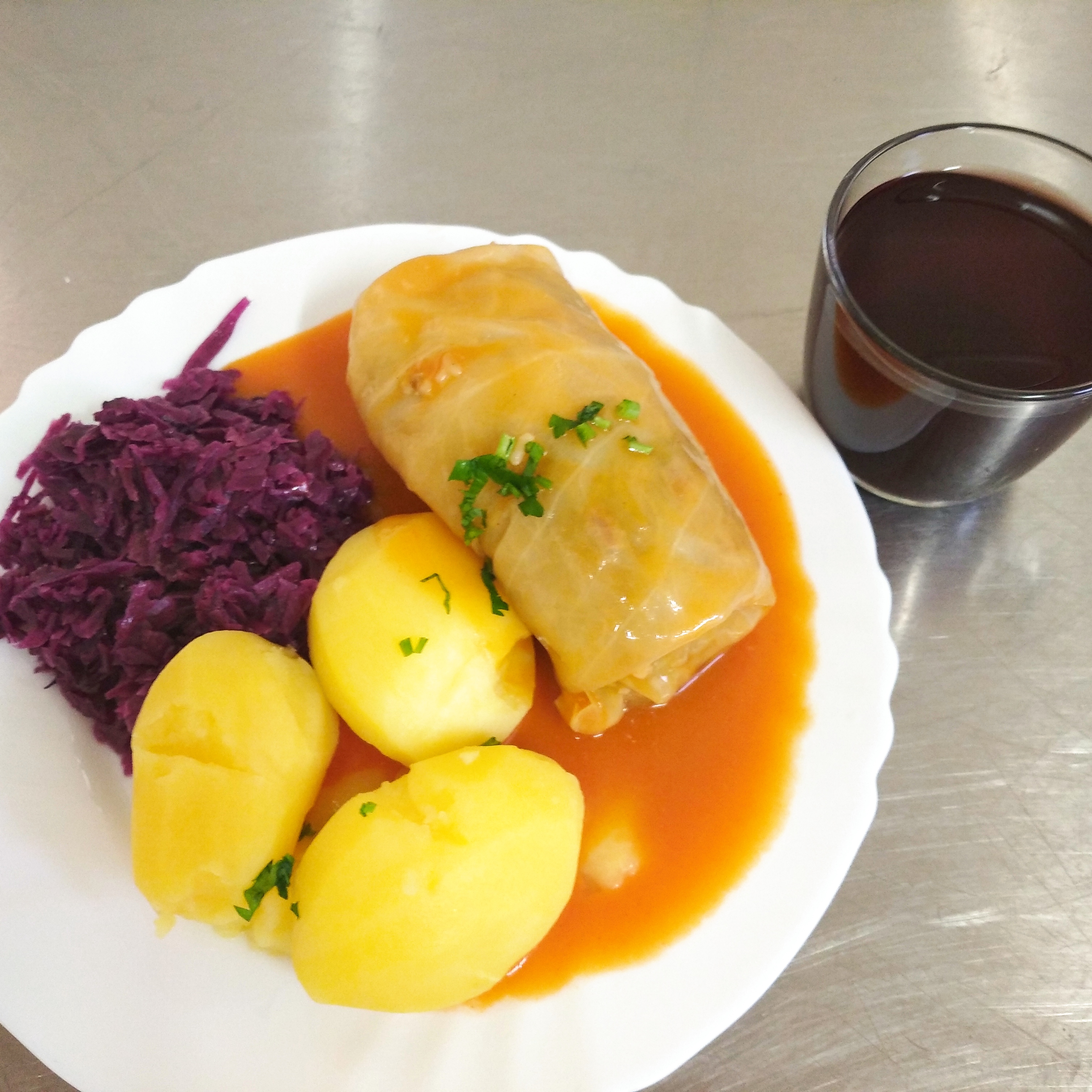 | obiad | zupa kalafiorowa 400ml, gołąbek w sosie pomidorowym 300g, ziemniaki200g, sałatka z kapusty czerwonej 100g, kompot 200ml | zupa kalafiorowa 400ml. indyk w potrawce150g z ziemniakami 200g, buraki 120g, kompot 200ml | zupa kalafiorowa 350 ml, gołąbek w sosie pomidorowym 300g, sałatka z kapusty czerwonej 120g, woda 200ml | ||||||