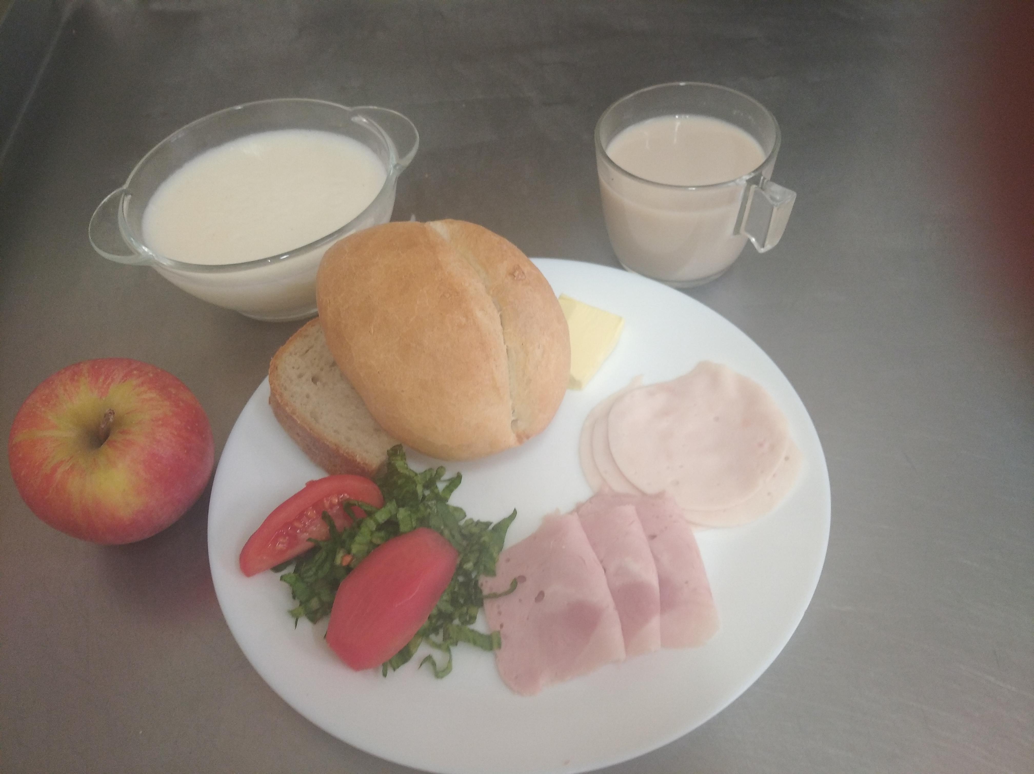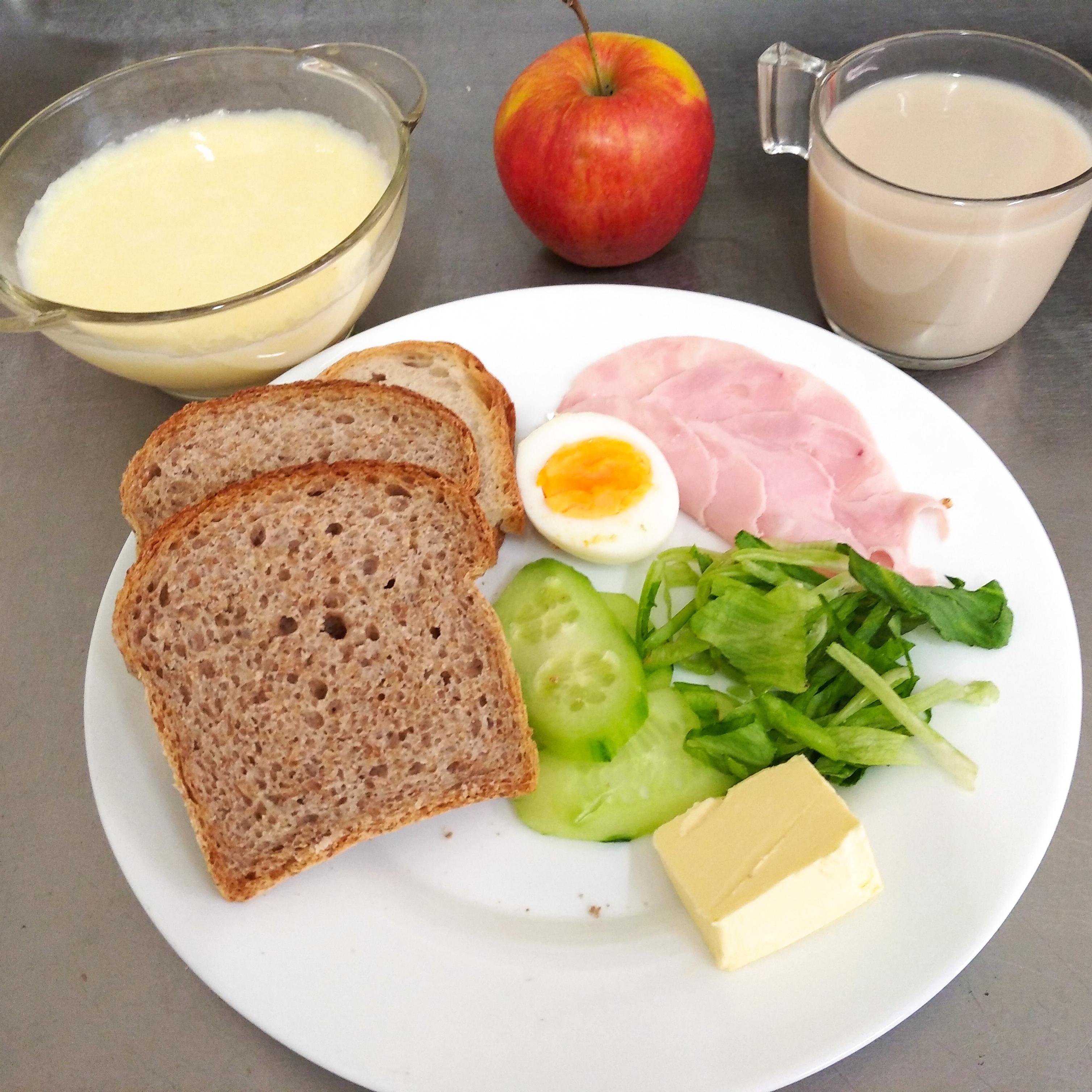| 17.05. | śniadanie | zupa mleczna z makaronem 300ml(MLE,GLU), chleb/graham 150g(GLU), masło 20g(MLE), kawa biała 200ml(GLU,MLE), ser biały 50g(MLE), miód 25g dżem 25g, | zupa mleczna z makaronem 300ml(GLU,MLE),chleb/bułka 150g(GLU), masło 20g(MLE), kawa biała 200ml(MLE,GLU), szynkowa z indyka 30g(GLU,SOJ,GOR), blok szynkowy 30g(GLU,SOJ,GOR), sałata, pomidor bez skórki | zupa mleczna z makaronem 300ml(MLE,GLU),chleb/bułka 150g(GLU), masło 20g(MLE), kawa biała 200ml(MLE,GLU), sałata, pomidor bez skórki 30g, jajecznica na parze z pietruszką zieloną 50g(JAJ,MLE,GLU), | chleb graham 100g(GLU), masło 10g(MLE), herbata b/c 200ml, ser żółty 30g(MLE), polędwica drobiowa 30g(MLE,GLU,SOJ) sałata, ogórek kiszony 20g jabłko | |||