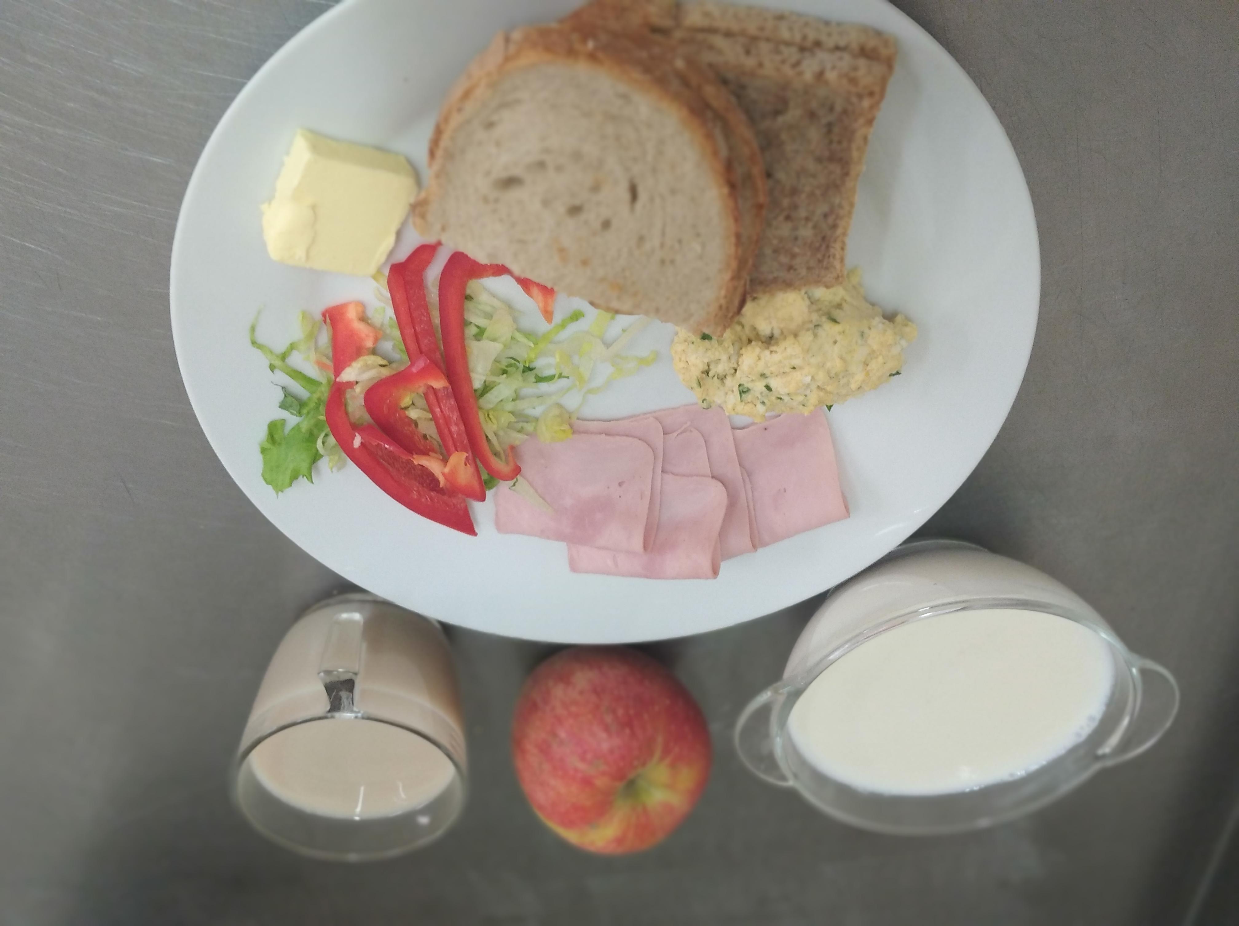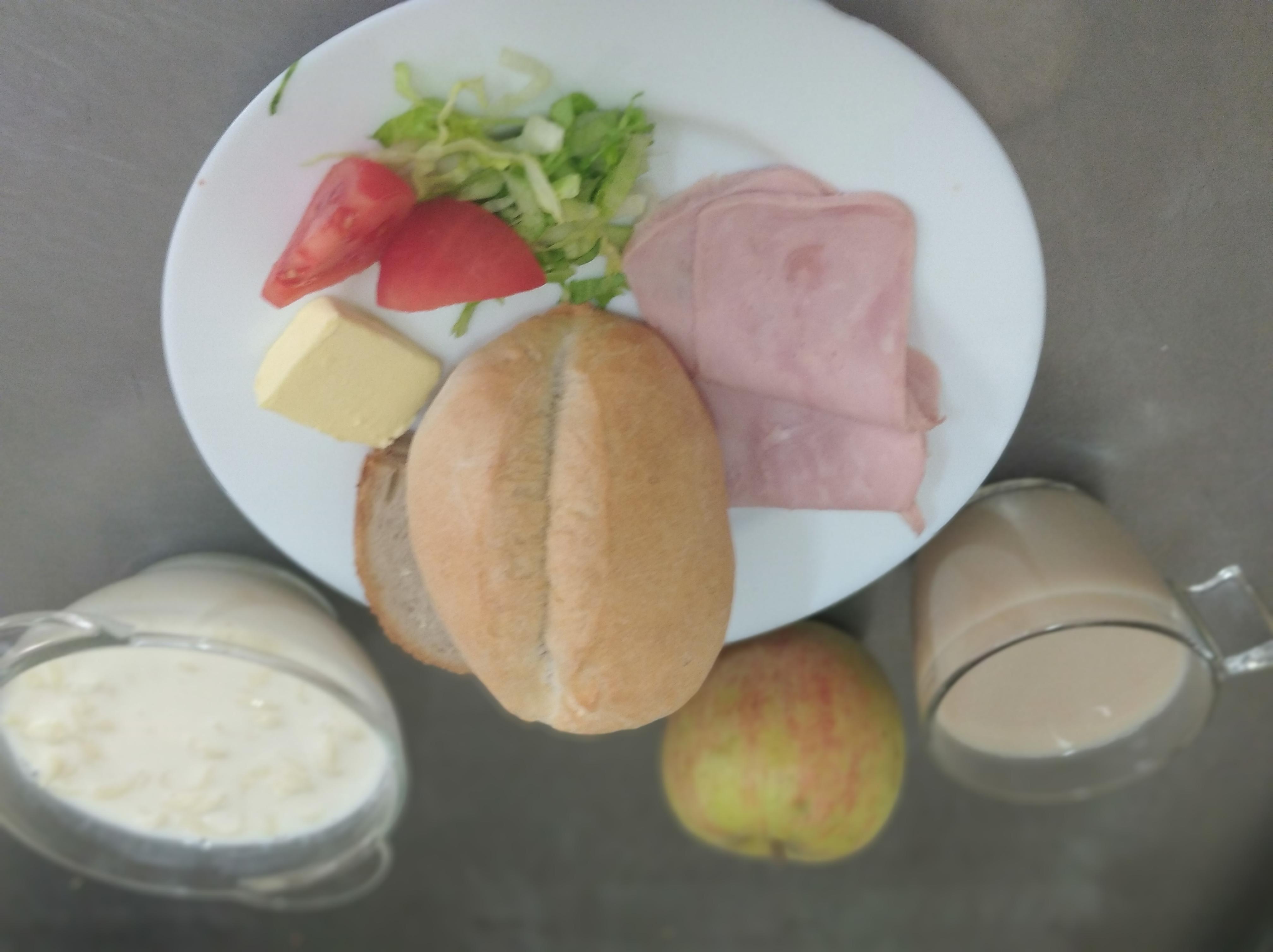 | 16.05. | śniadanie | zupa mleczna z płatkami owsianymi 300ml(MLE,GLU), chleb graham 150g(GLU) masło 20g(MLE), kawa biała 200ml(MLE,GLU), blok szynkowy 30g(GLU,SOJ,GOR) pasta jajeczna 25g, sałata, papryka 30g, | zupa mleczna z płatkami owsianymi 300ml(GLU,MLE), chleb/ bułka150g(GLU), masło 20g(MLE), kawa biała 200ml, ser biały 50g(MLE), miód 25g dżem 25g | zupa mleczna z płatkami owsianymi 300ml(MLE,GLU), chleb/ bułka150g(GLU), masło 20g(MLE), kawa biała 200ml(GLU,MLE), ser biały 60g(MLE), sałata | chleb graham 100g(GLU), masło 10g(MLE), kawa biała b/c 200ml(GLU,MLE), ser biały z pietruszką zieloną 30g(MLE), szynkowa z indyka 30g(GLU,SOJ,GOR), sałata, papryka 30g, jabłko | |||