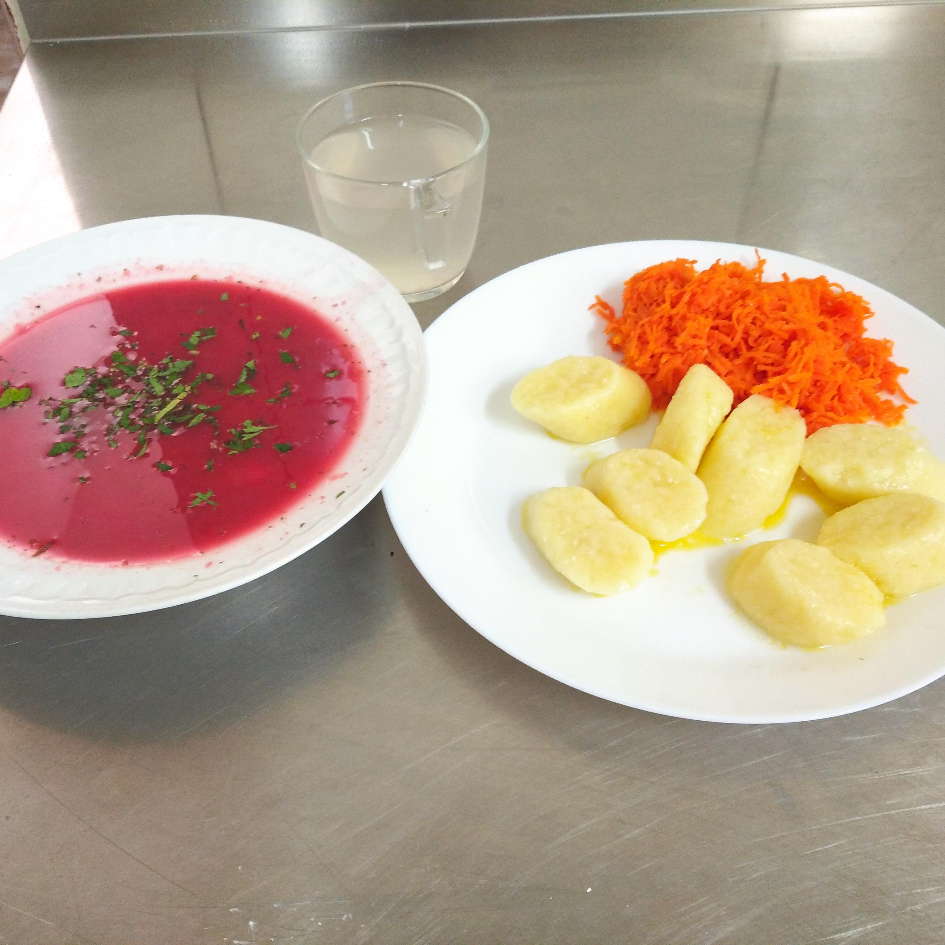 | obiad | zupa botwinka 400ml(SEL,GLU,MLE), pierogi leniwe z masłem 300g(JAJ,GLU,MLE) surówka z marchewki 120g, kompot 200ml | zupa botwinka 400ml(SEL,GLU,MLE), pierogi leniwe 300g(GLU,MLE,JAJ) , kompot 200ml | zupa botwinka 400ml(GLU,SEL,MLE), pierogi leniwe 300g(GLU,MLE,JAJ), kompot 200ml | zupa botwinka 350ml(GLU,SEL,MLE), indyk w potrawce 150g, gotowane ziemniaki 200g, gotowane buraki 80g, surówka z kiszonej 100g, woda 200ml | ||||