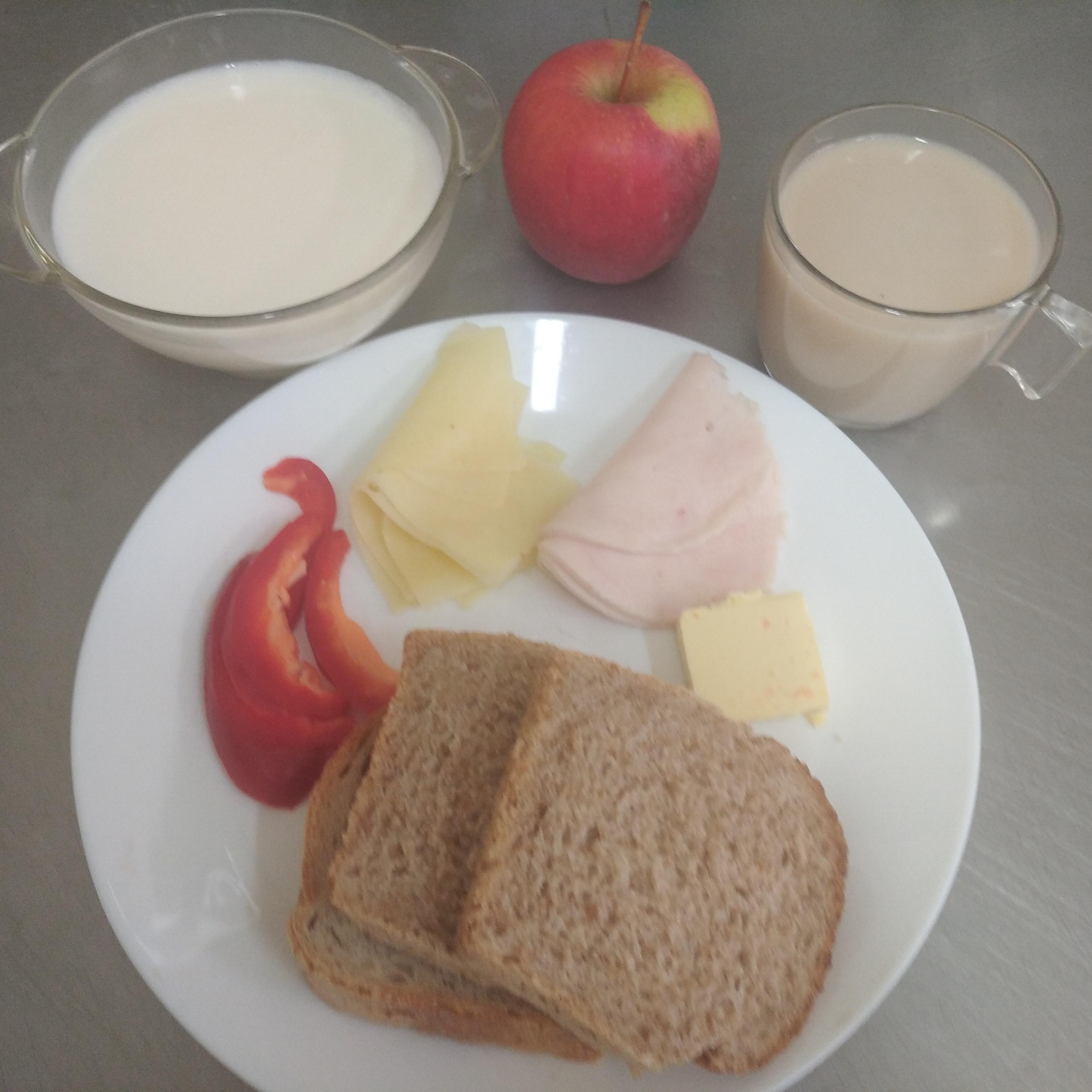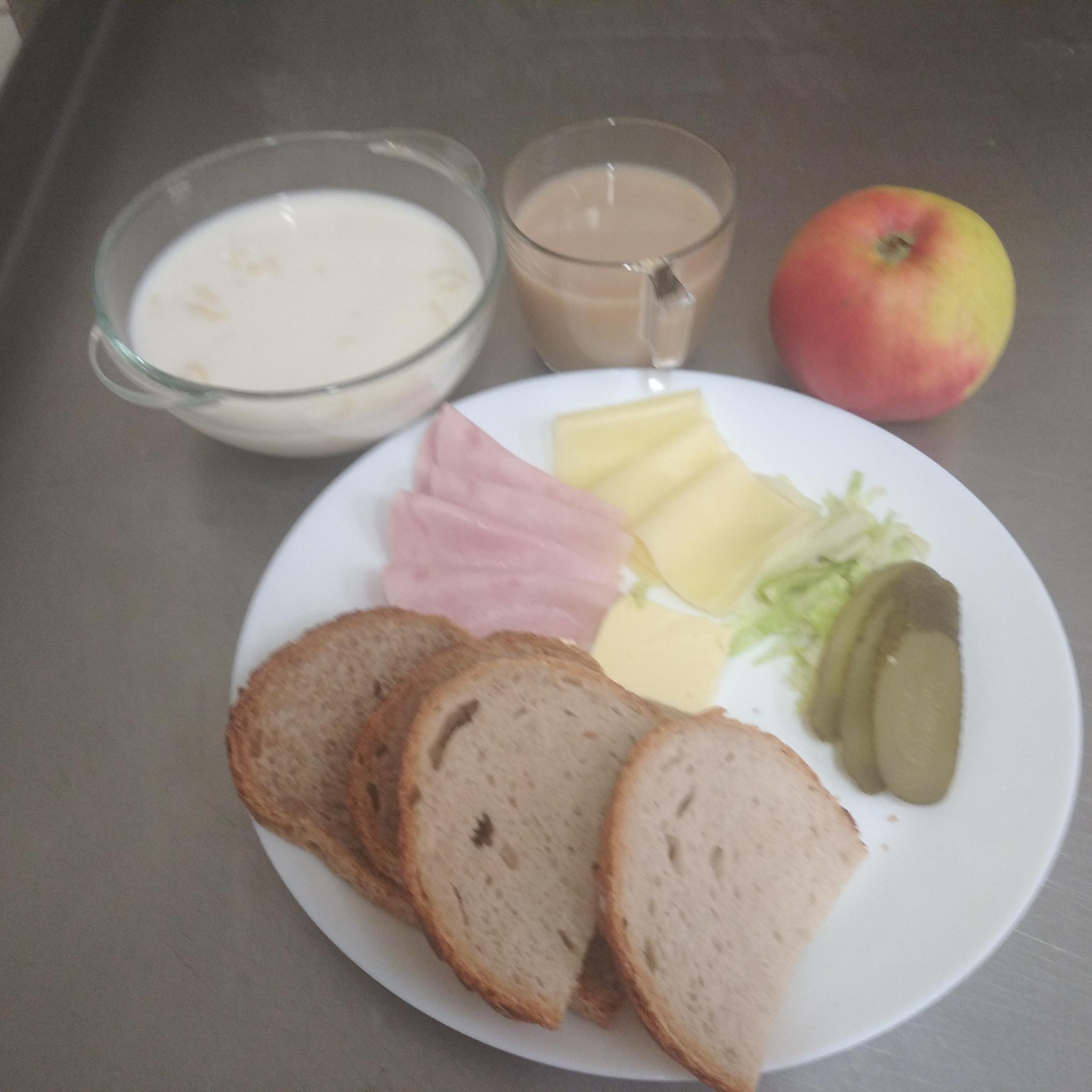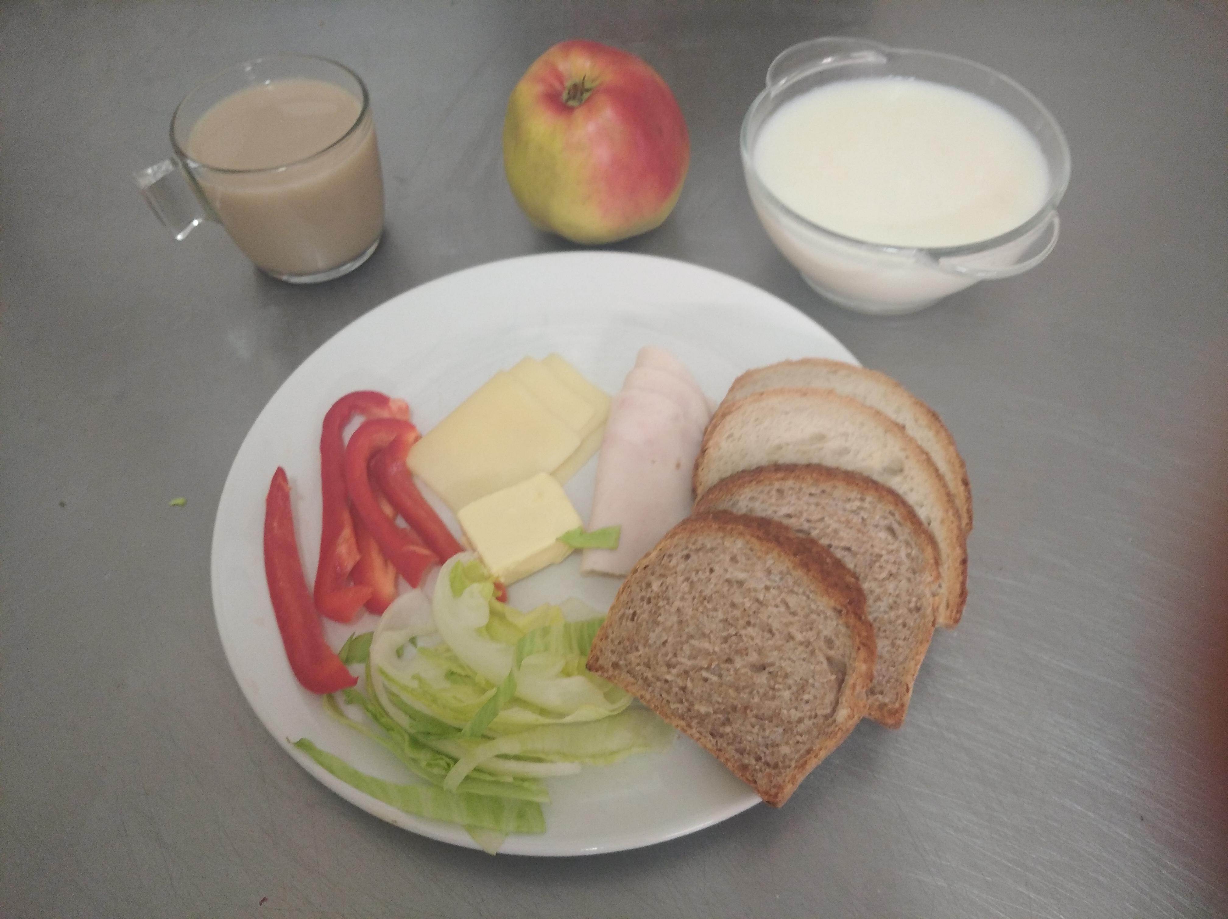 | kolacja | chleb 100g(GLU), masło 20g(MLE), polędwica drobiowa 30g(GLU,SOJ,GOR), ser żółty 30g(MLE), ogórek zielony 30g, sałata, herbata 200 ml | chleb 100g(GLU), masło 20g(MLE), szynkowa z indyka 30g(GLU,SOJ,GOR), blok szynkowy 30g(GLU,SOJ,GOR), pomidor bez skórki 30g, sałata, herbata 200 ml | chleb 100g(GLU), masło 20g(MLE), pomidor bez skórki 30g, sałata, herbata 200 ml, pasta jajeczna z pietruszką 60g(JAJ,MLE) | chleb graham 100g(GLU), masło 10g(MLE), herbata b/c 200ml, polędwica drobiowa 30g(GLU,SOJ,GOR), ser żółty 30g(MLE), sałata, ogórek kiszony 20g | ||||